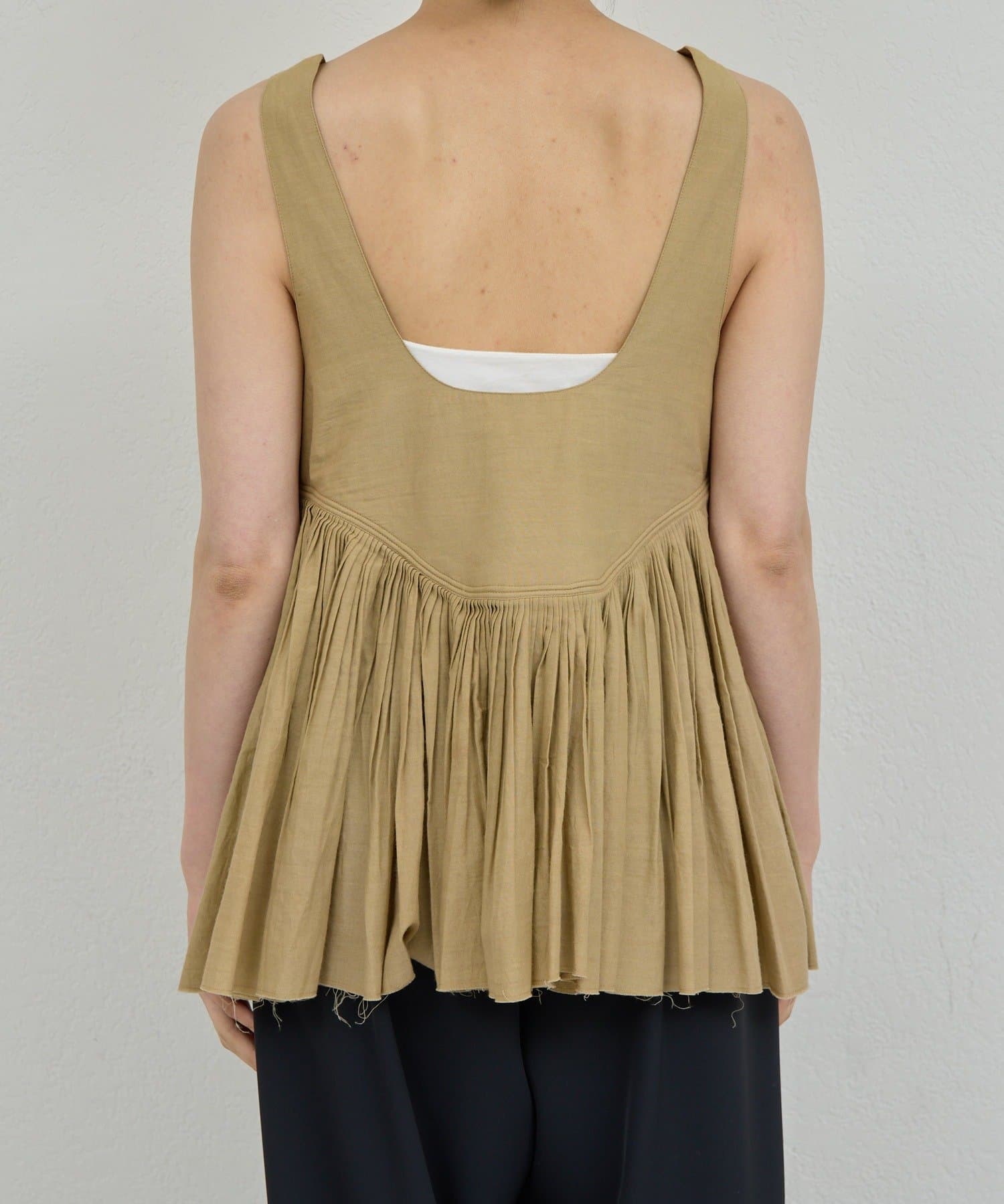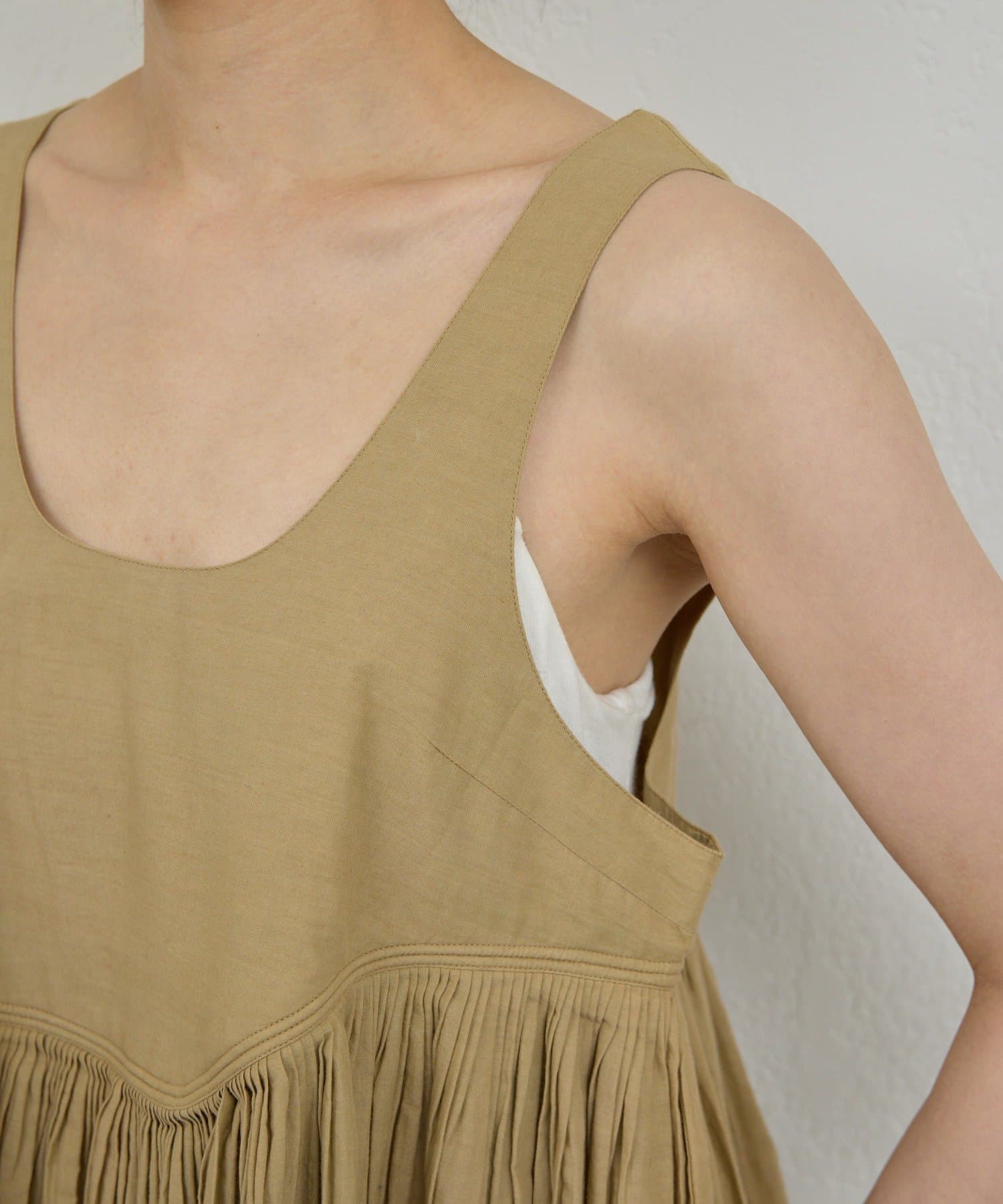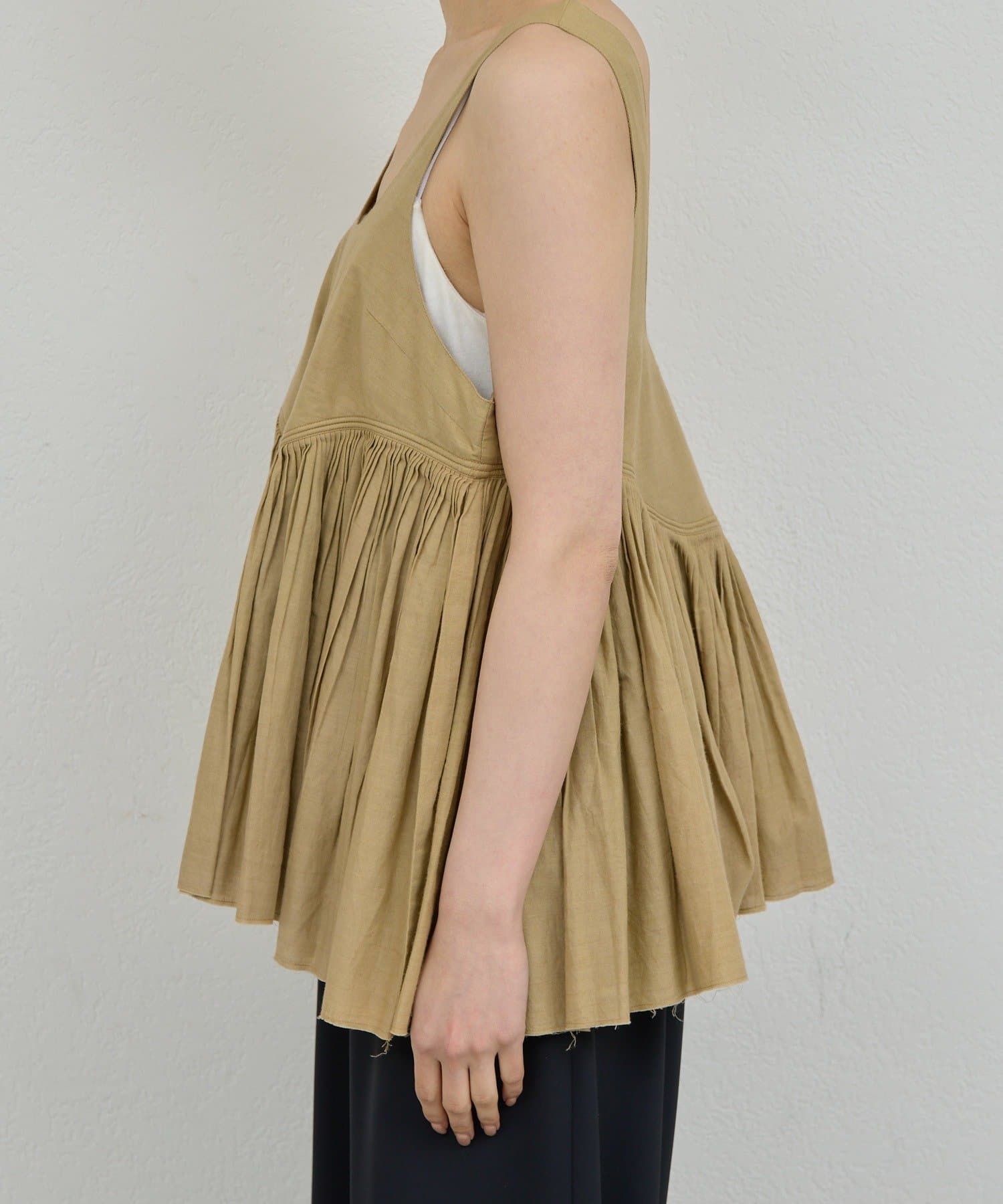 ●繊細なギャザーが印象的なノースリーブブラウス。