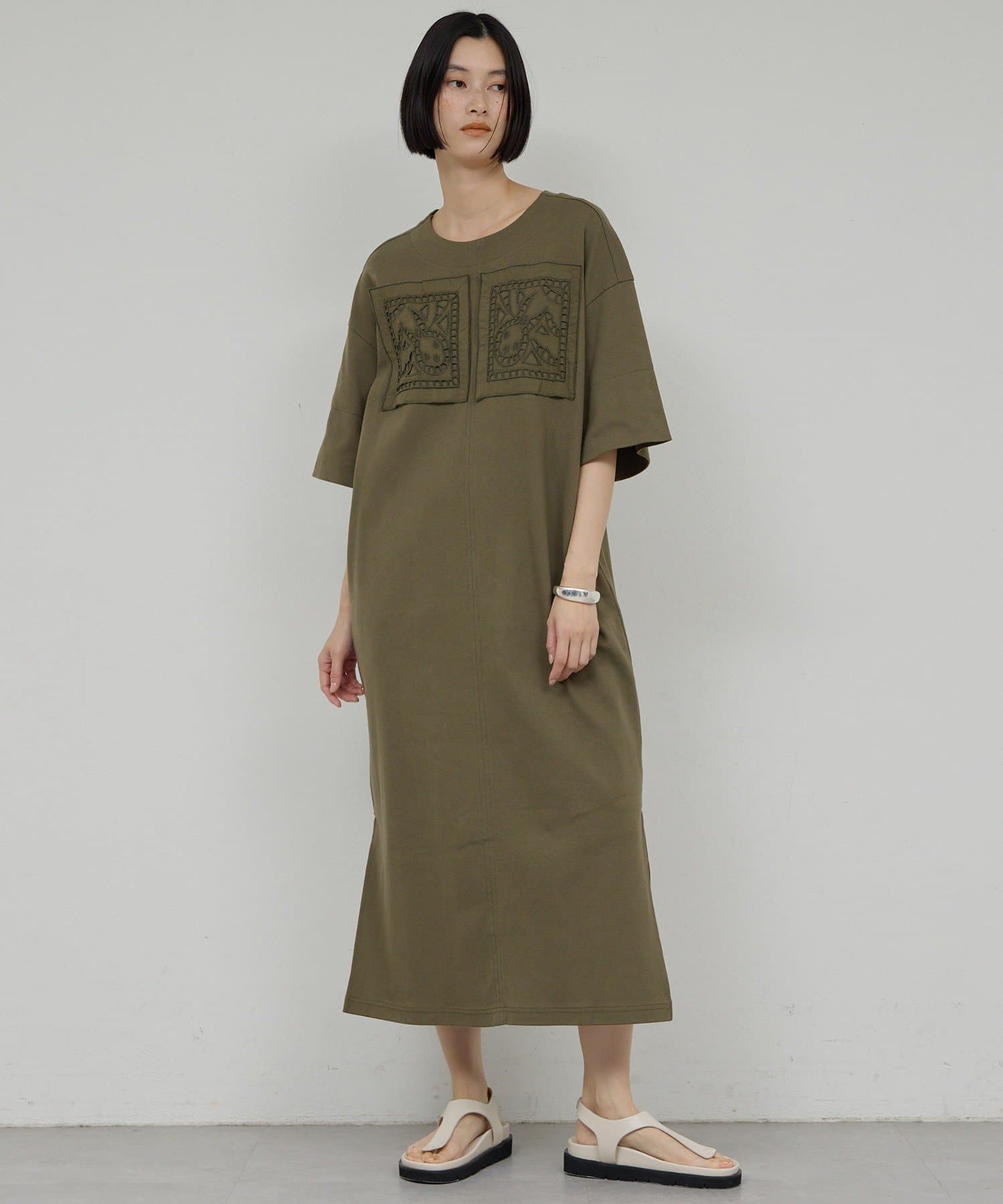 刺繍の存在感で魅せる、品よくリラクシーなカットワンピ