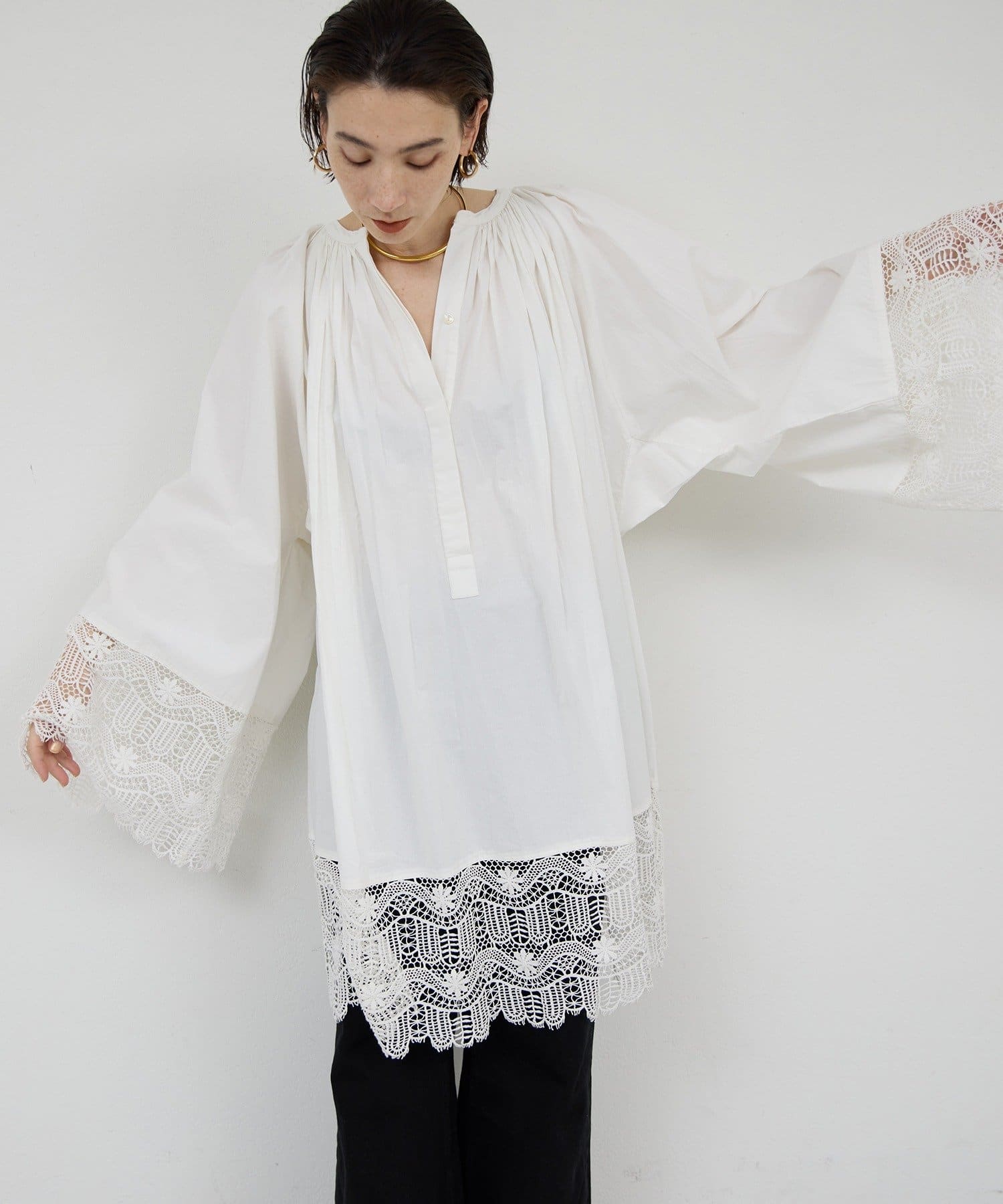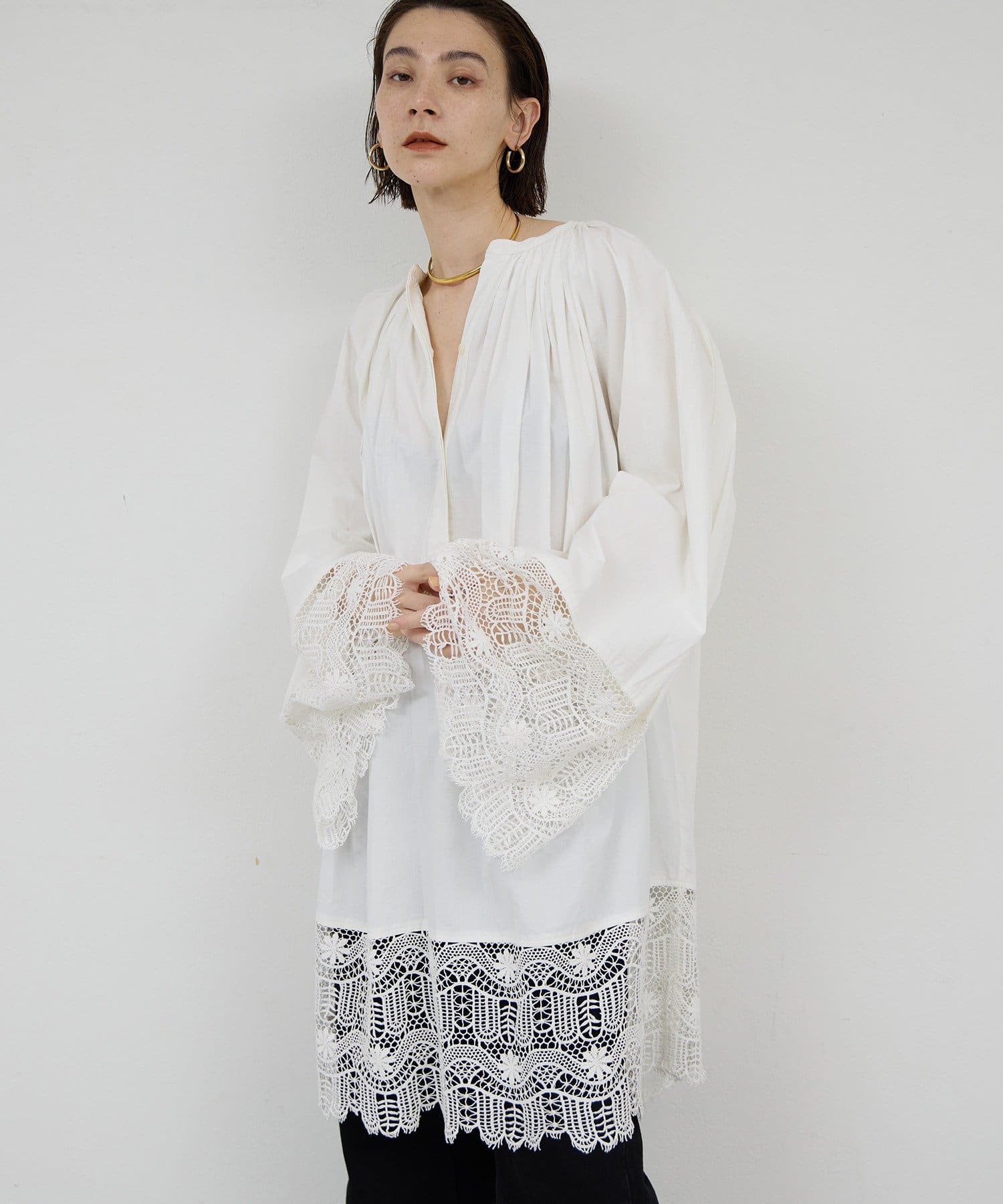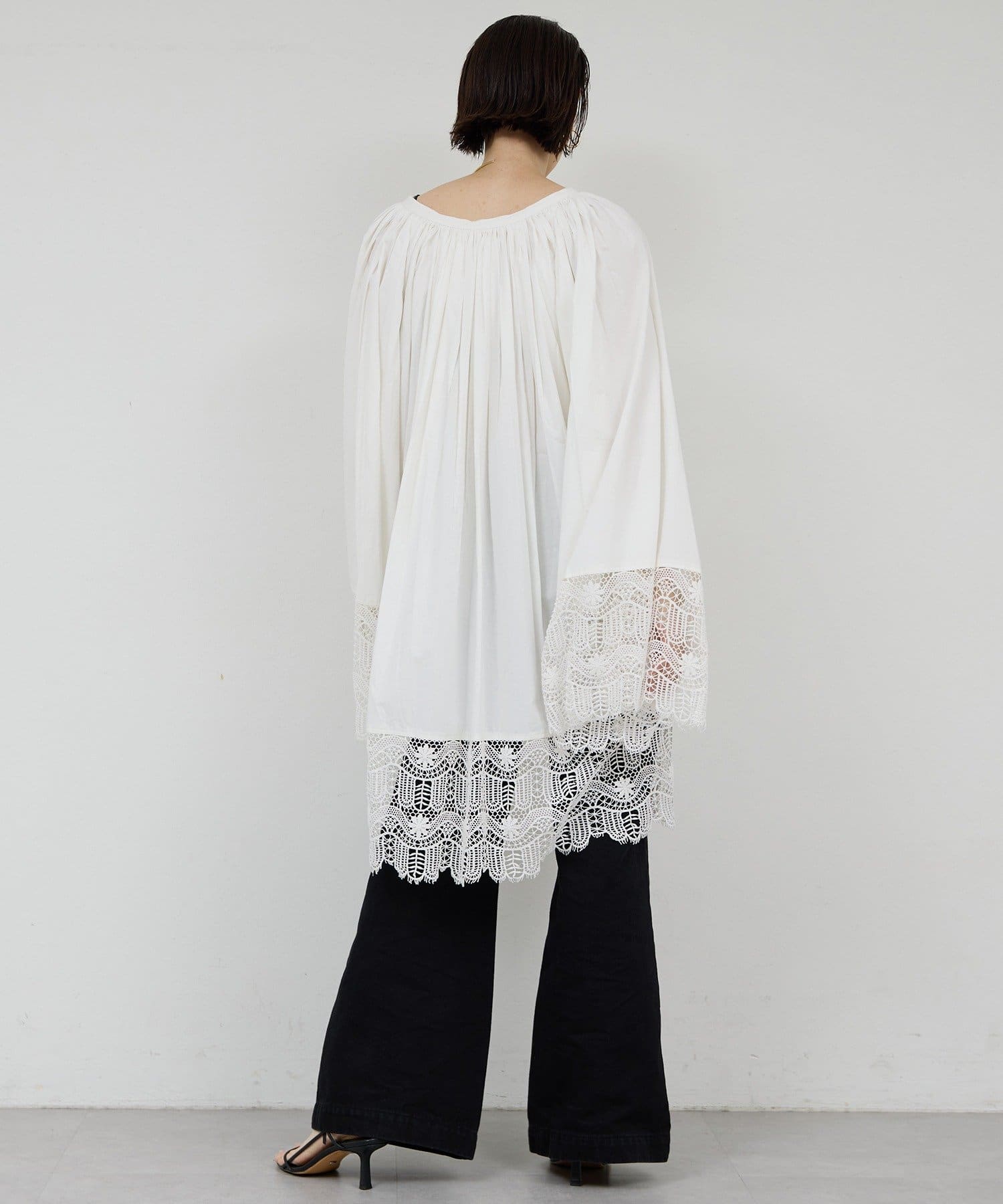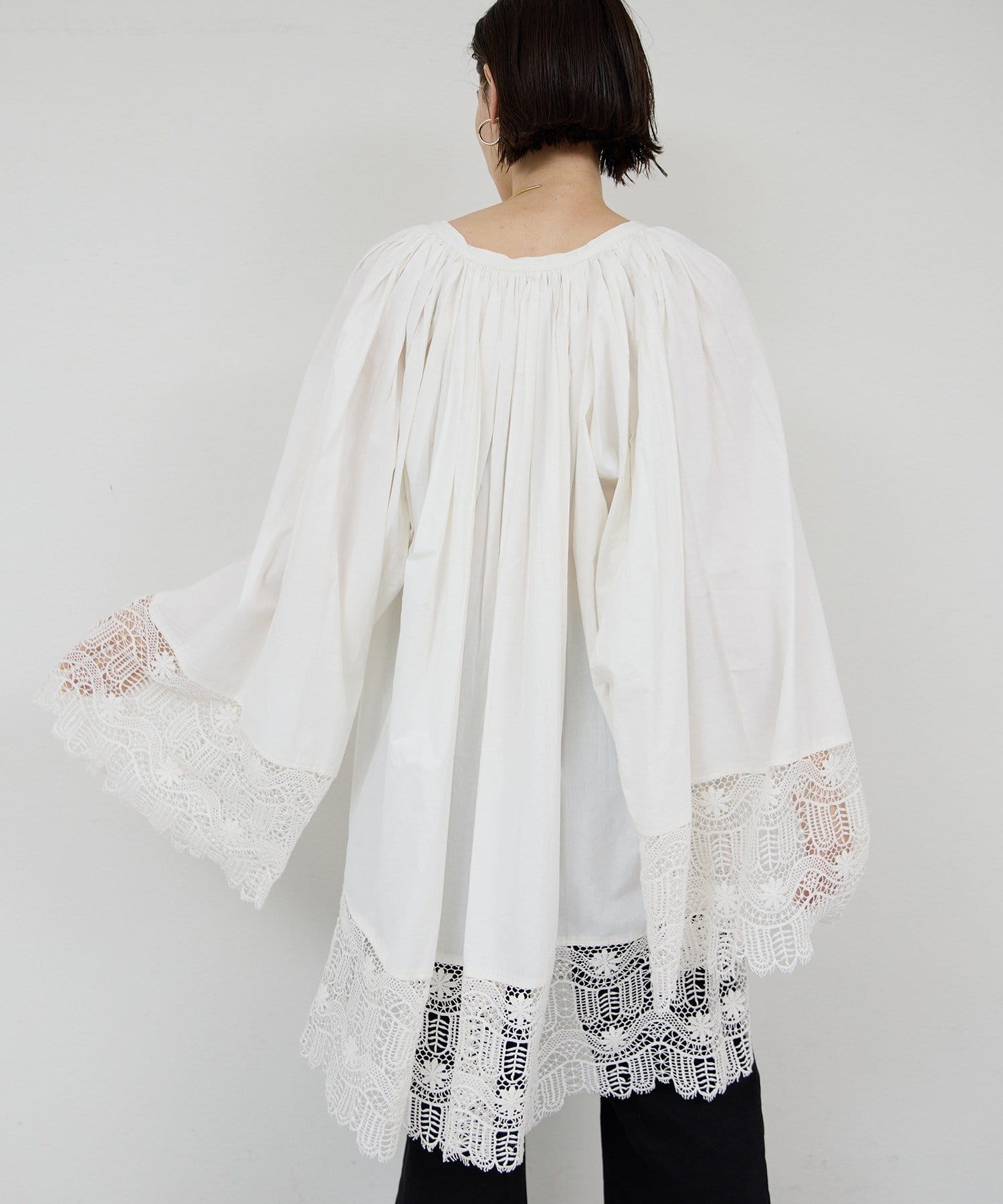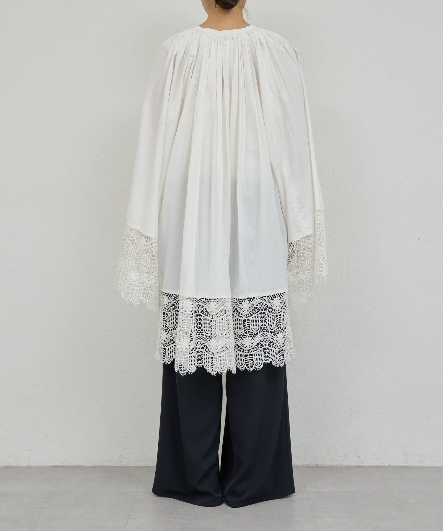 ●首回りの細かなギャザーが立体的なシルエットを演出。