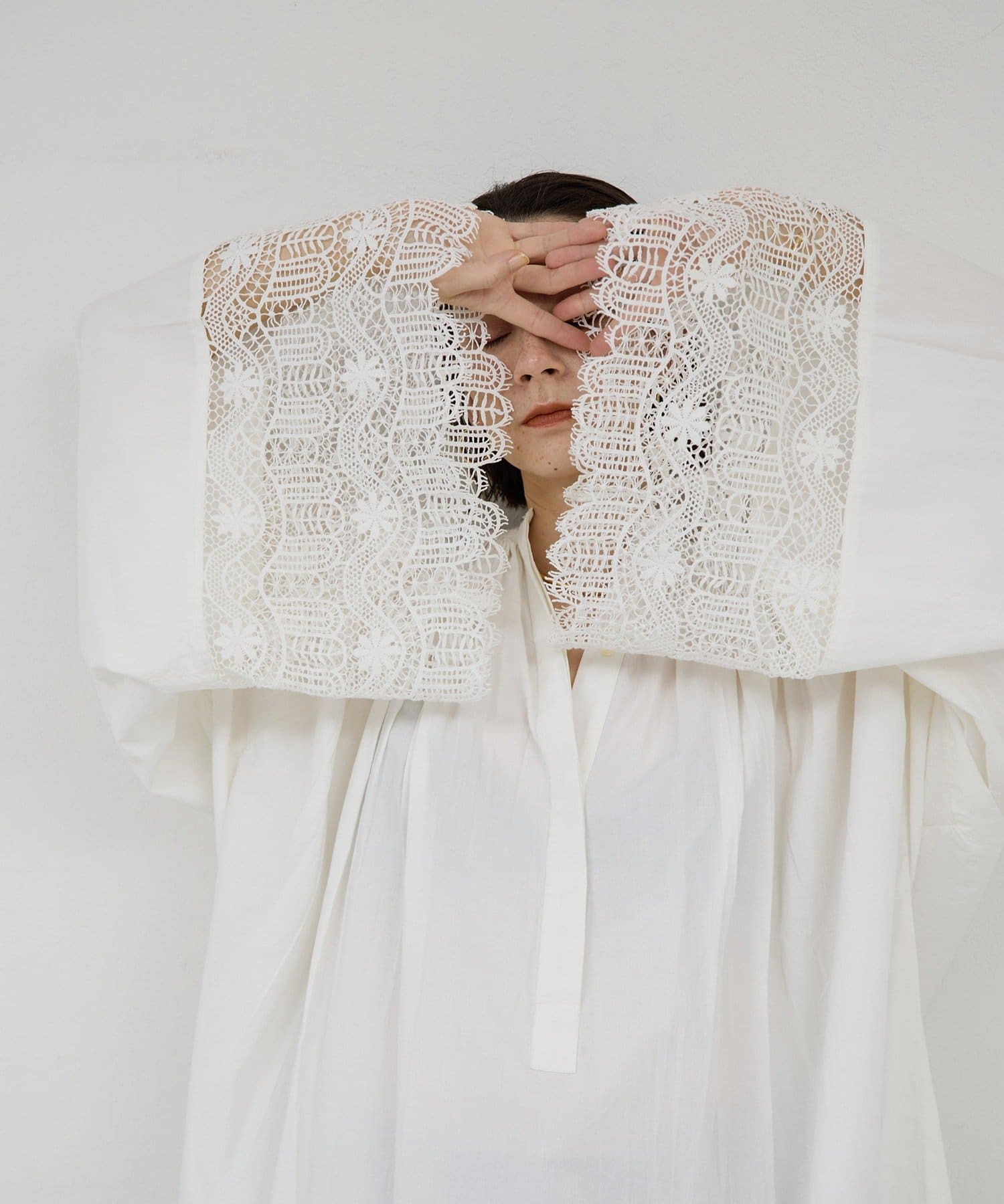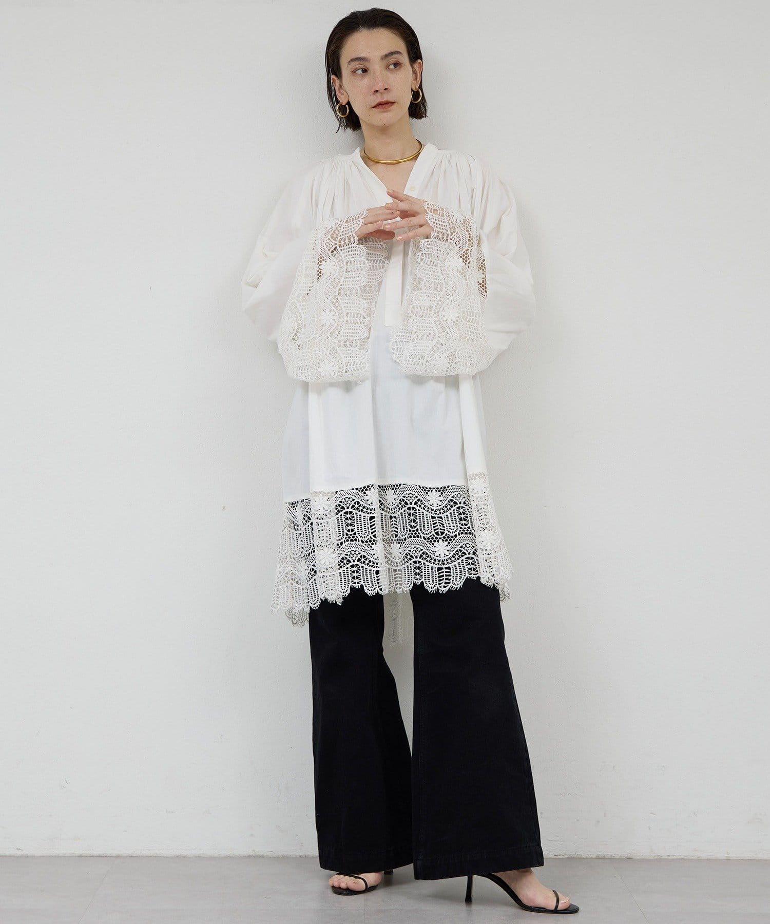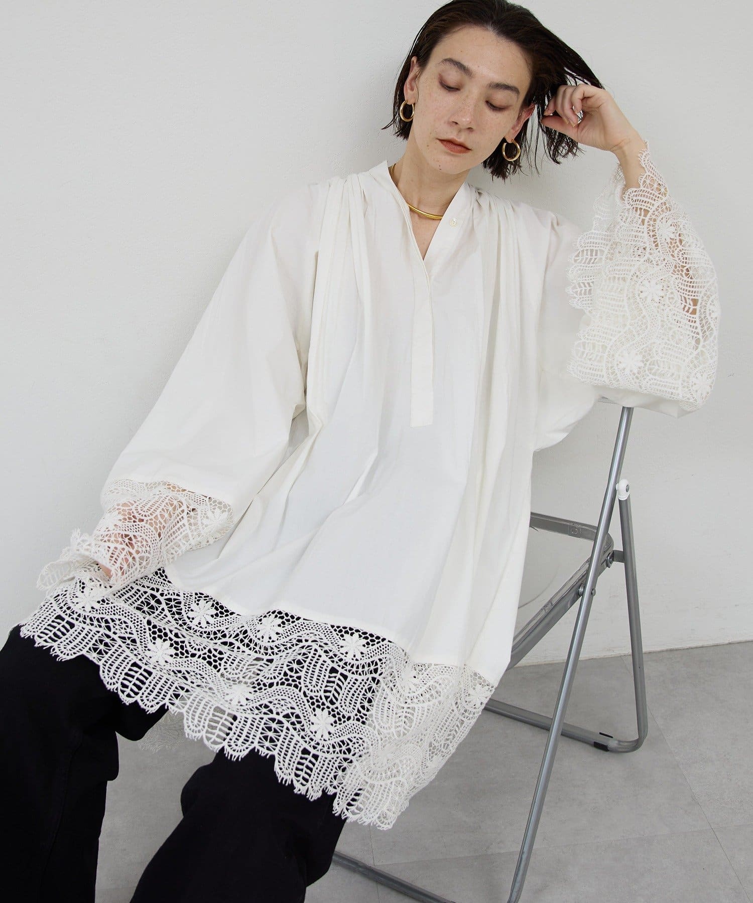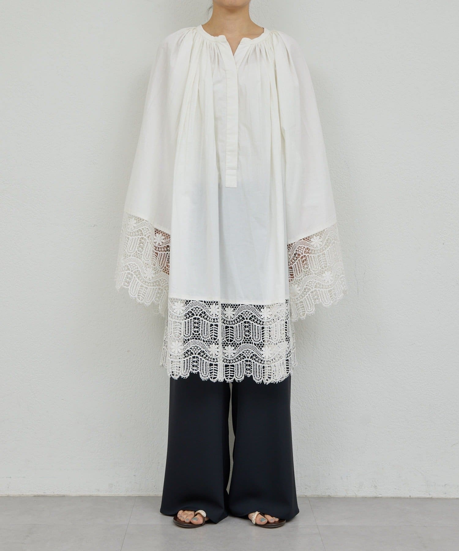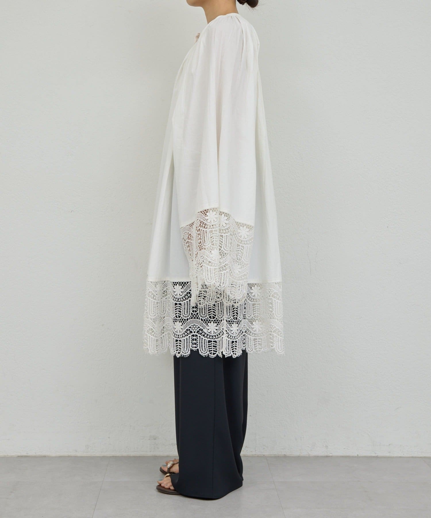 ●首回りの細かなギャザーが立体的なシルエットを演出。
