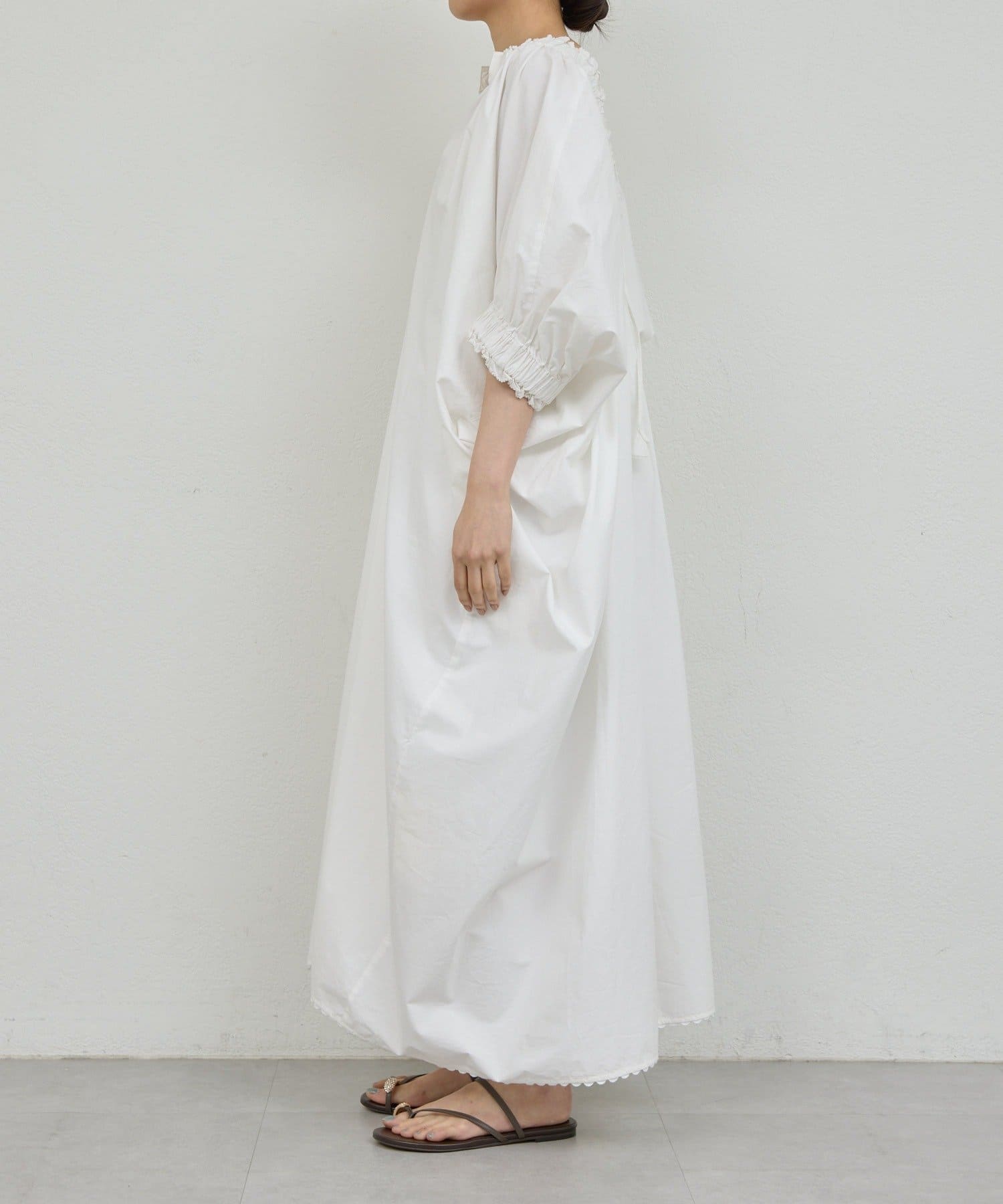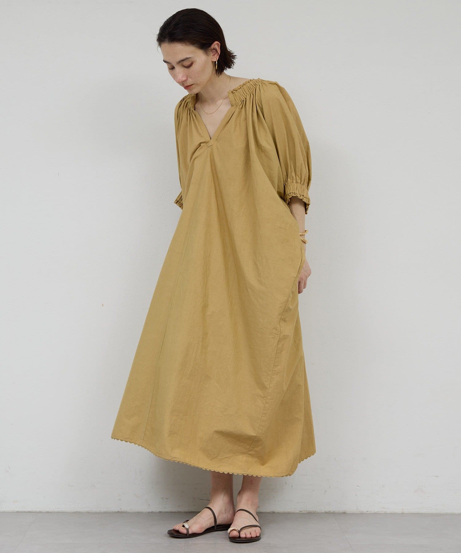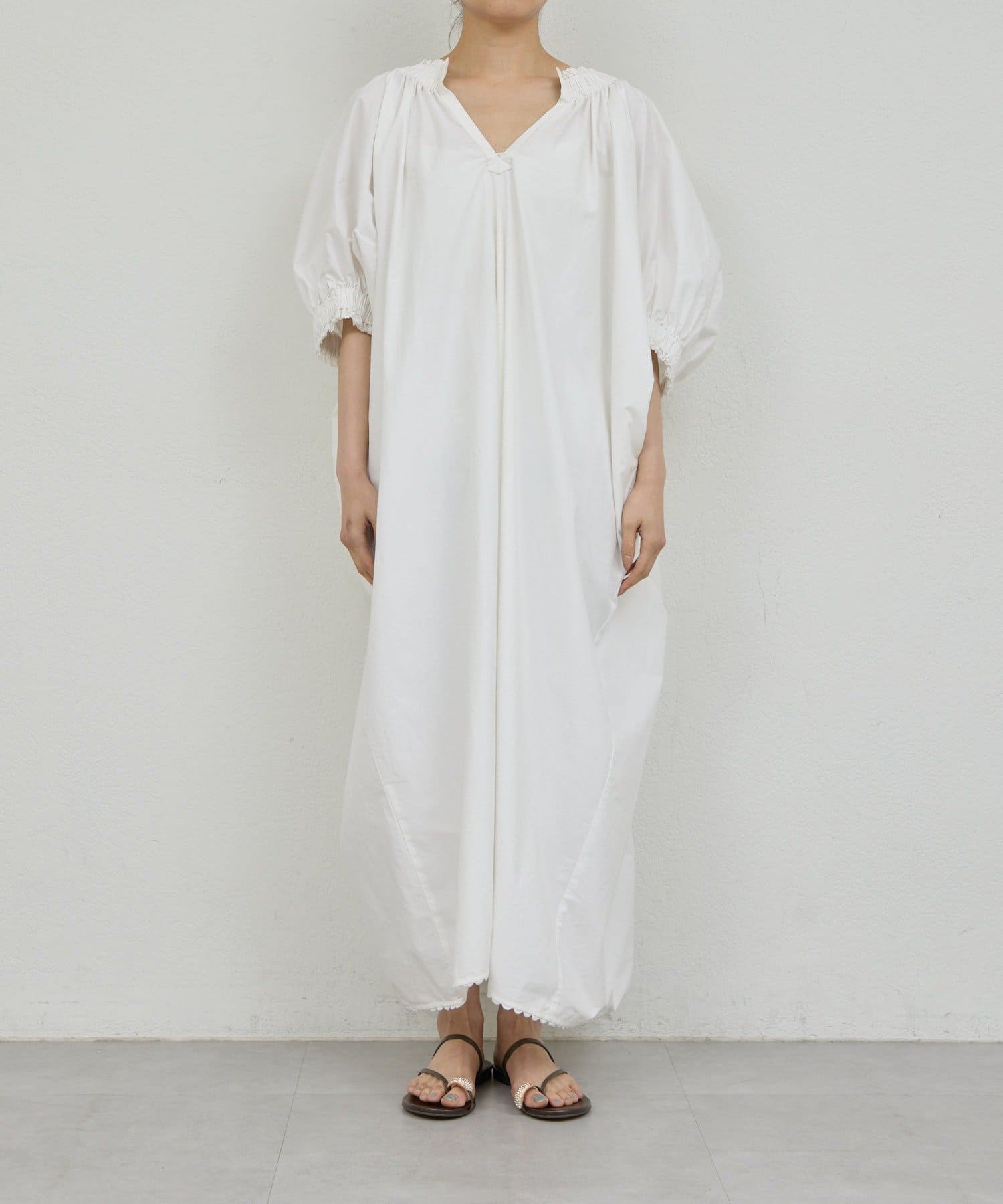 【Dhritië】スキッパーギャザーロングワンピース