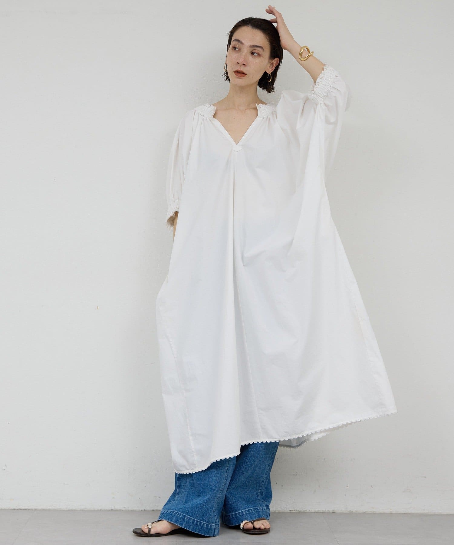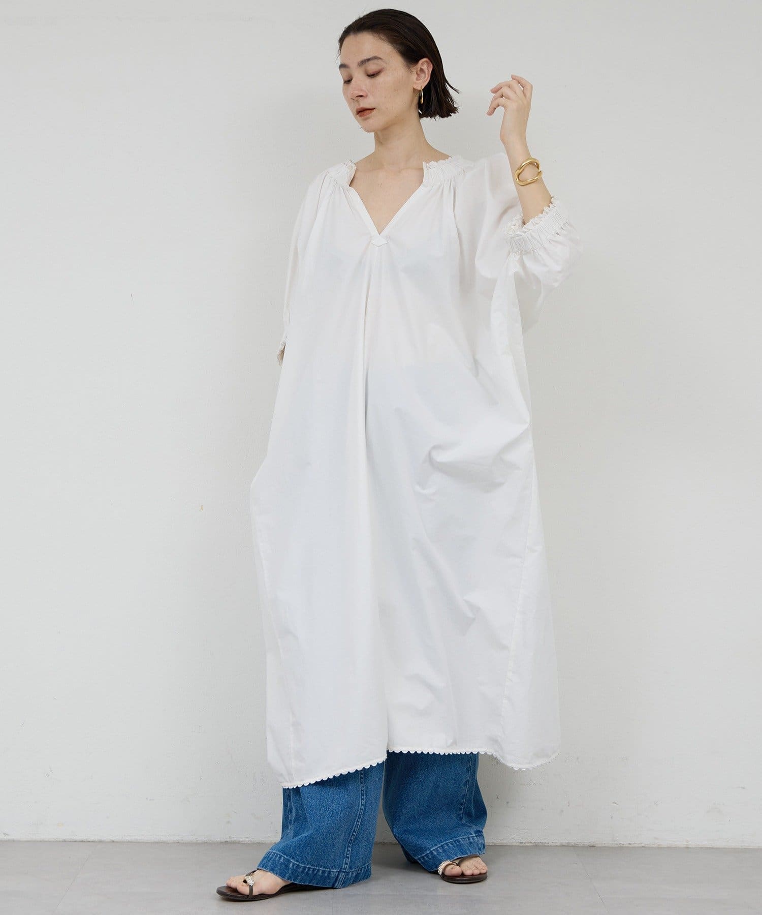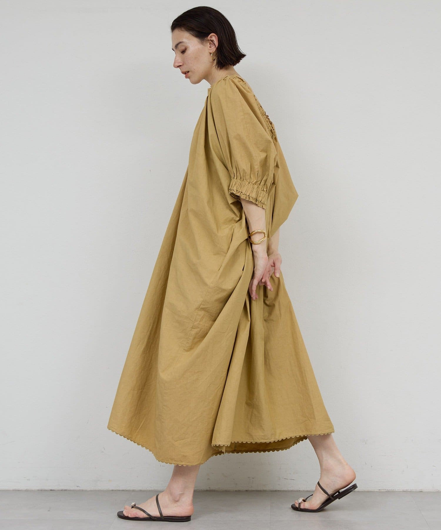 【Dhritië】スキッパーギャザーロングワンピース