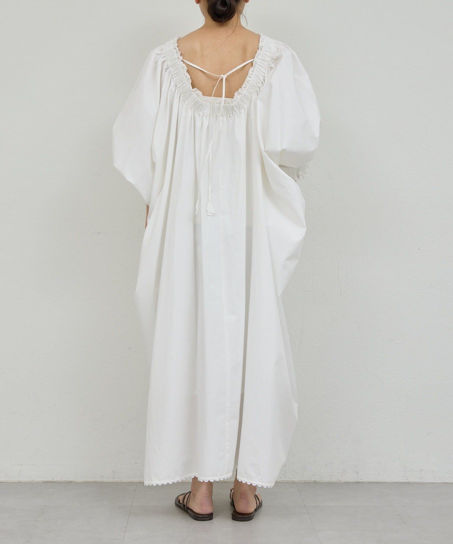 バックスタイルまで華やぐギャザーワンピース