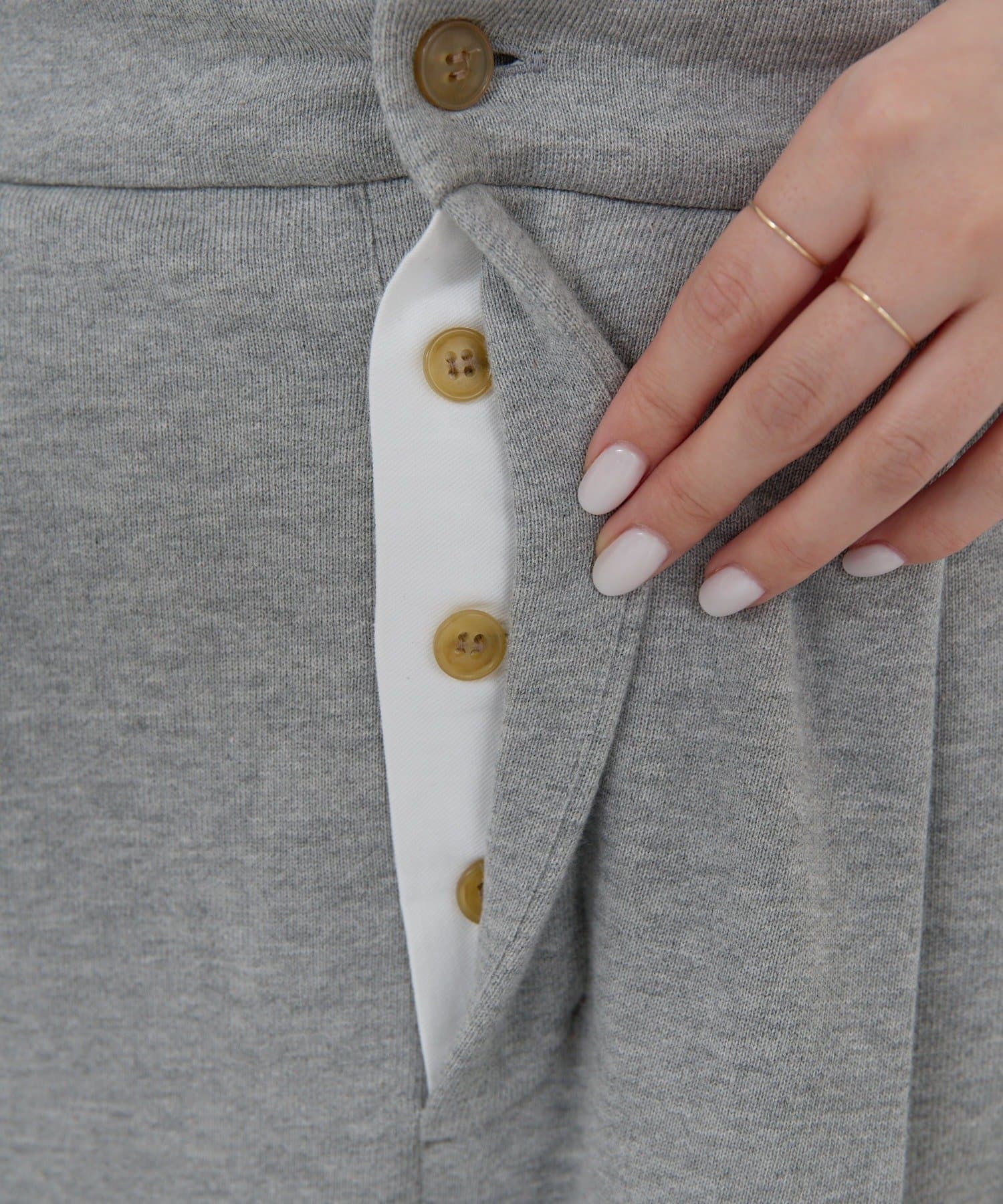 ●スラックスを彷彿とさせるシルエットにすることで大人が穿きやすいカジュアルパンツに。