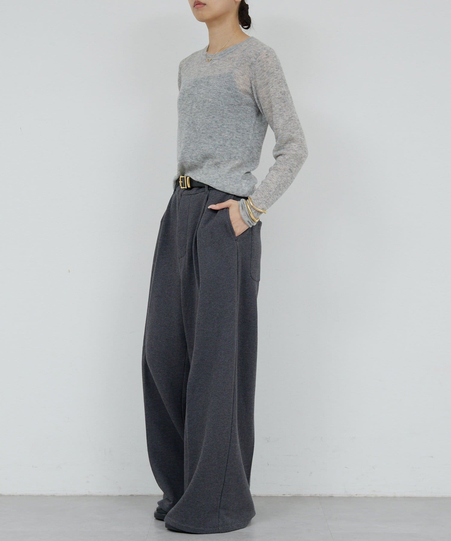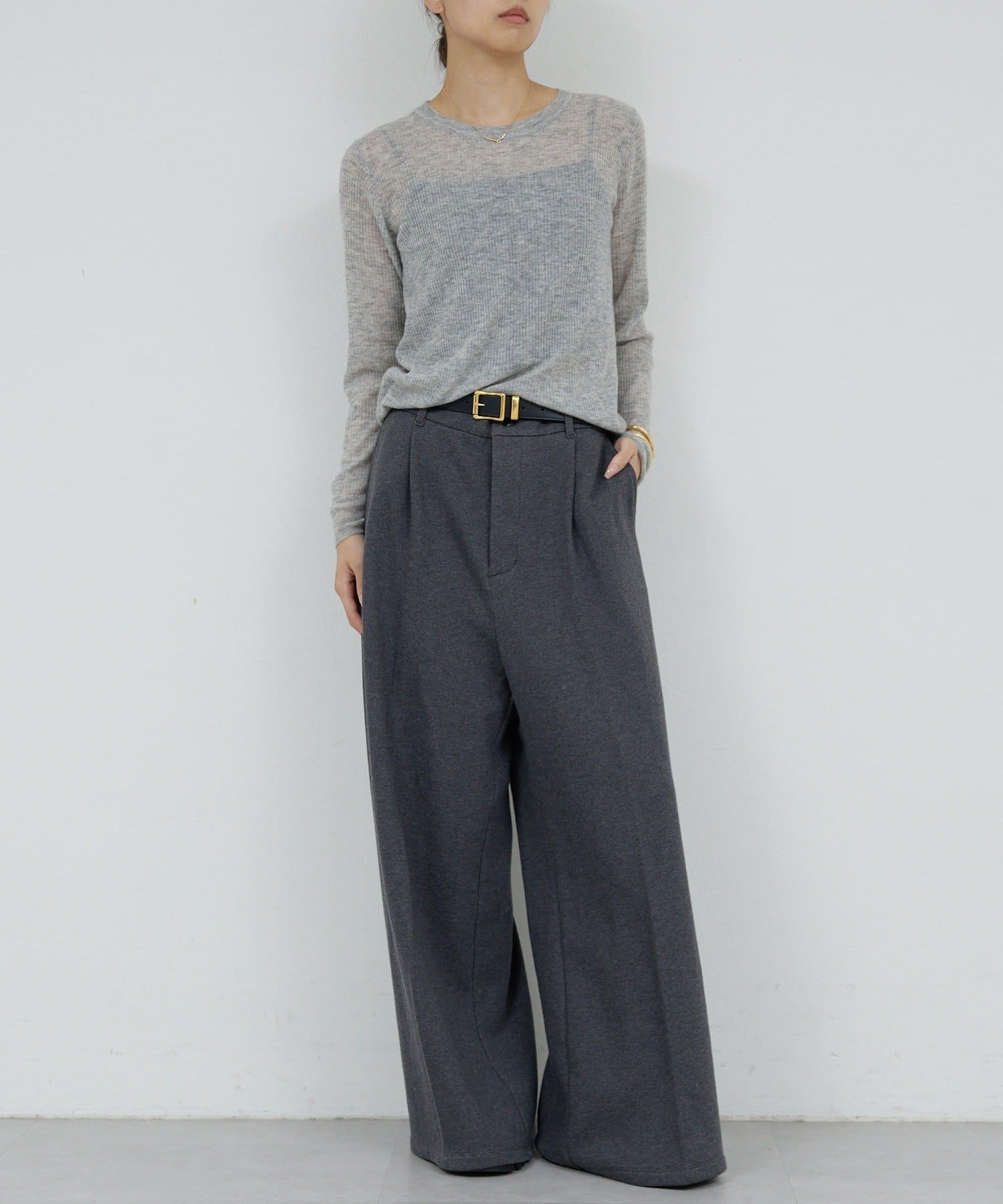 ●ニットとのリラックス感あるスタイリングはもちろん、ジャケットで引き締めたスタイルもおすすめ。