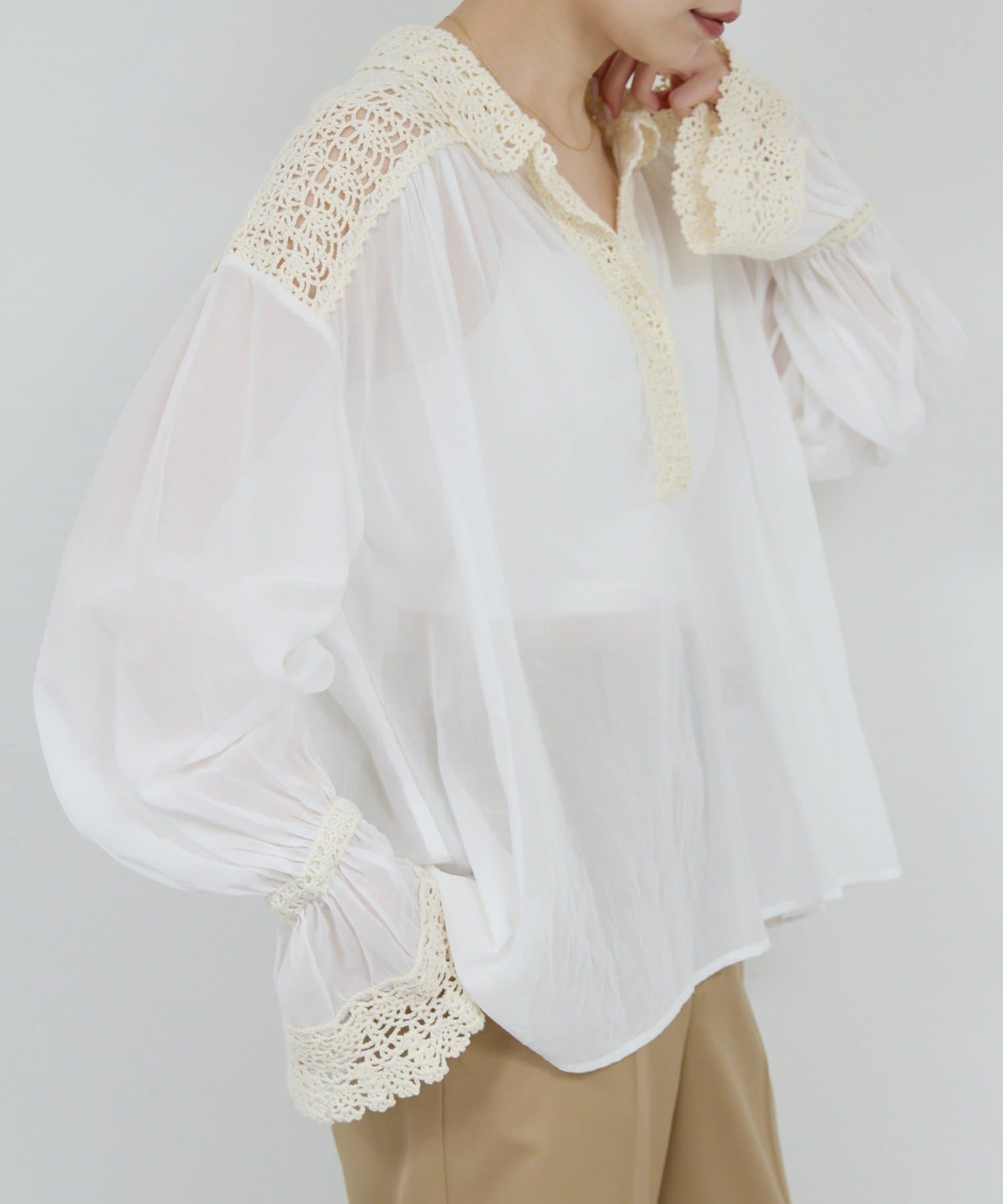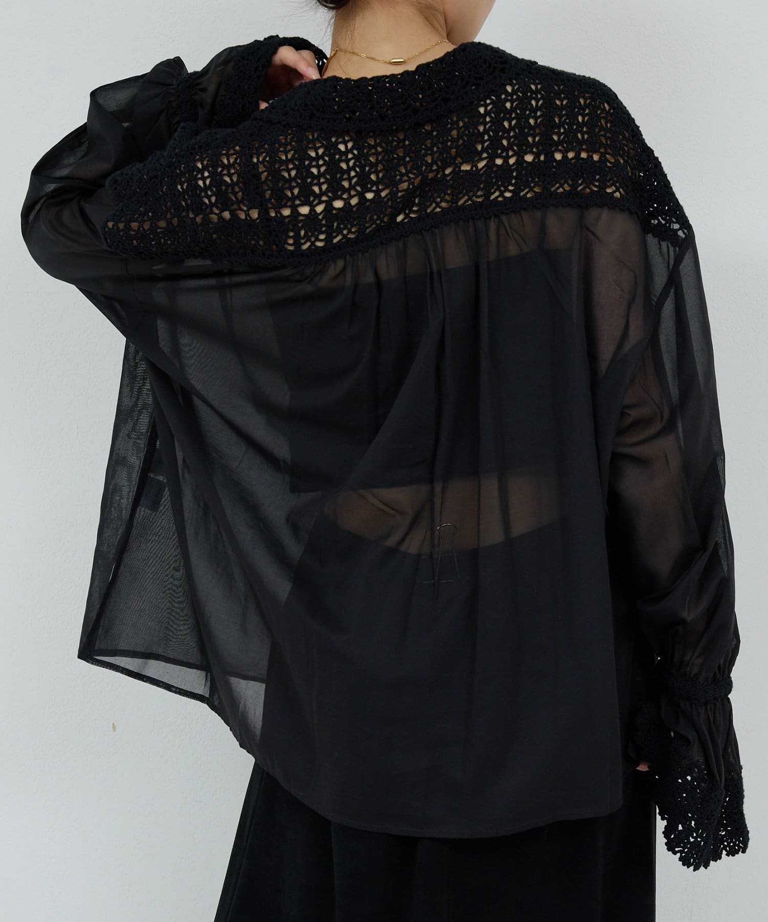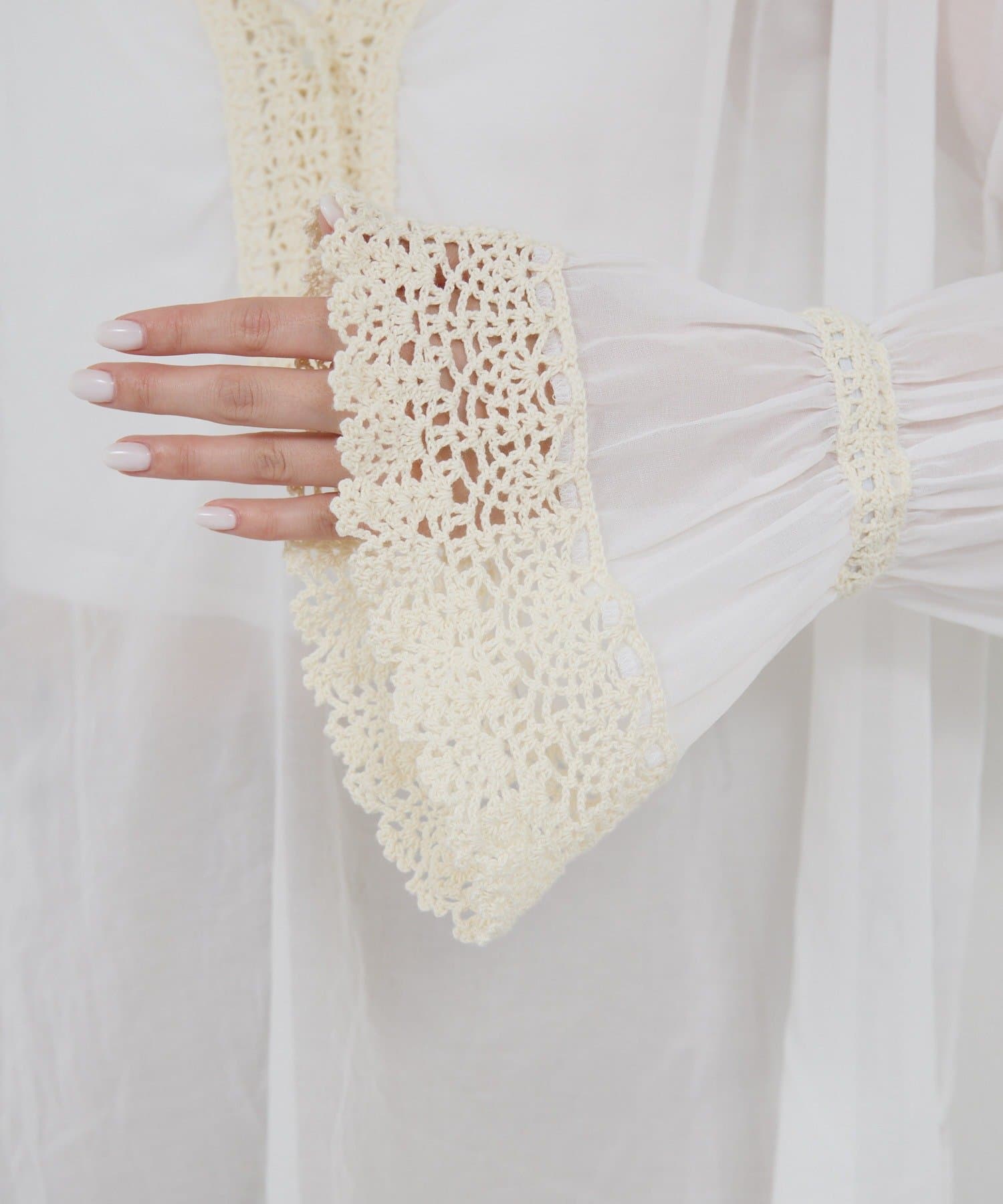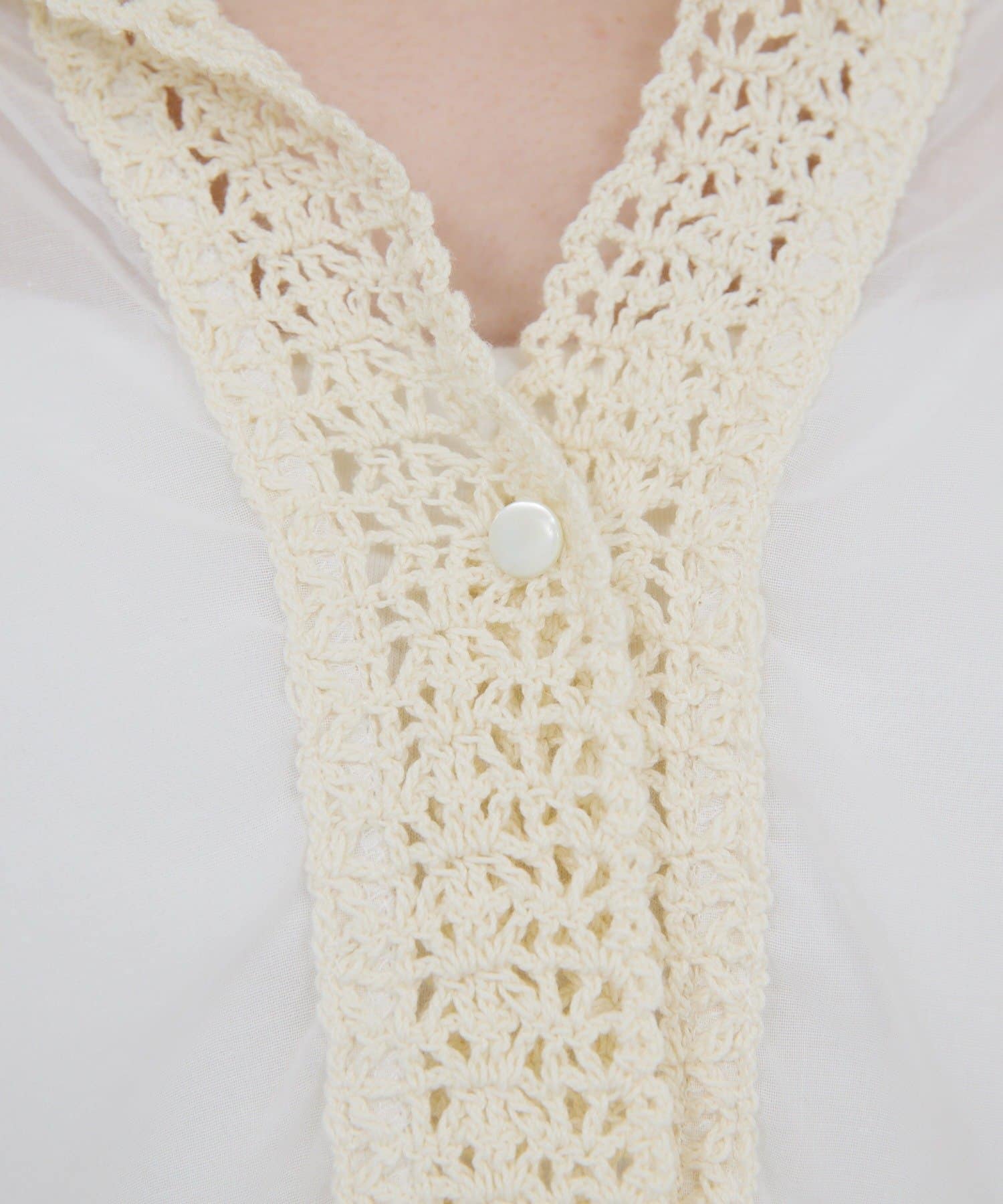 ●クロシェ×シアー素材が温かみと透明感を感じさせる1枚。