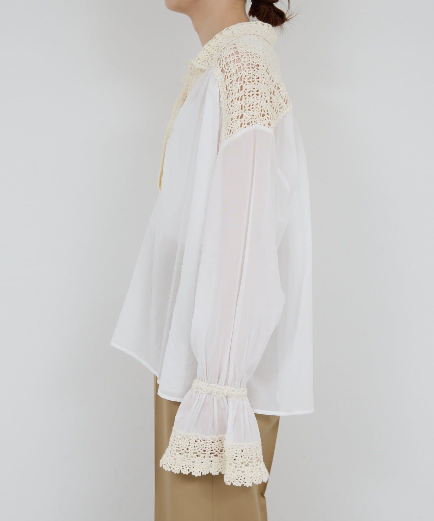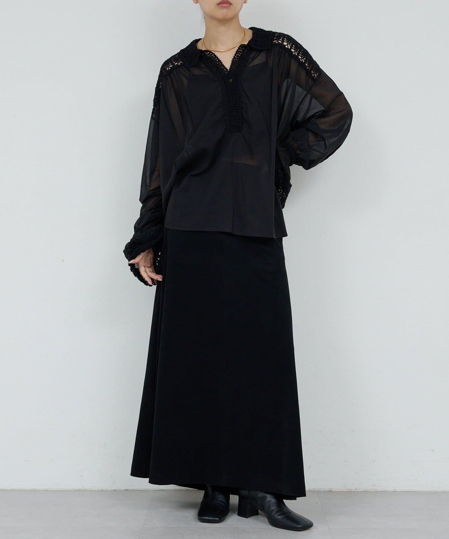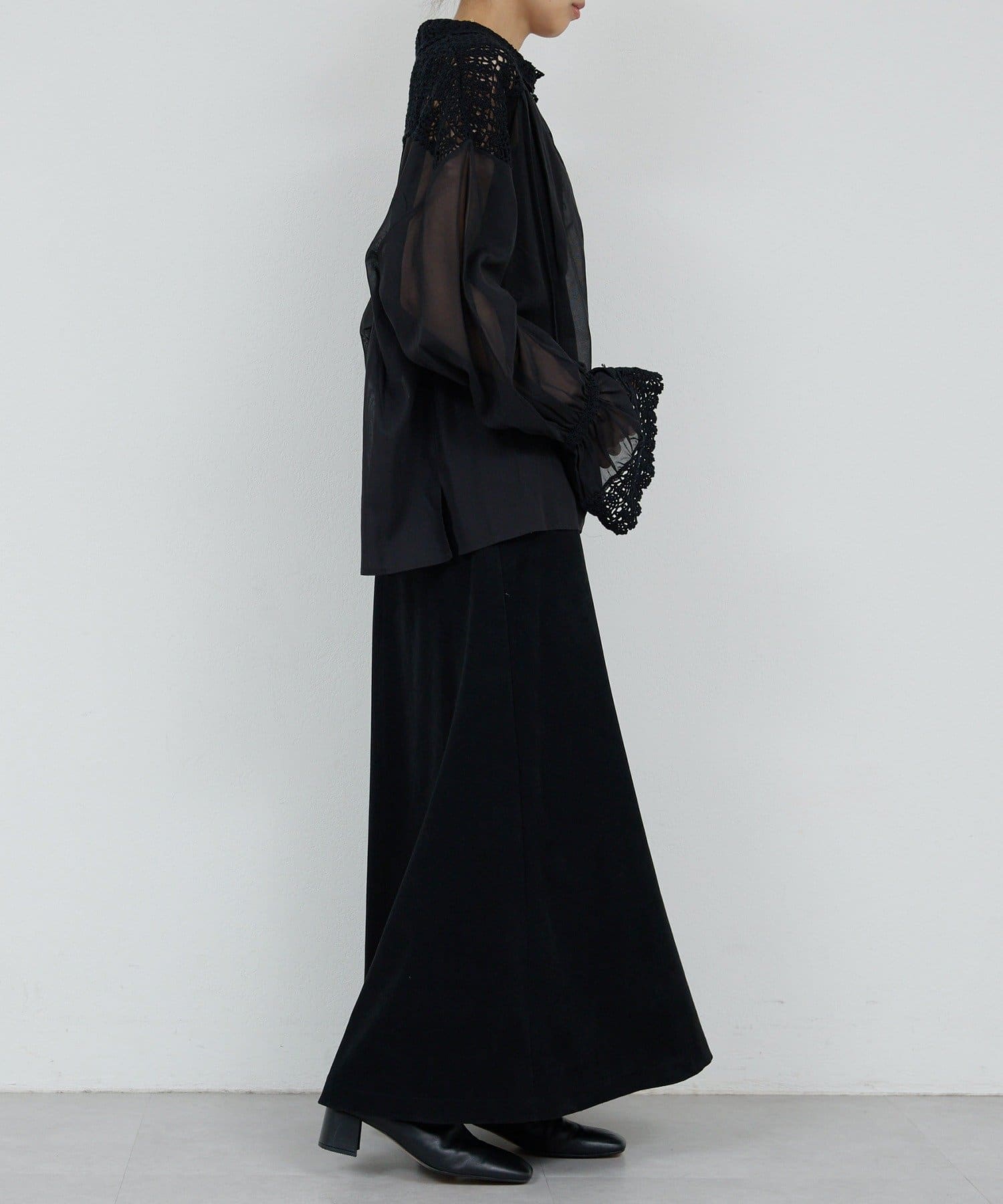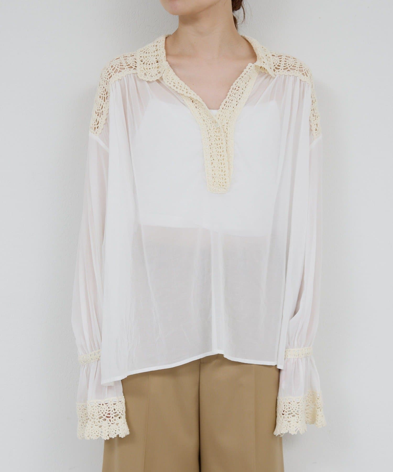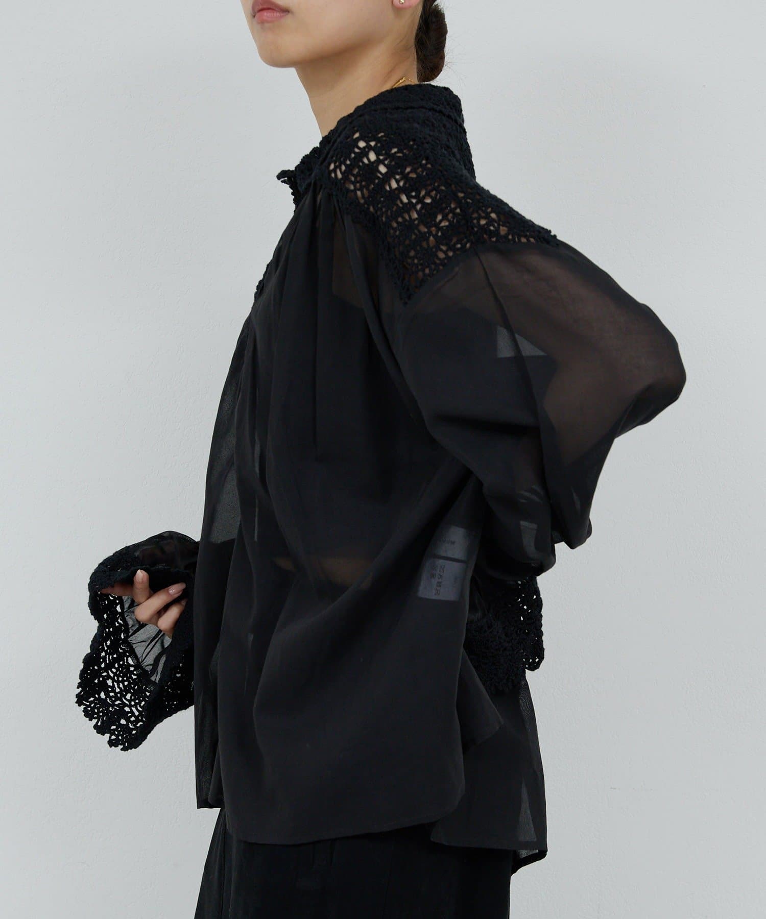 ●クロシェ×シアー素材が温かみと透明感を感じさせる1枚。
