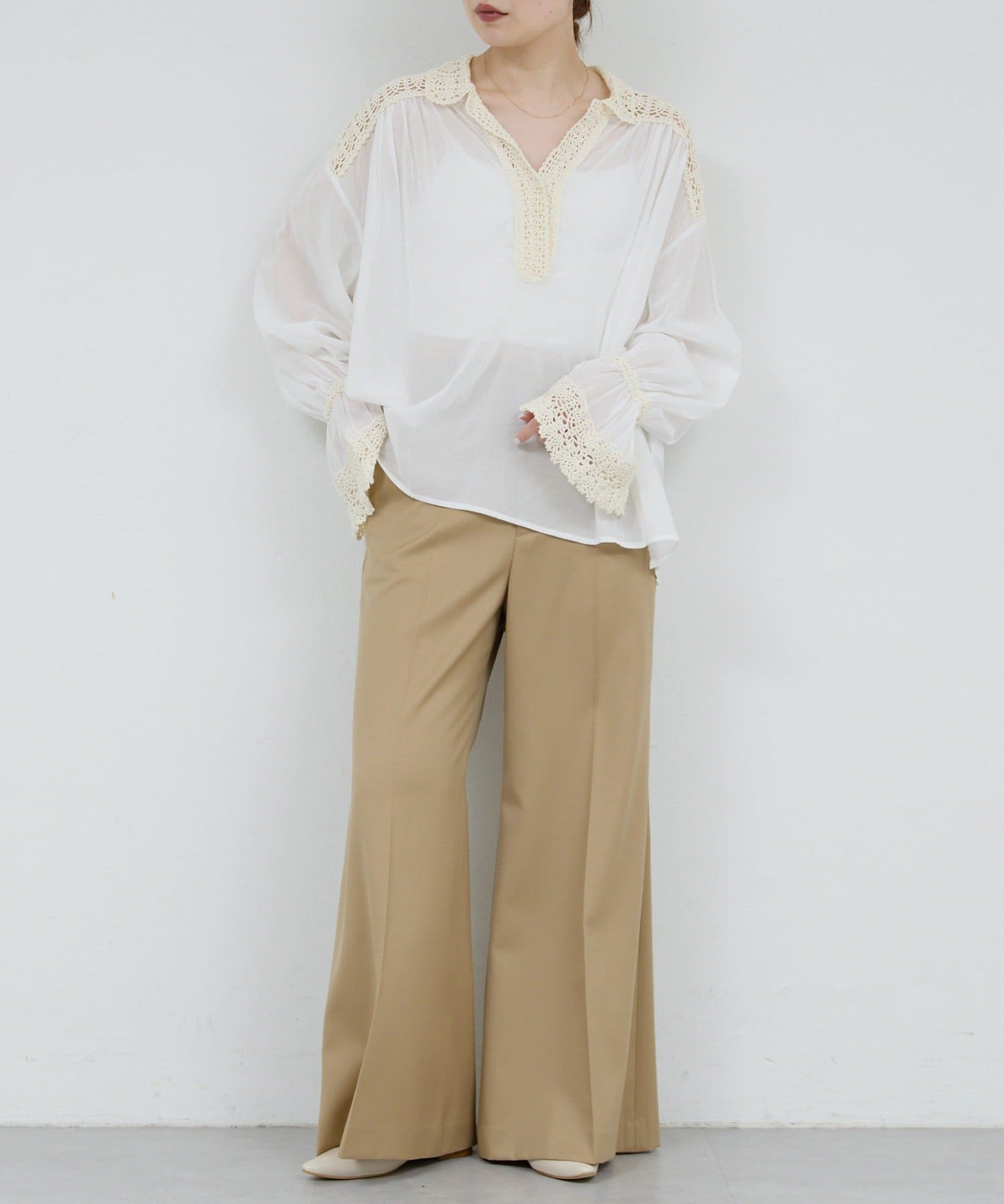 ●パンツでもスカートでも、ボトムスを選ばず合わせられるブラウス。