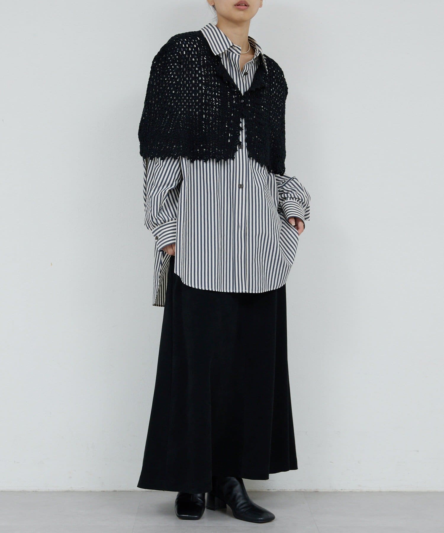 ●ゆったりとしたサイズ感でジャケットの上にも着用可能。
