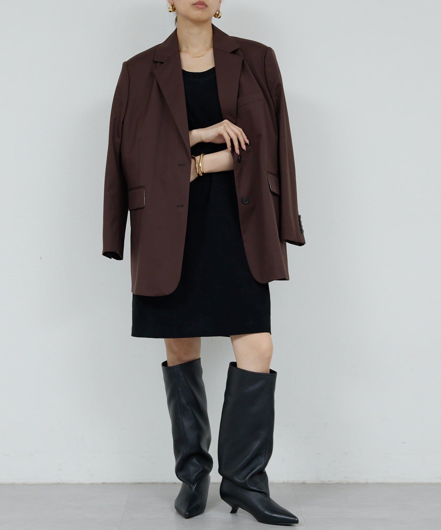 ●オーバーシルエットながらに厚すぎない素材ですっきりと羽織えるジャケット。