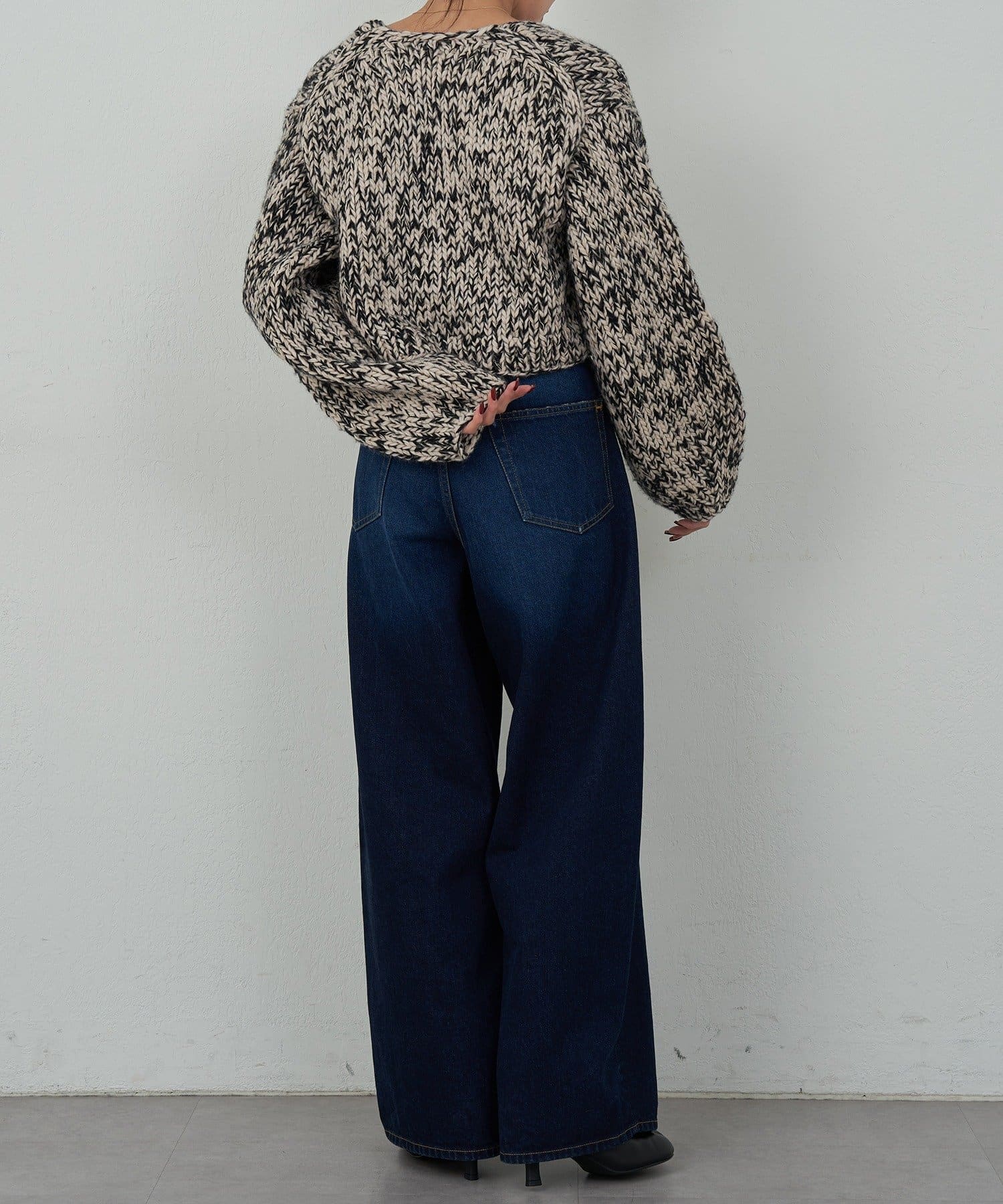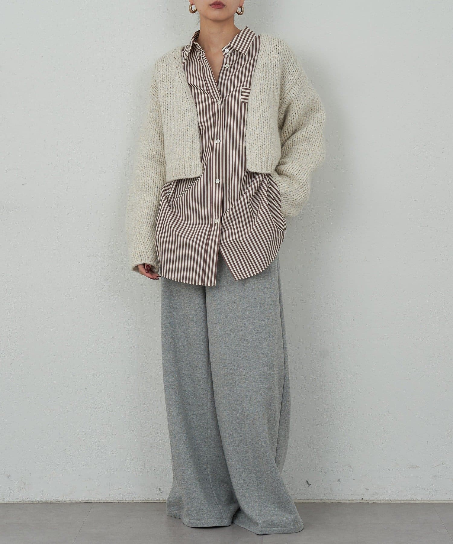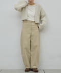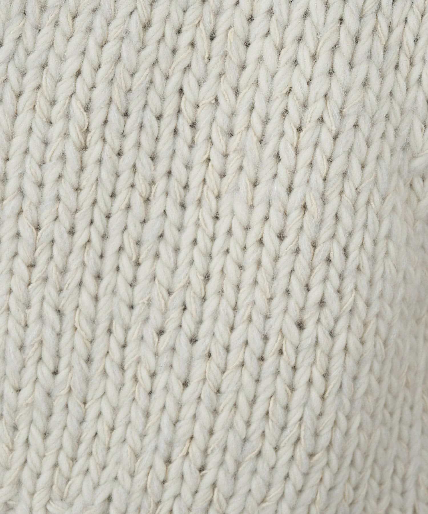●女性らしい温かな印象のスタイリングに導くローゲージ素材。