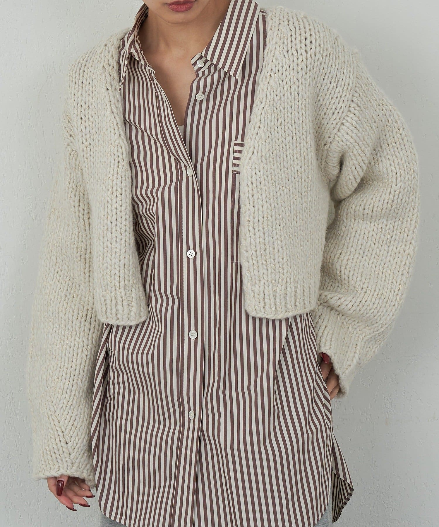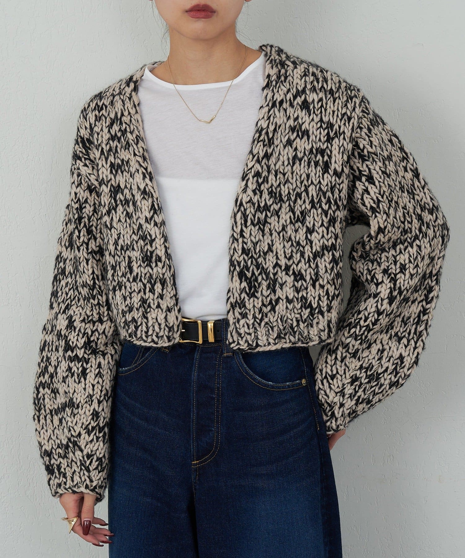 ●コロンとしたフォルムが目を惹くニットジャケット。