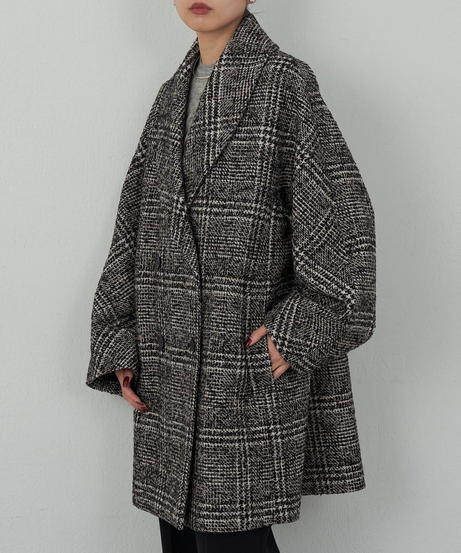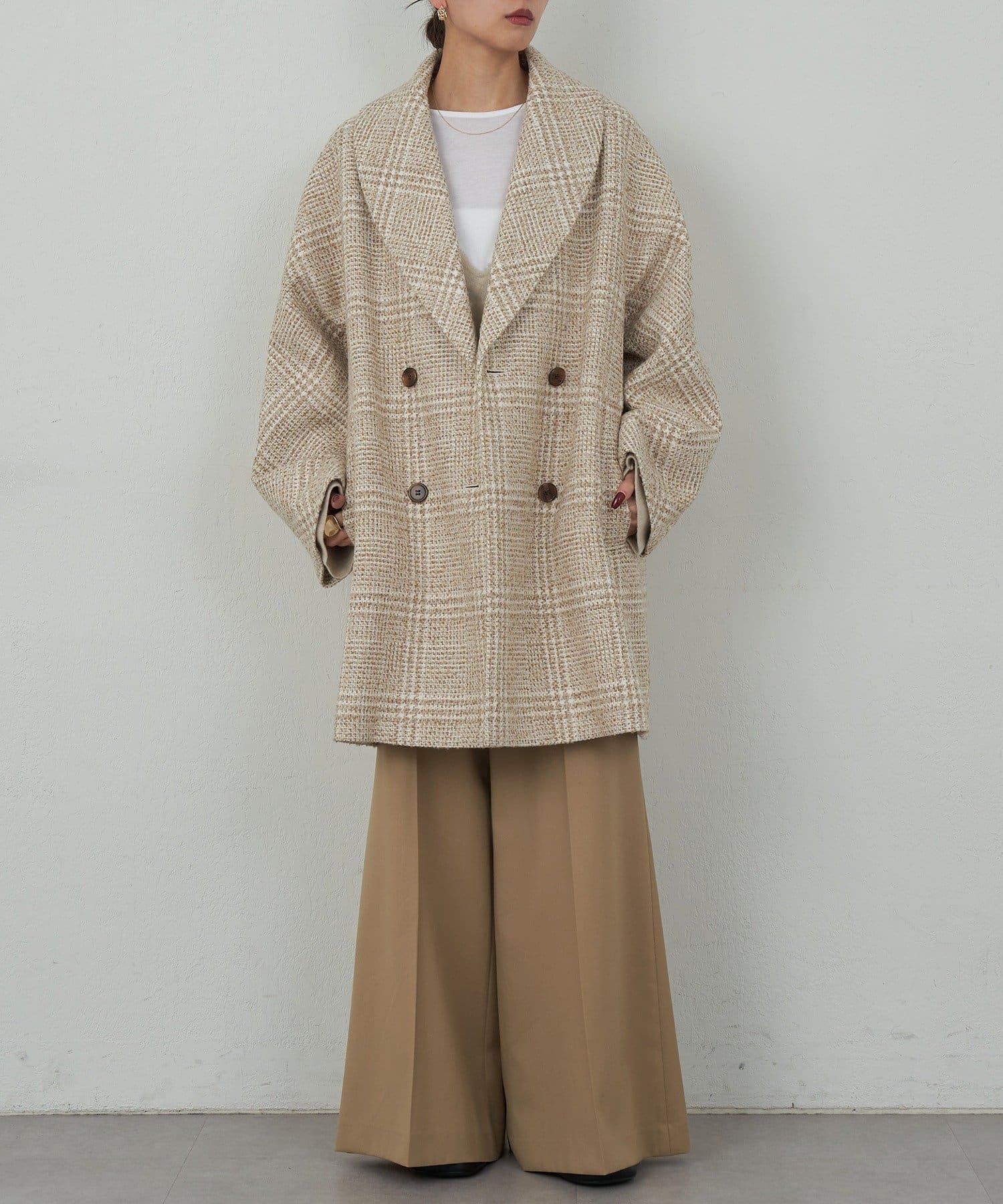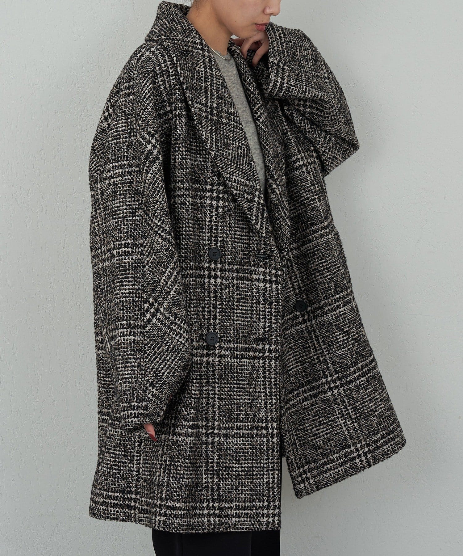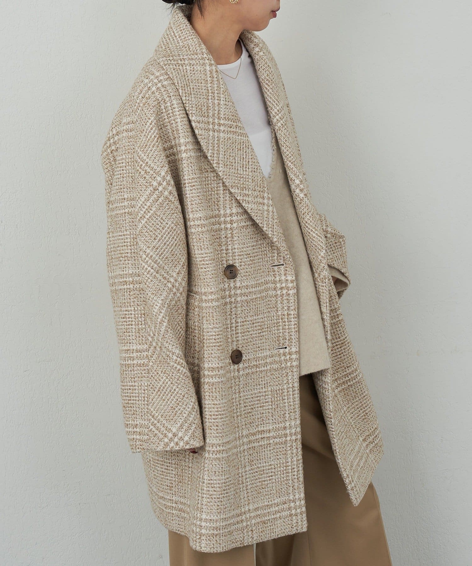 【HERITANOVUM】 ツィードショールカラーショートコート