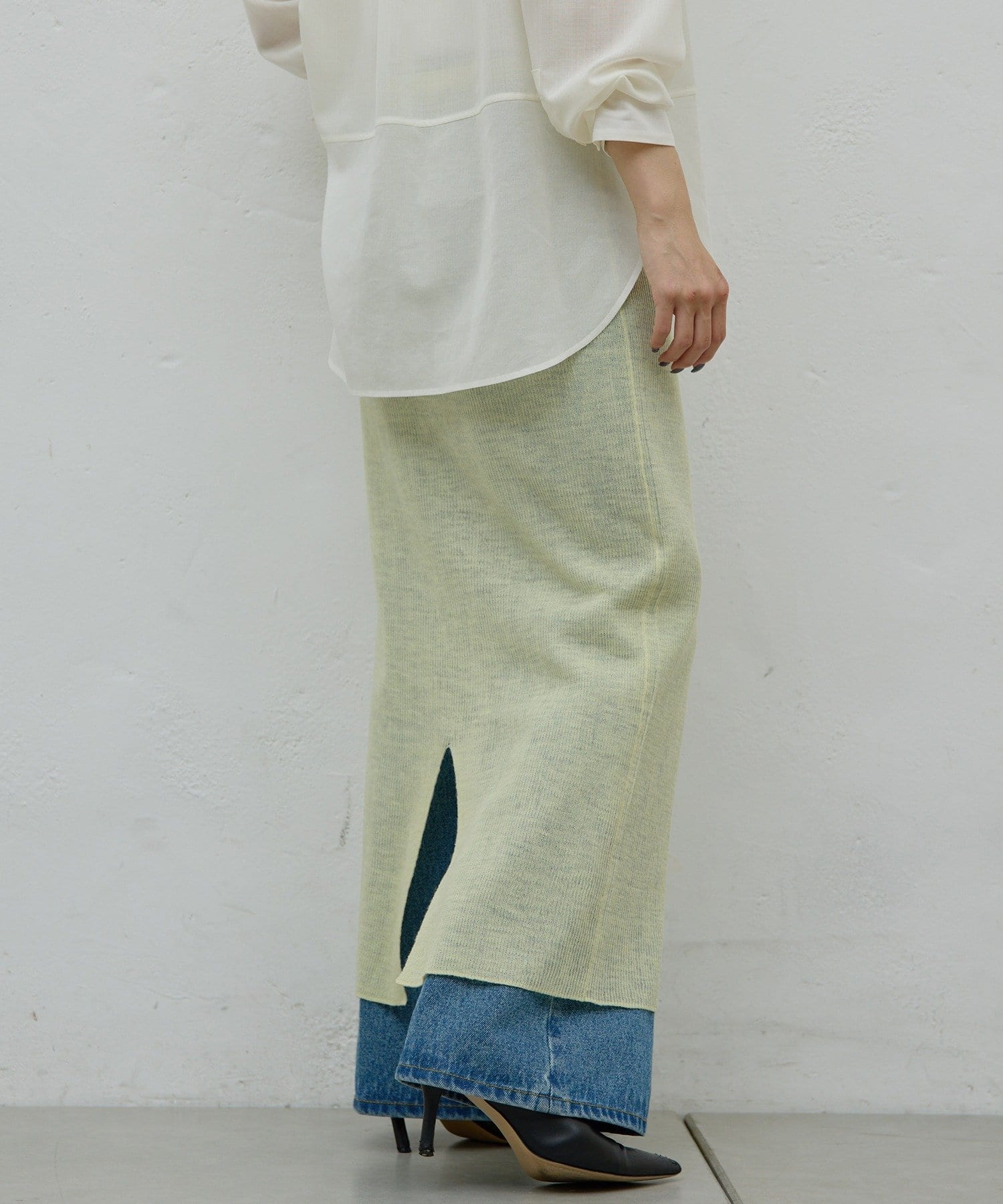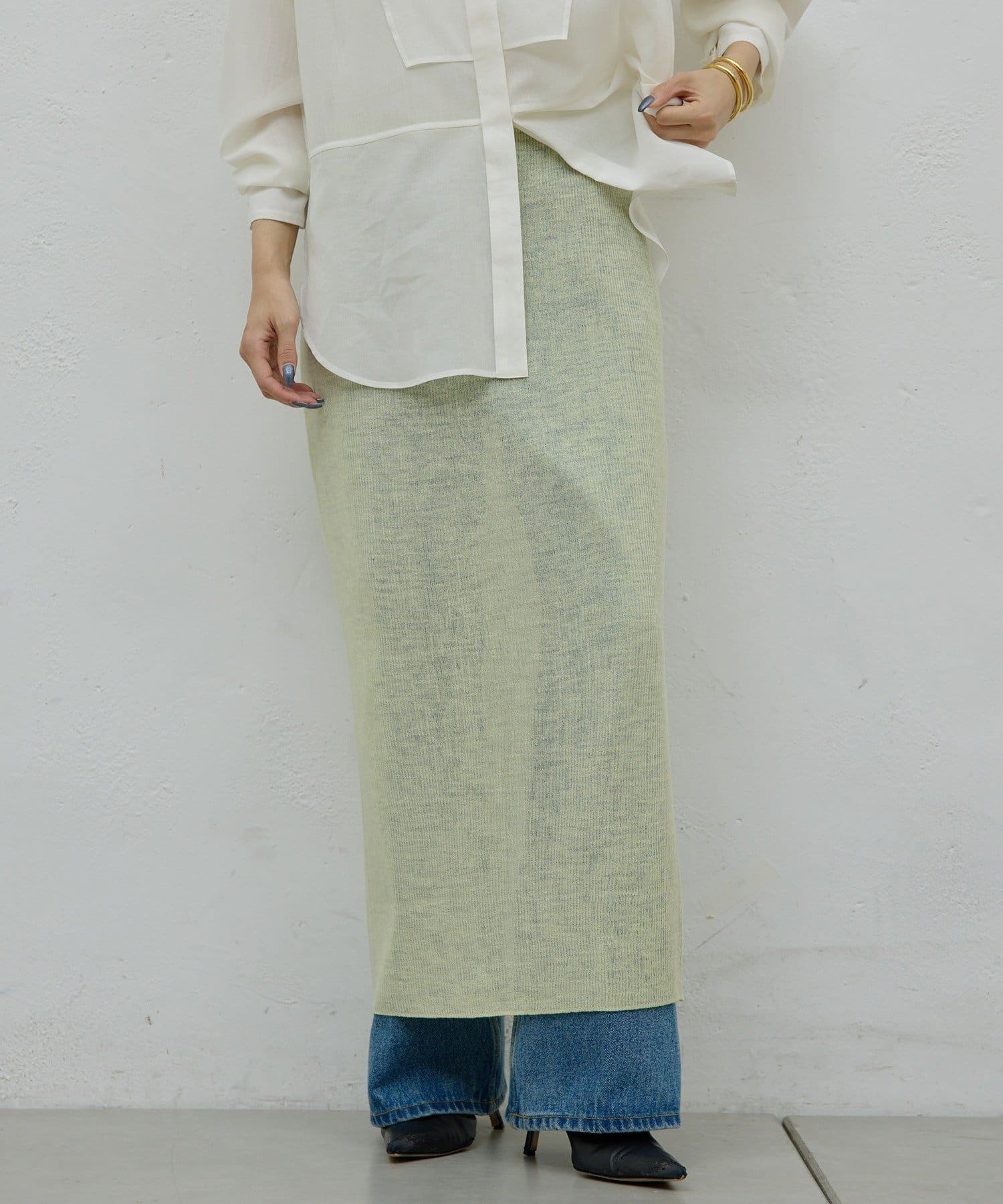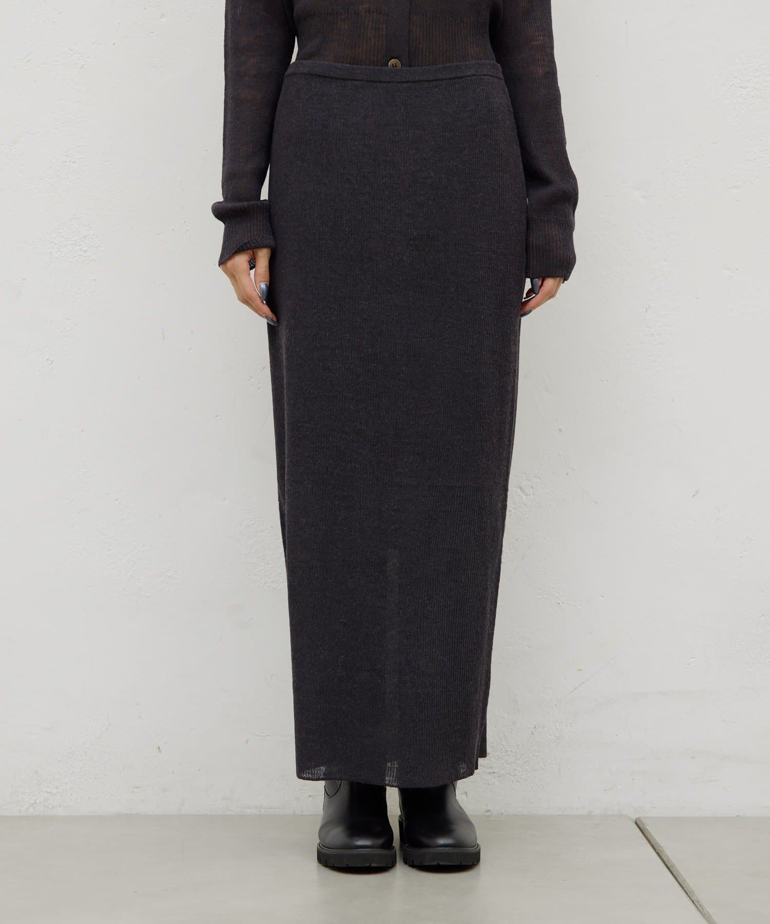 ●上品な雰囲気を纏わせる、ほんのりシアーなニットスカート。