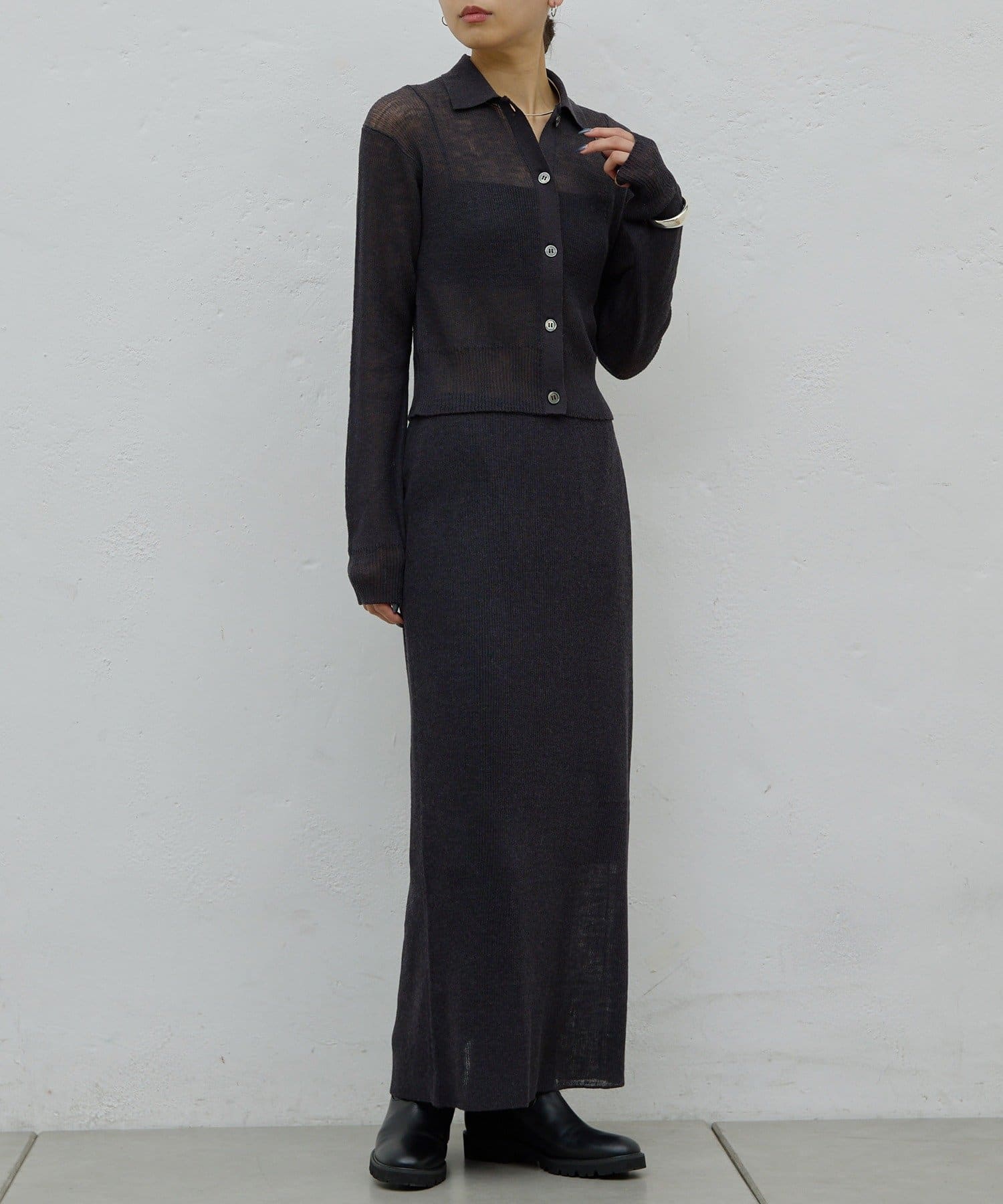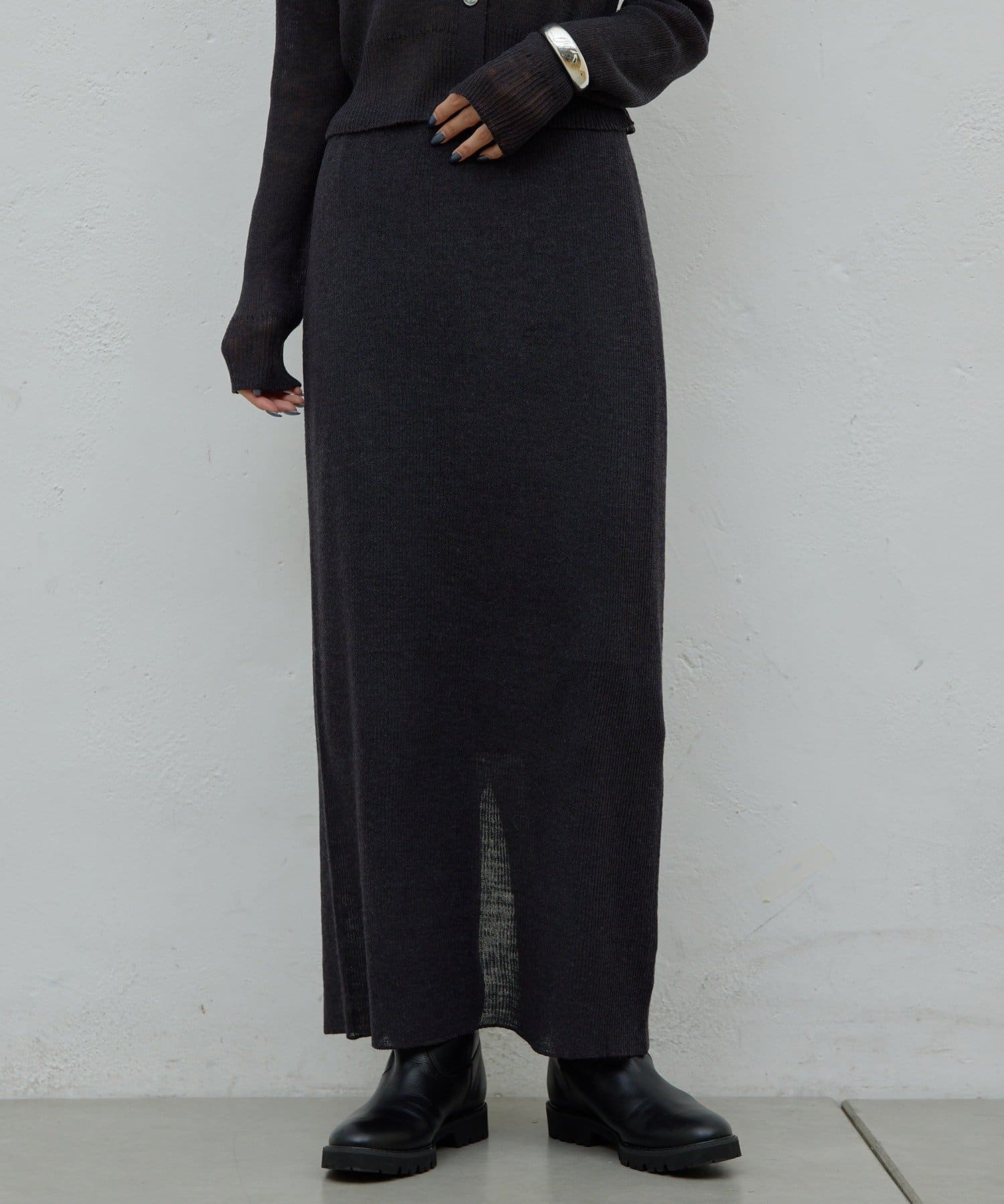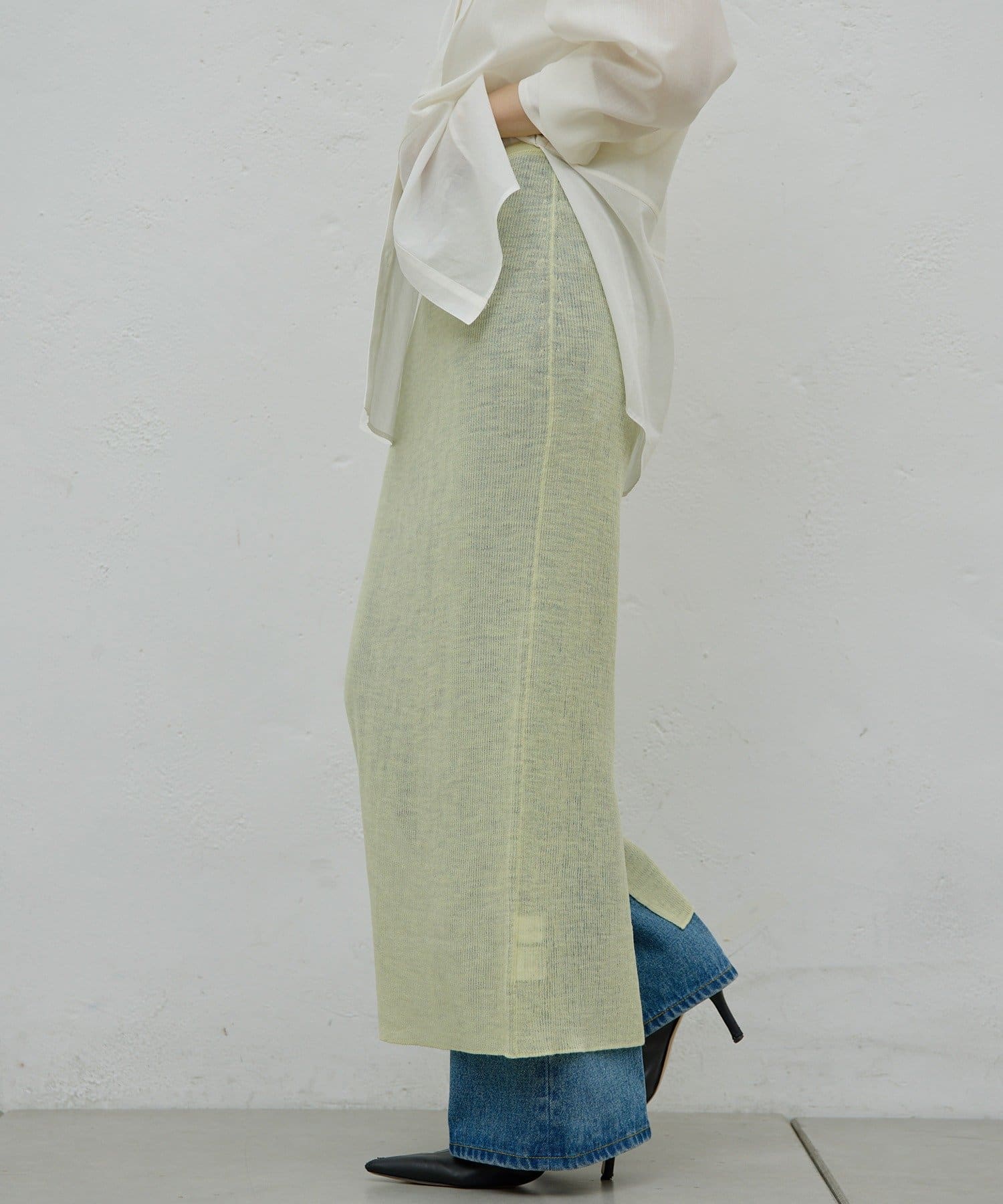 ●上品な雰囲気を纏わせる、ほんのりシアーなニットスカート。