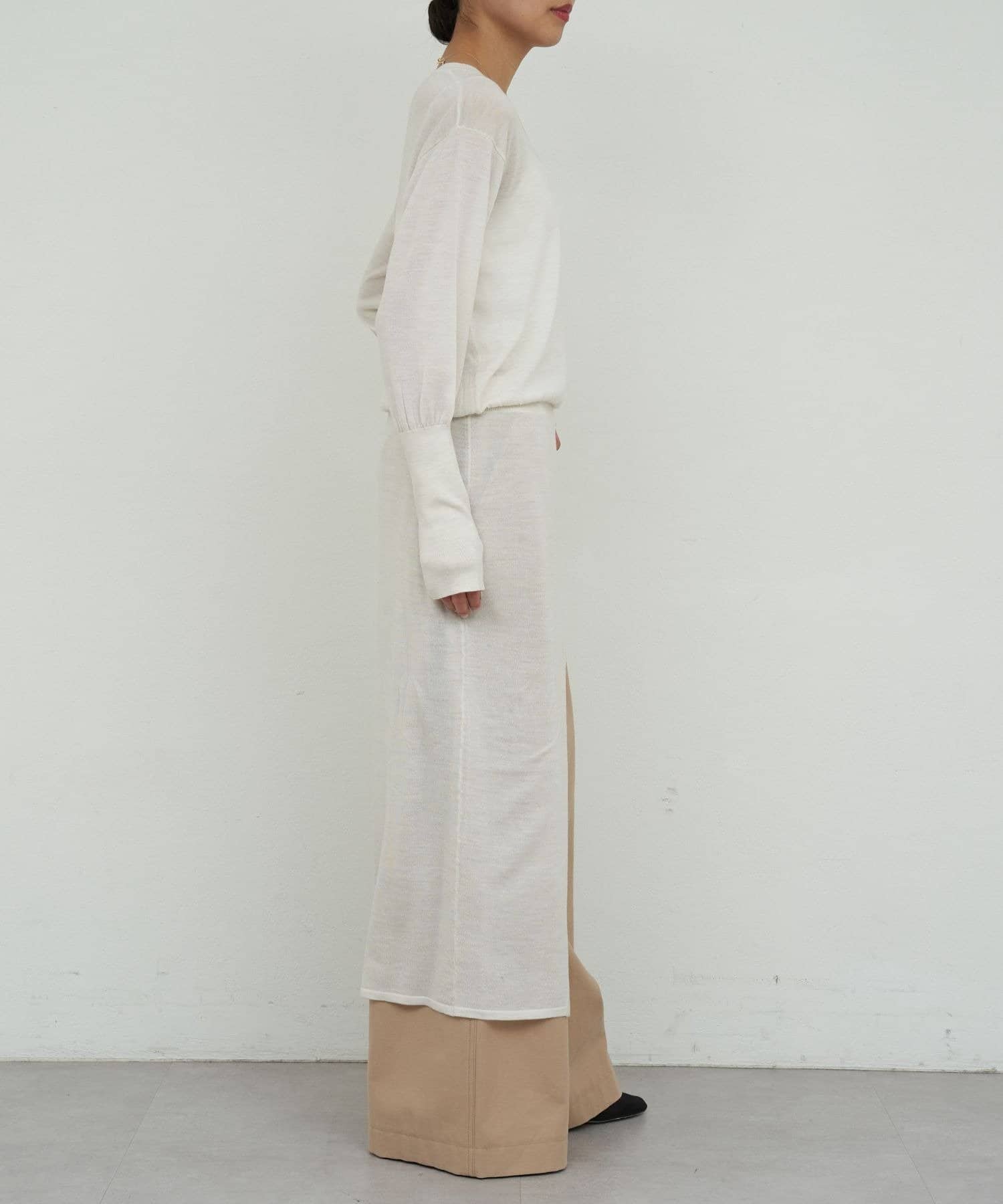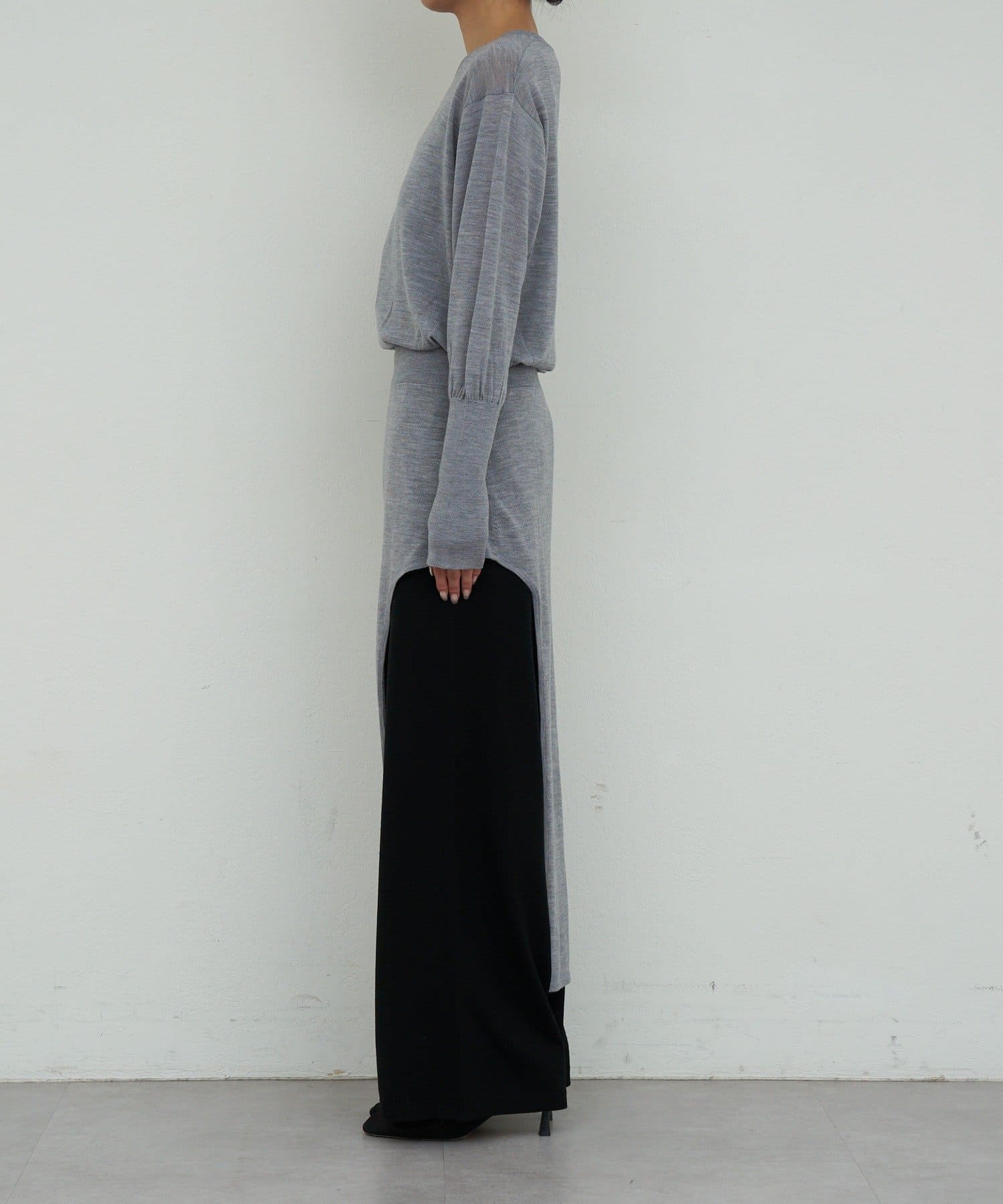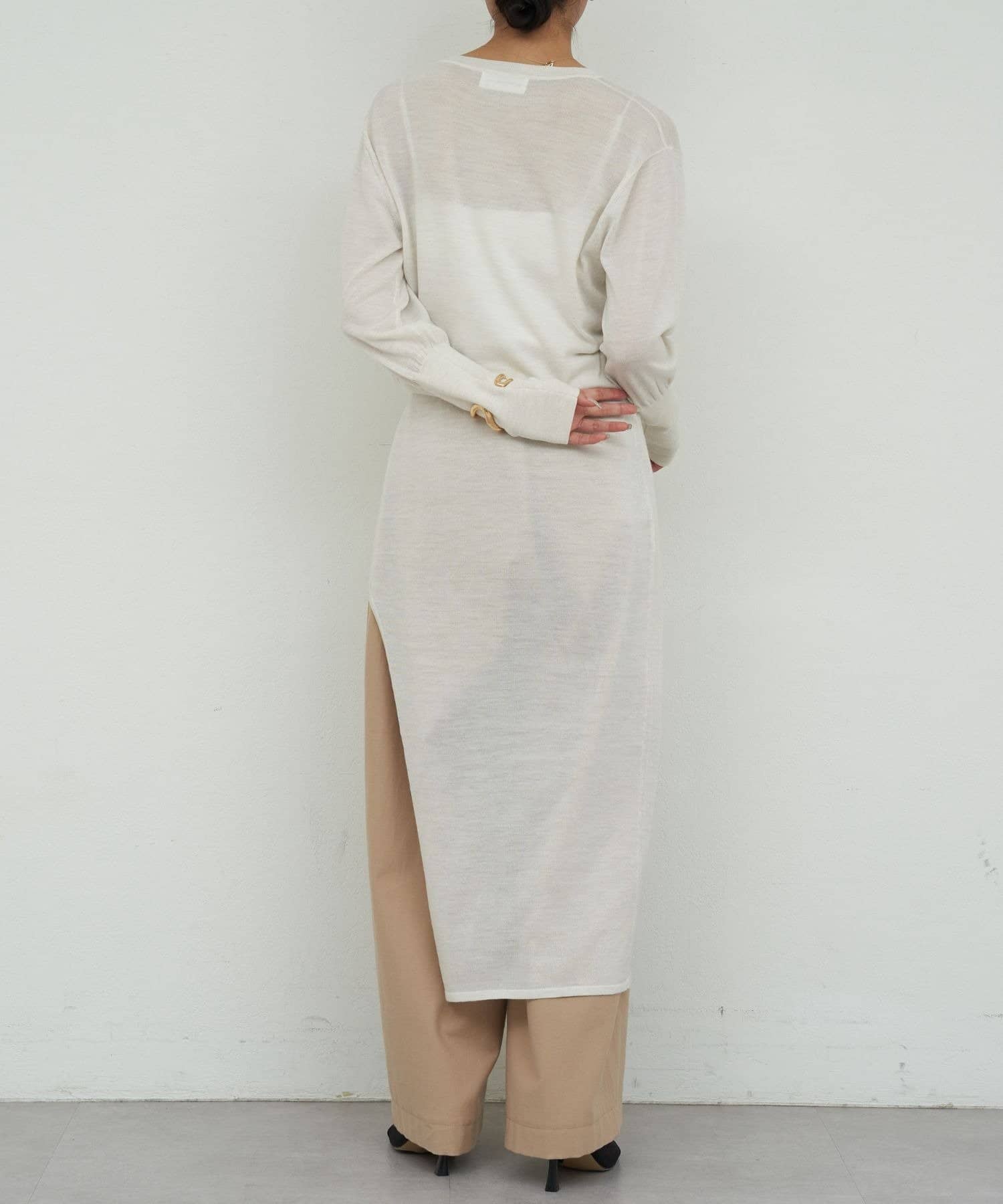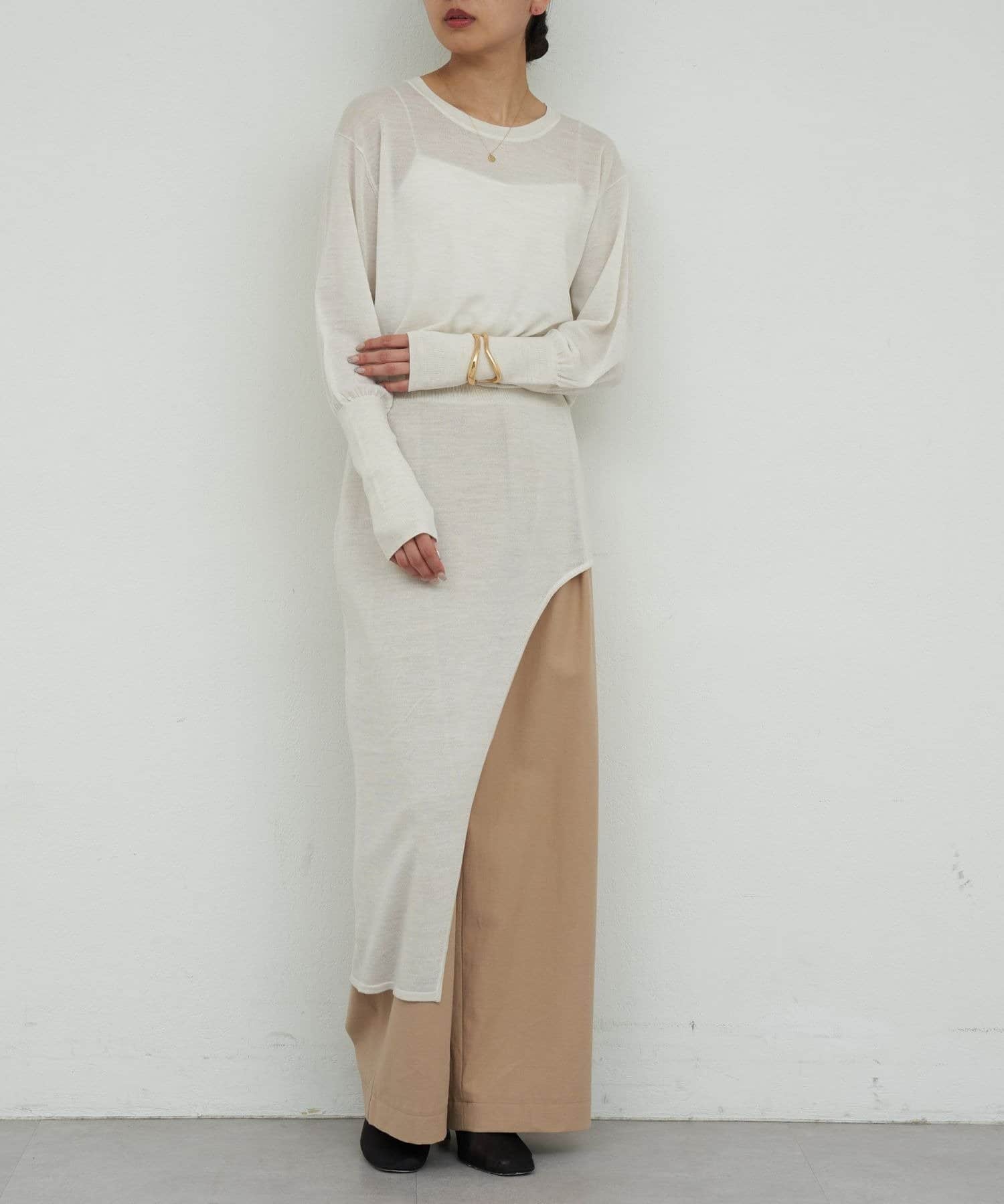 大人の余裕を感じる丈感が特徴のシアーニットワンピース
