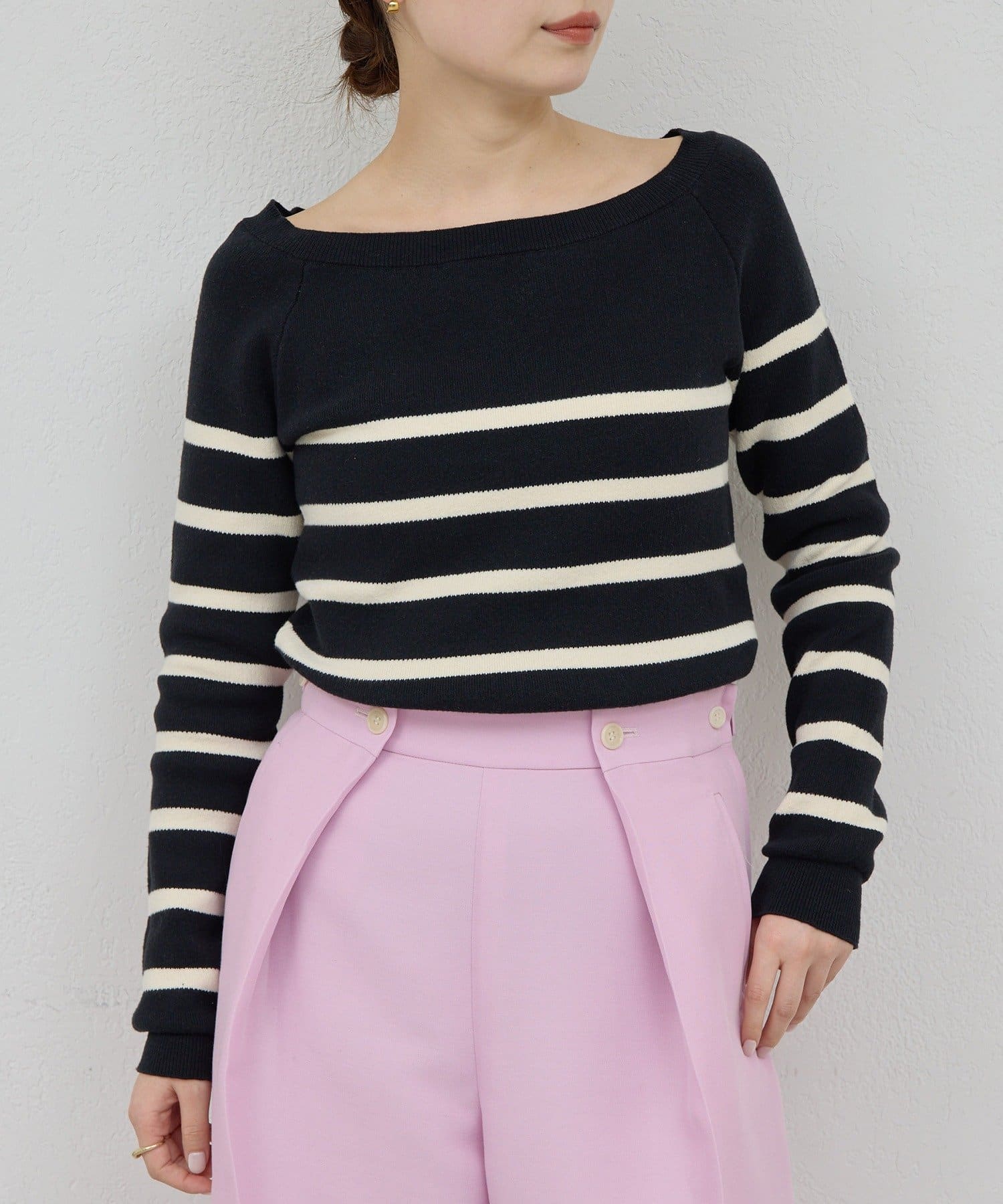 ●装いにさりげない抜け感を生むボーダーニット。