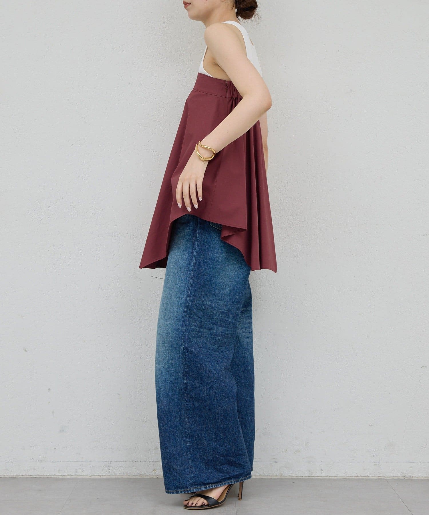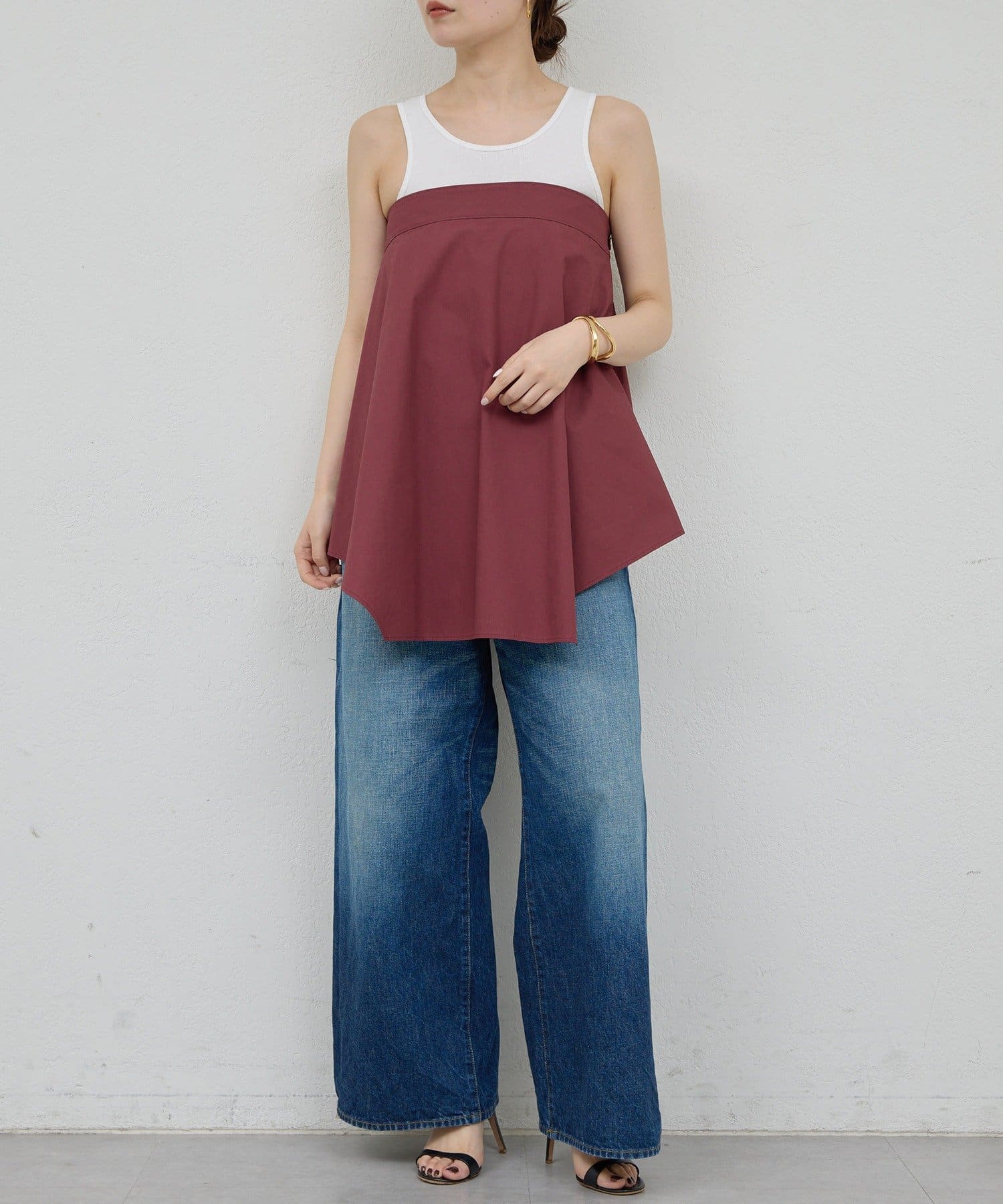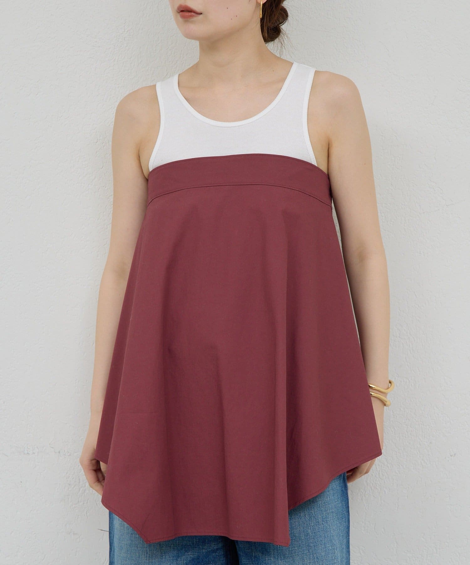 ●装いに奥行きを添える、立体的なシルエットが魅力のビスチェ。