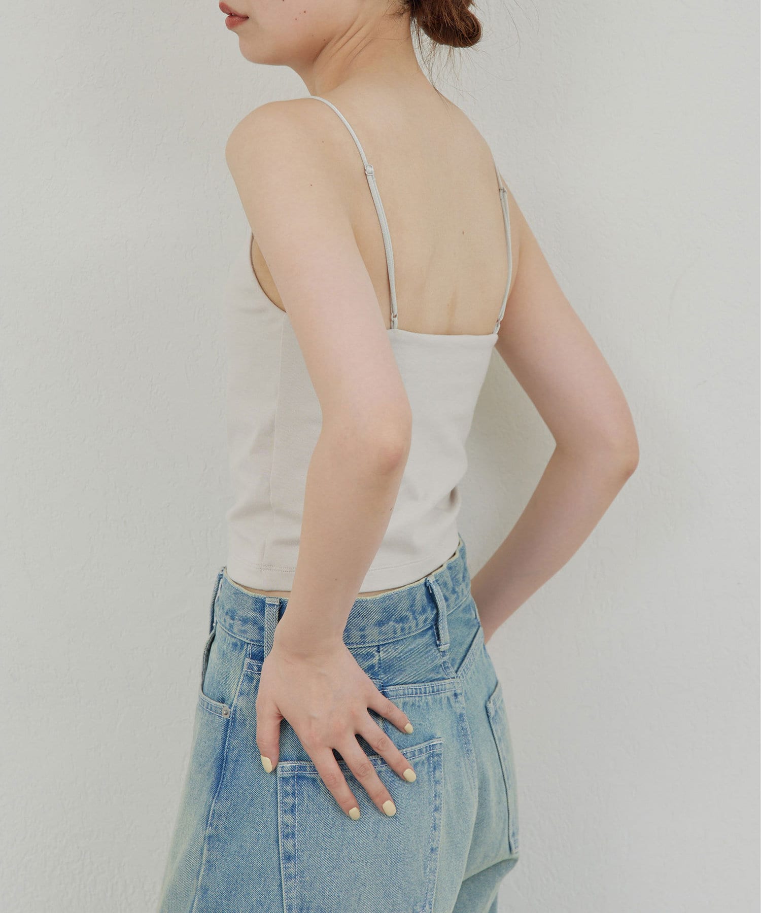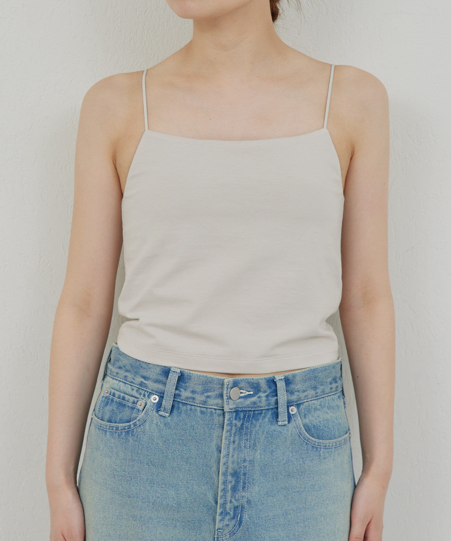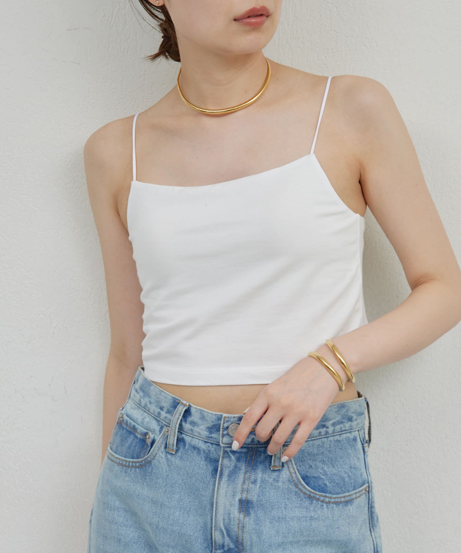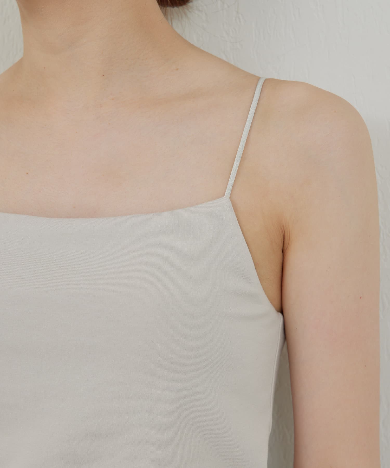 ●シアートップスや深Vネックアイテムのインナーとして重宝する1枚。