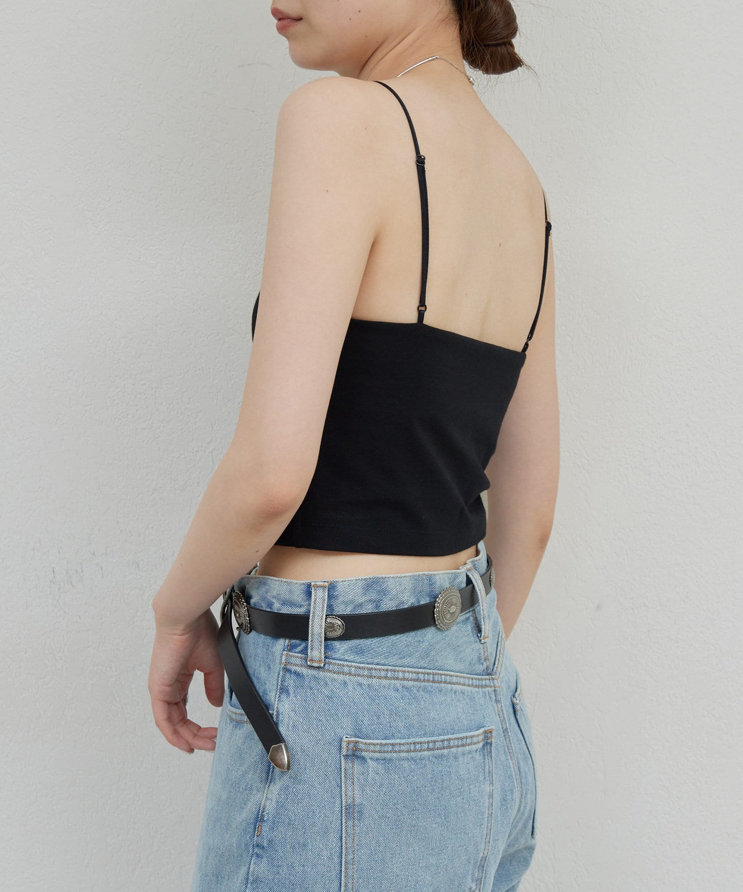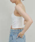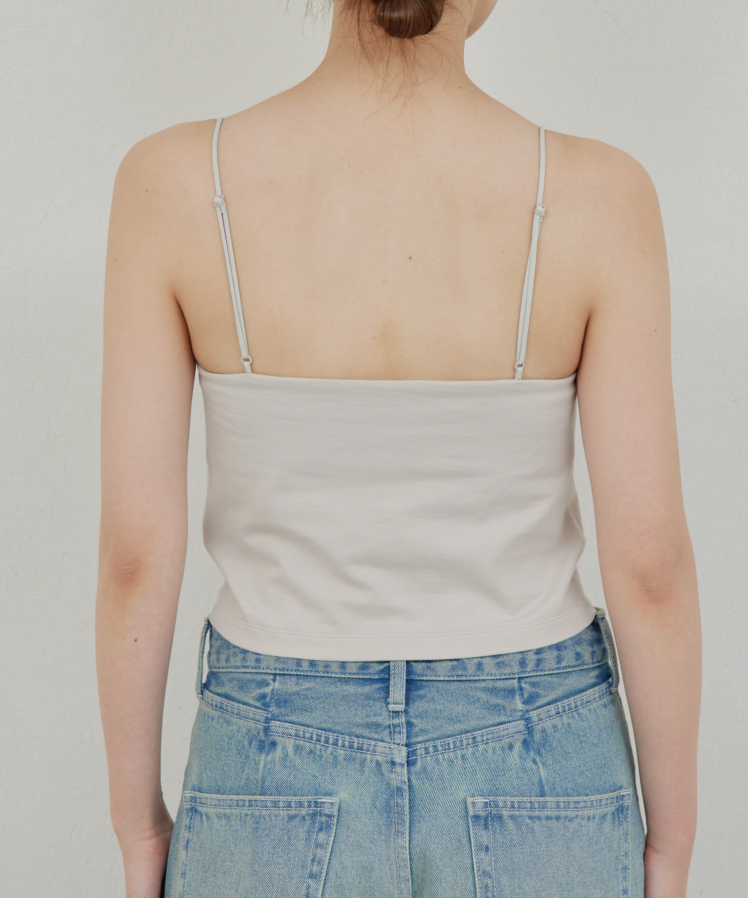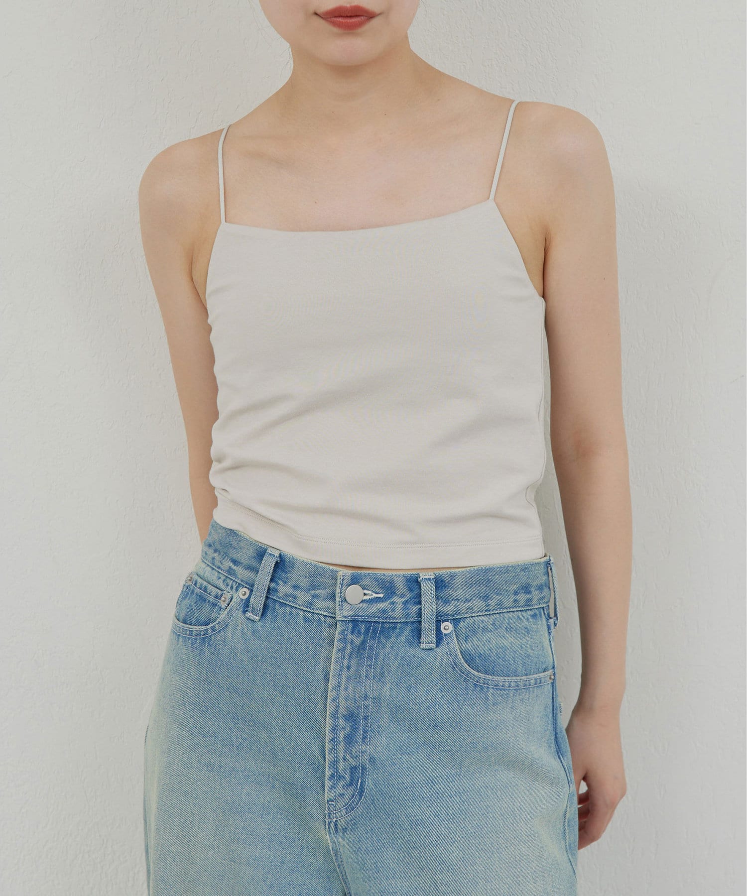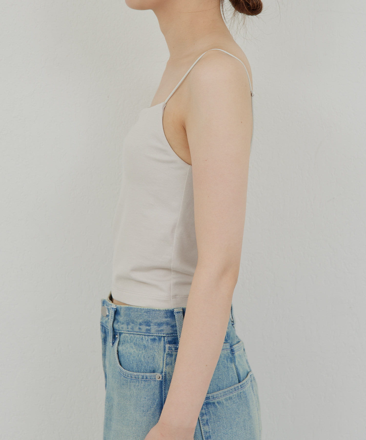 ●シアートップスや深Vネックアイテムのインナーとして重宝する1枚。