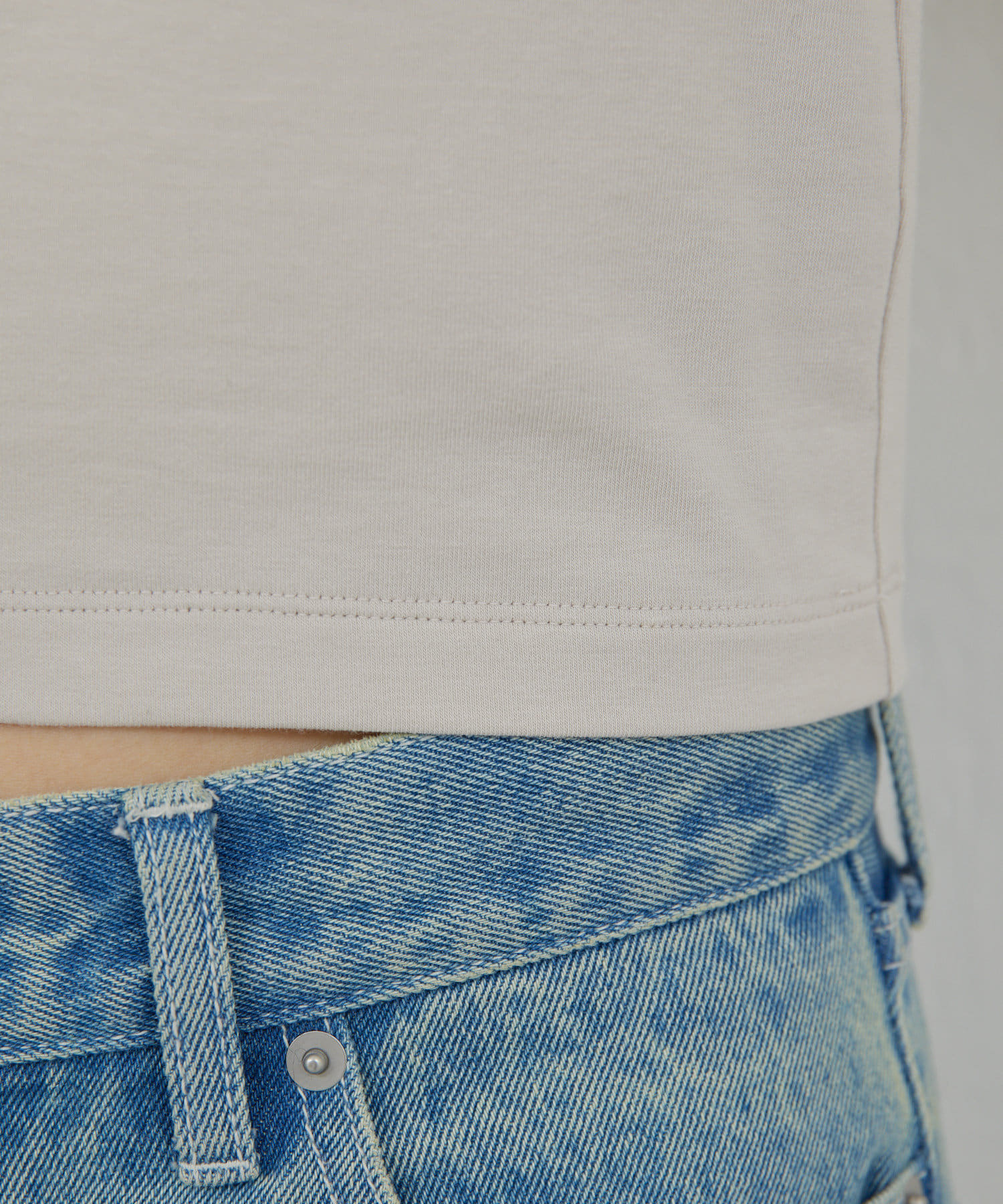 ●ハイウエストボトムと合わせて程よい肌見せが叶うショート丈。