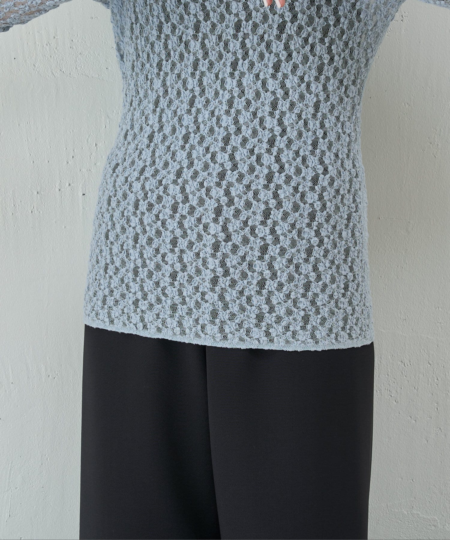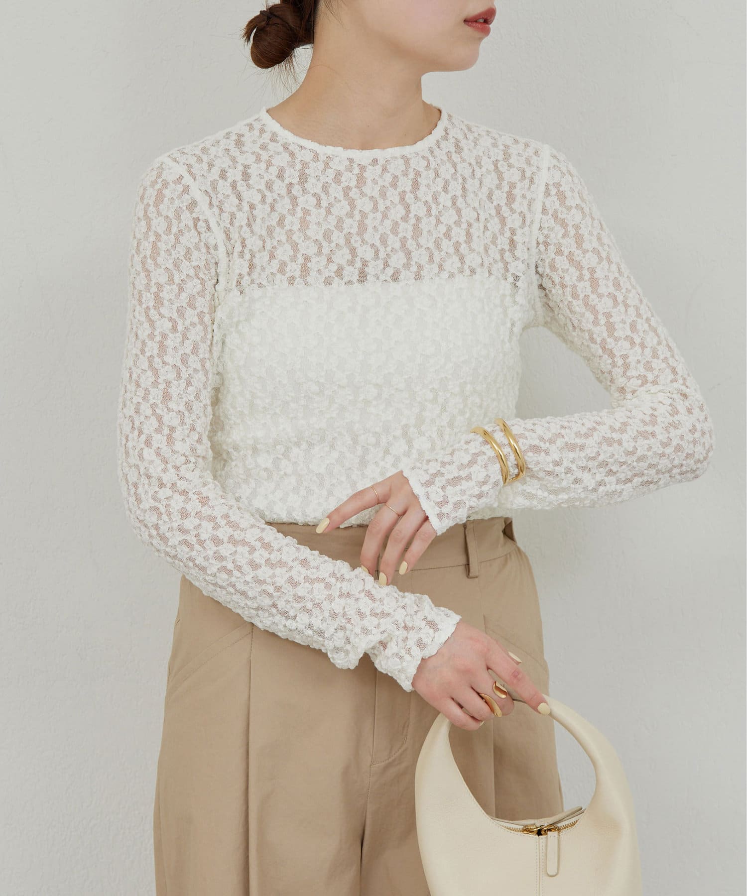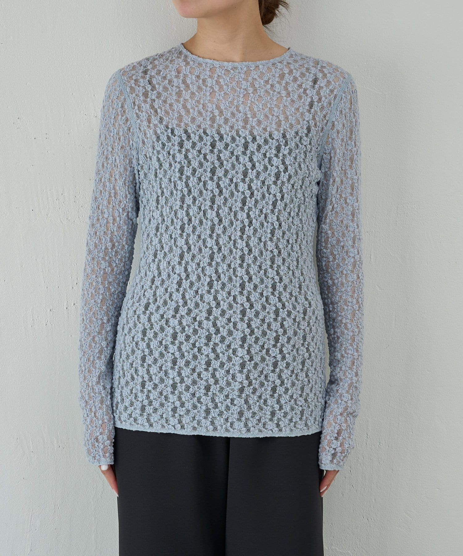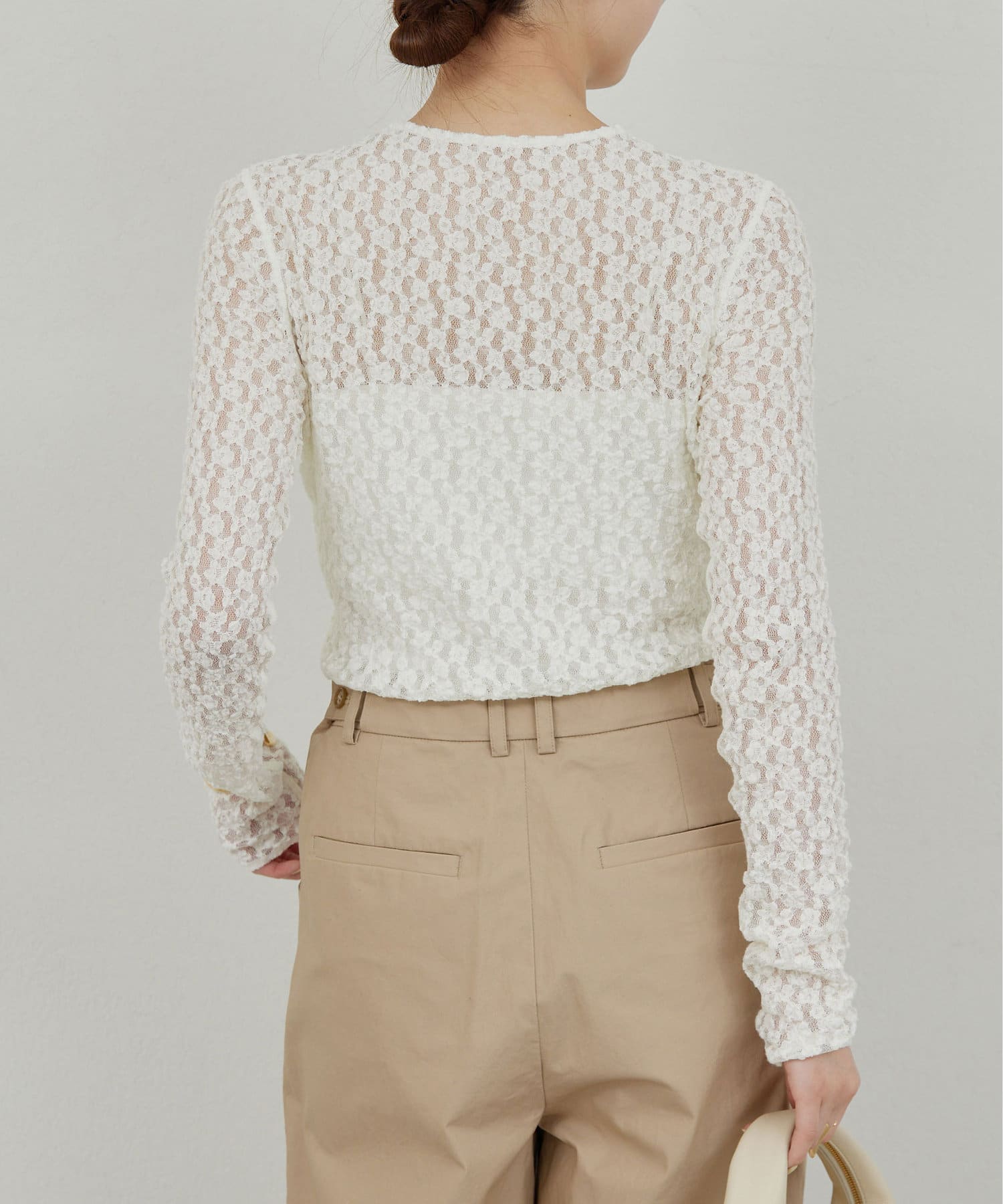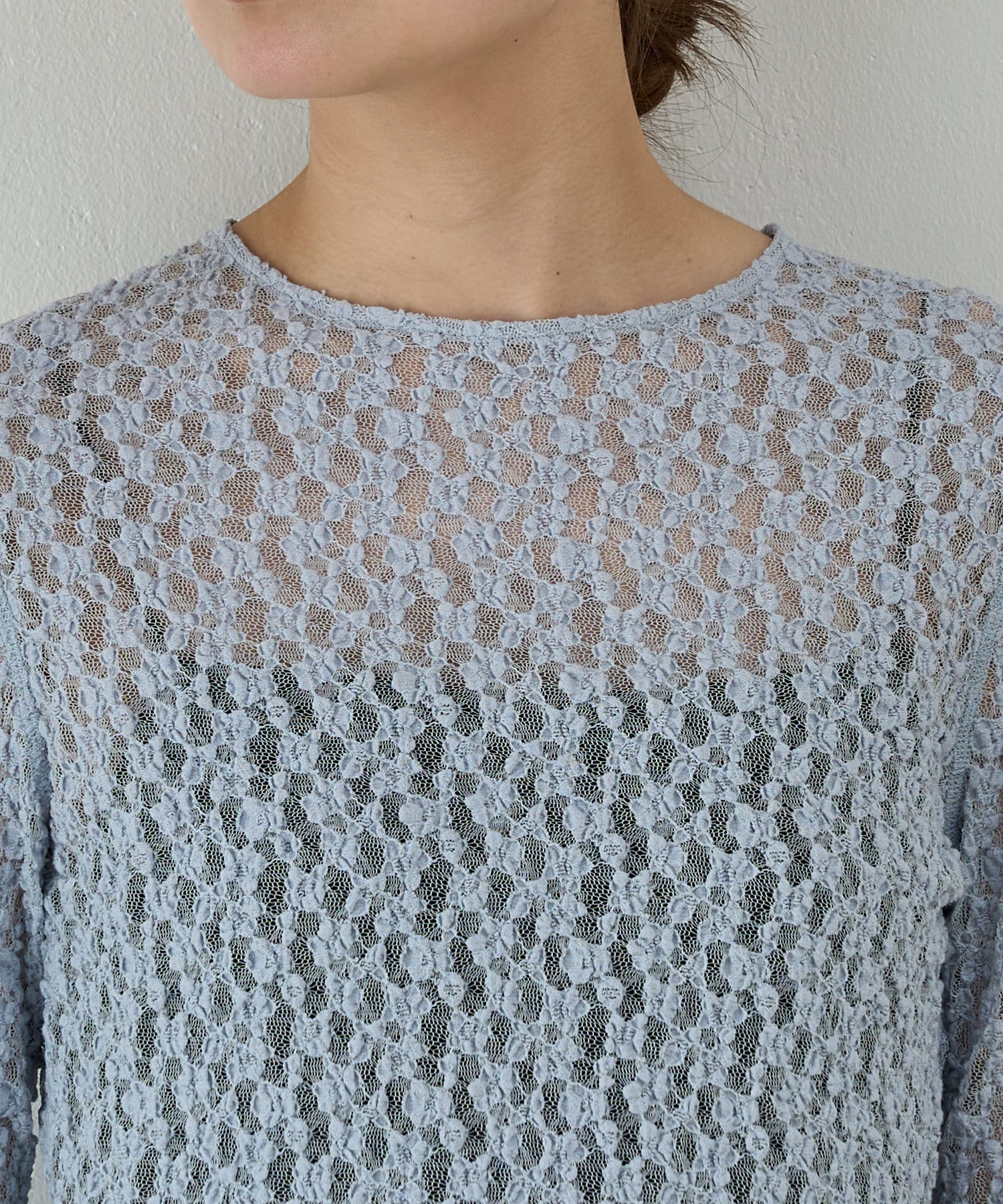 ●ブラウスよりラフに着られるレース素材のロングスリーブカットソー。