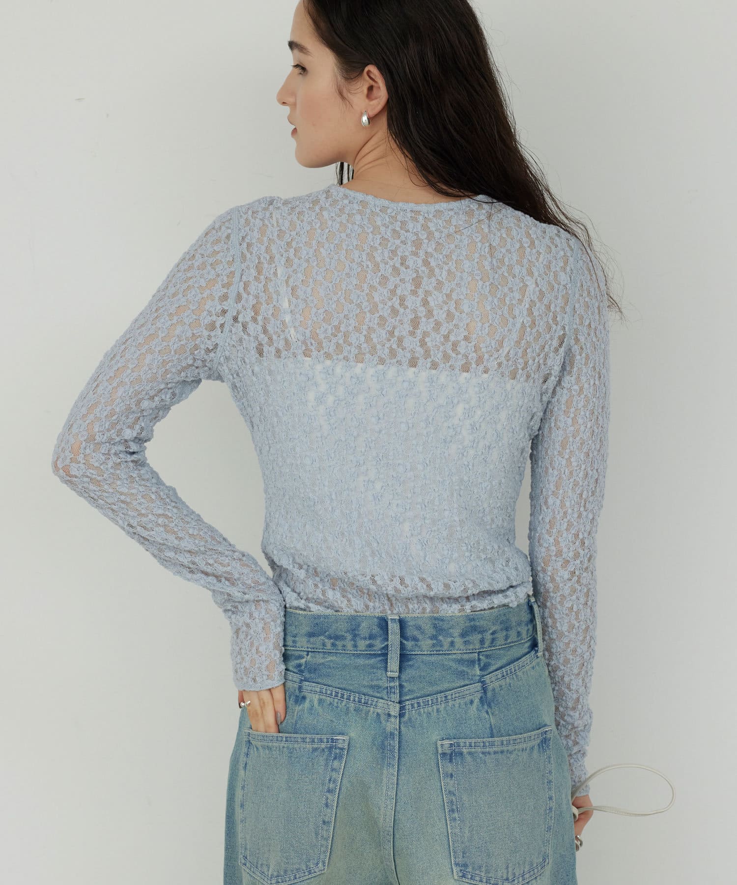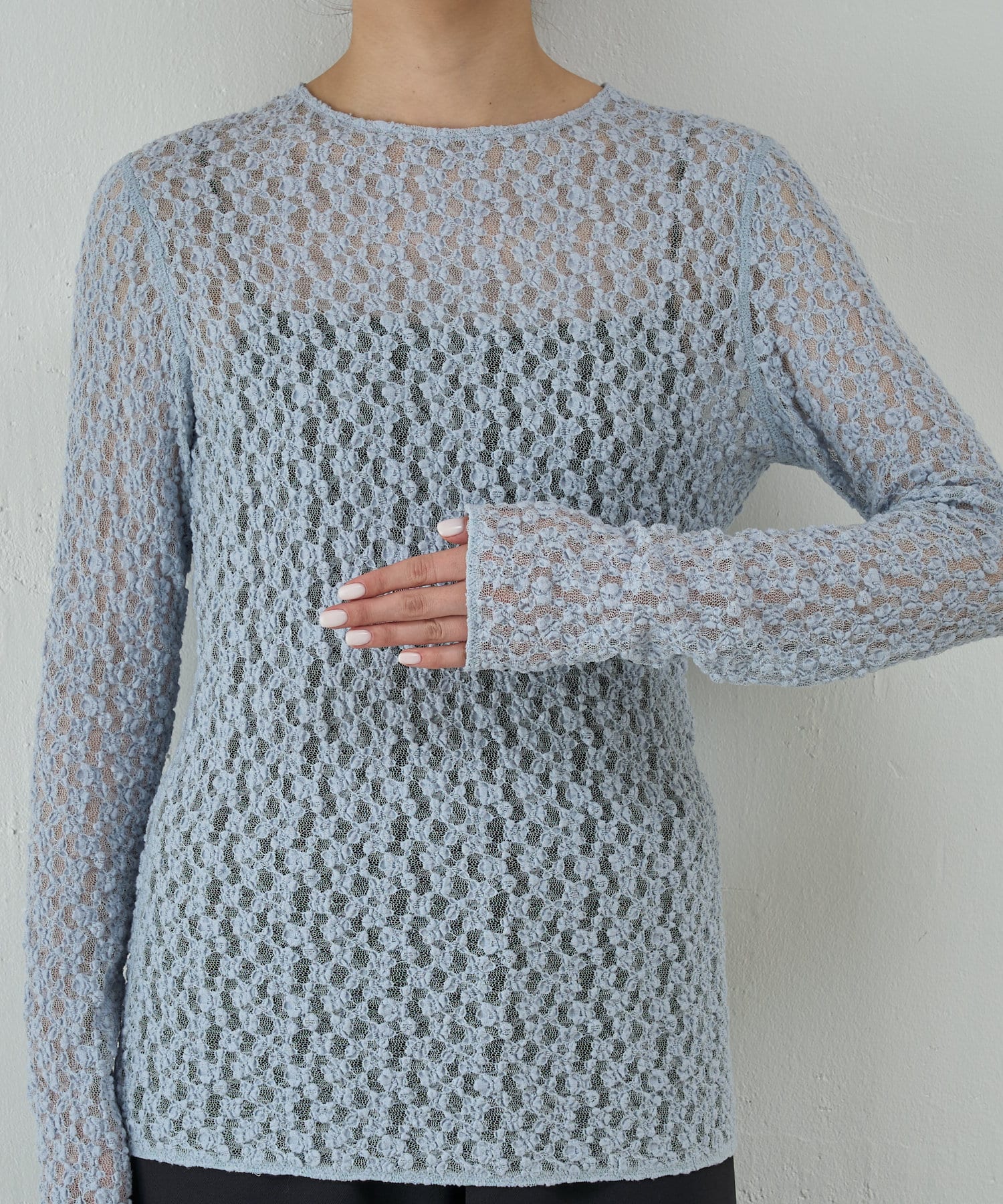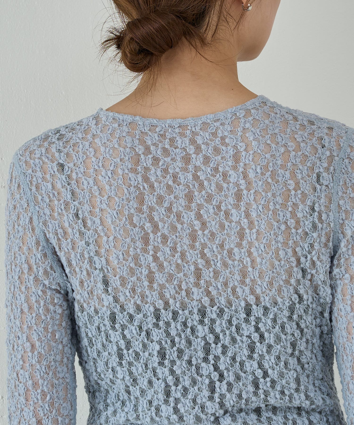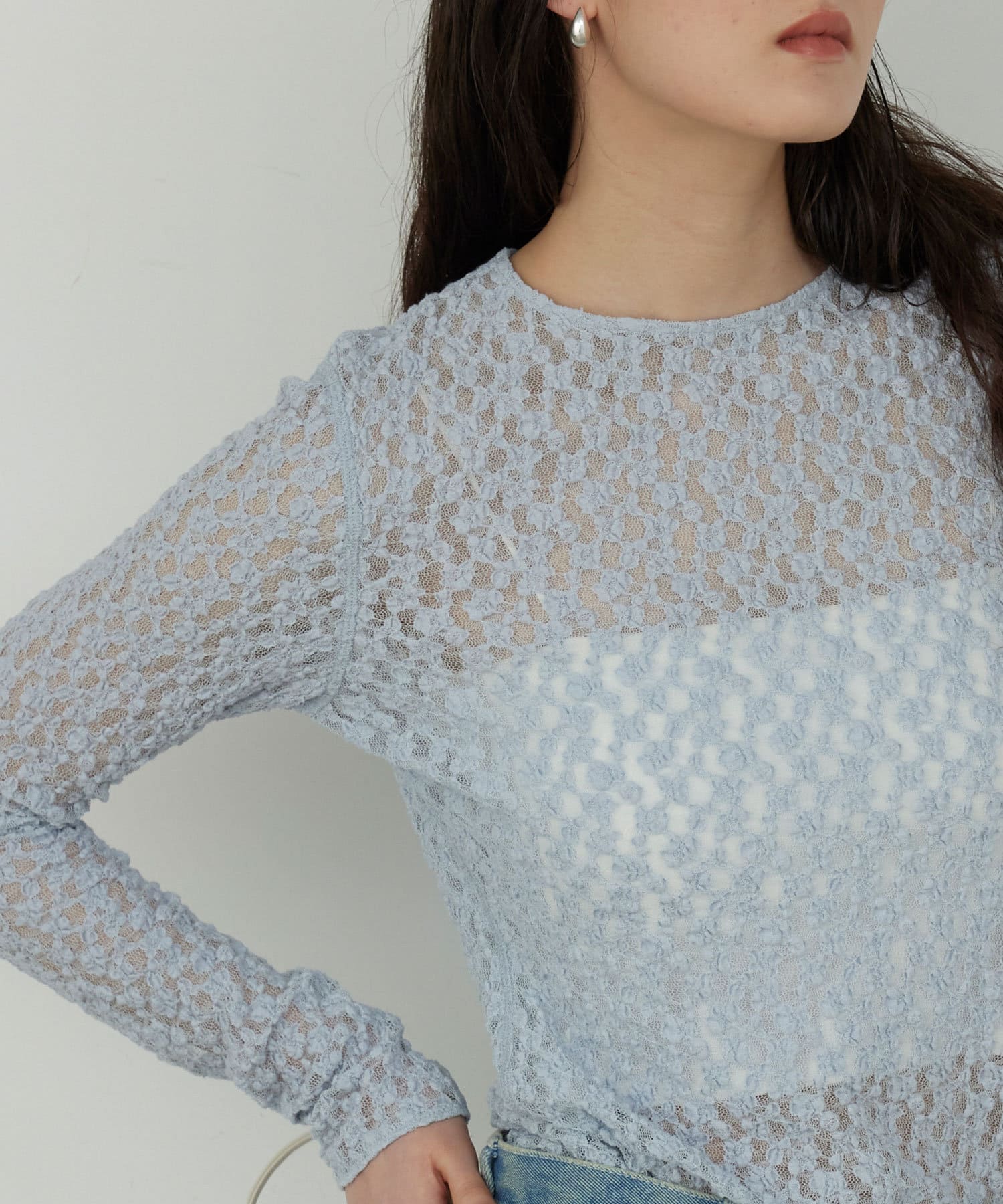 ●ブラウスよりラフに着られるレース素材のロングスリーブカットソー。