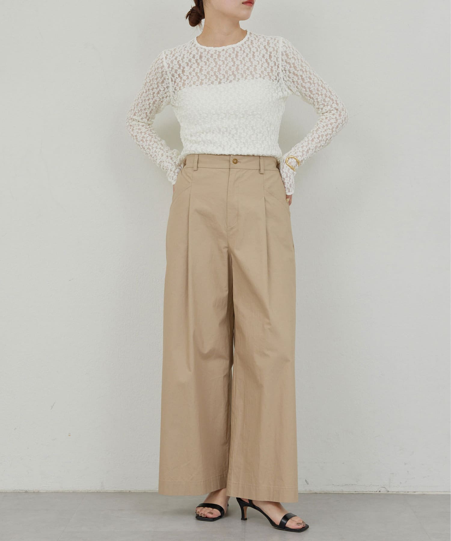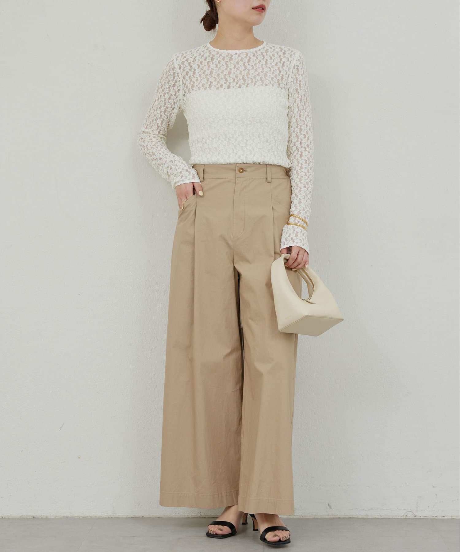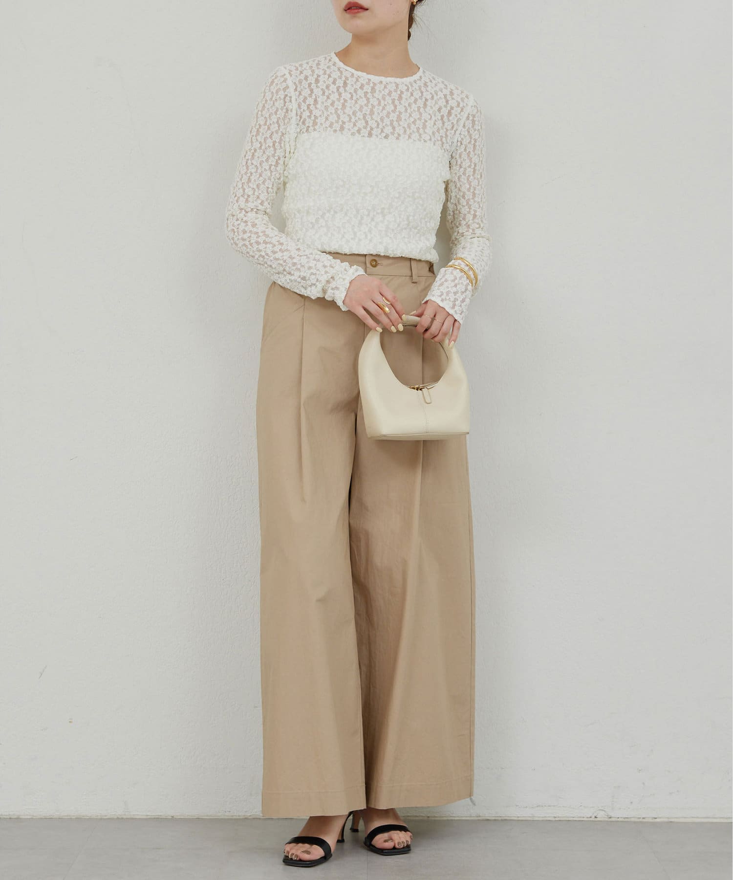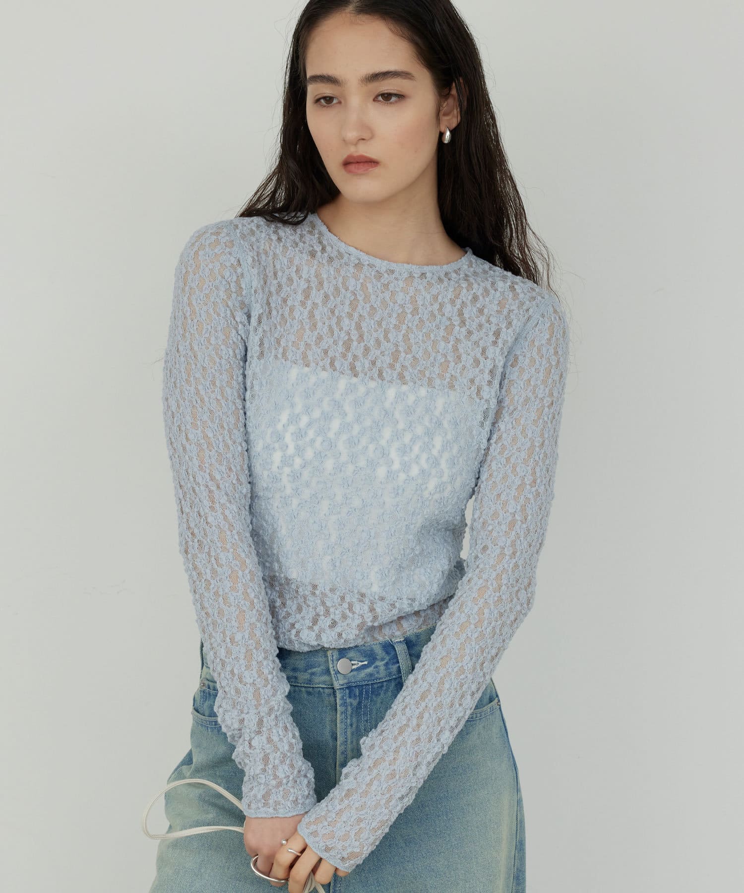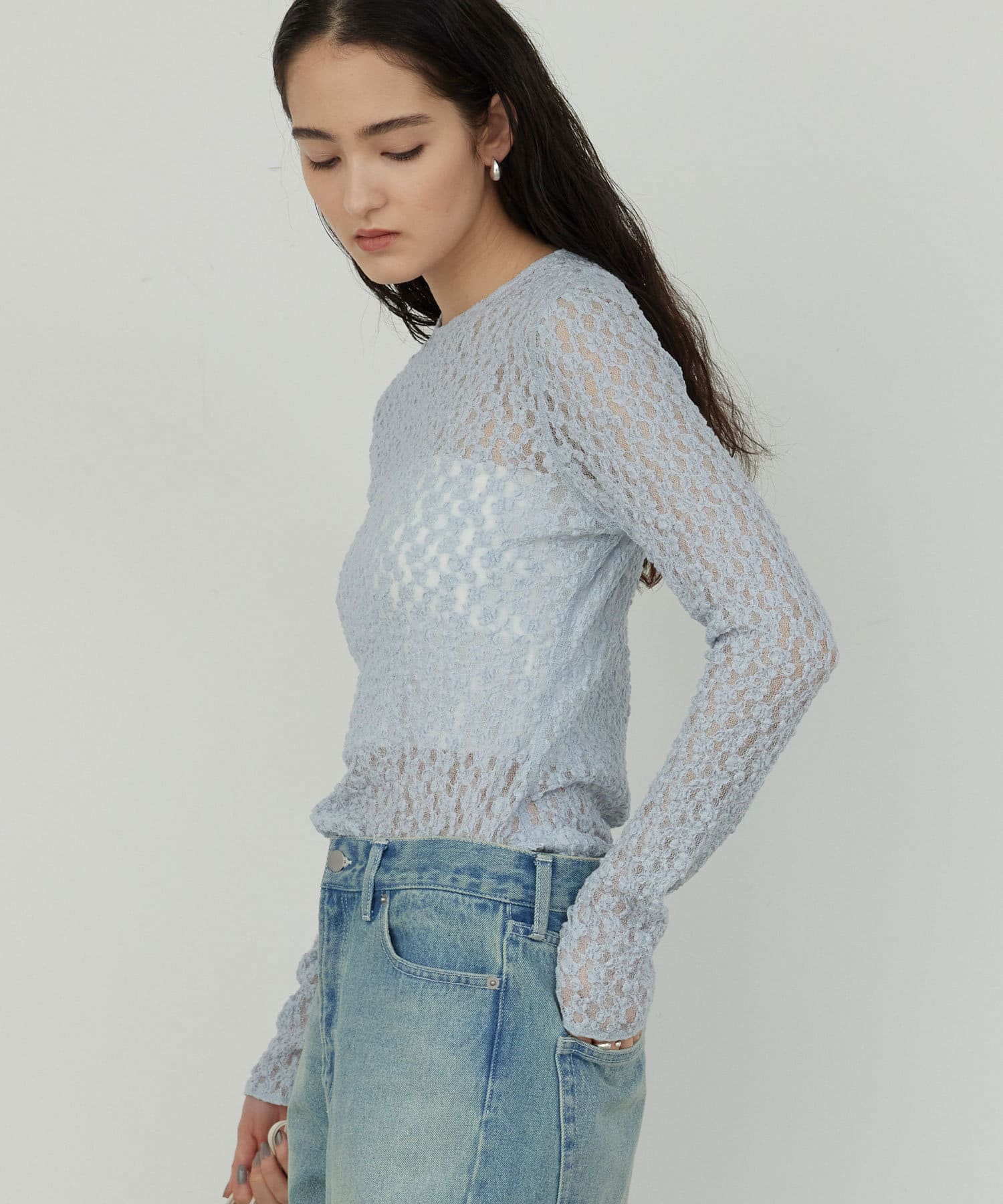 ●ブラウスよりラフに着られるレース素材のロングスリーブカットソー。