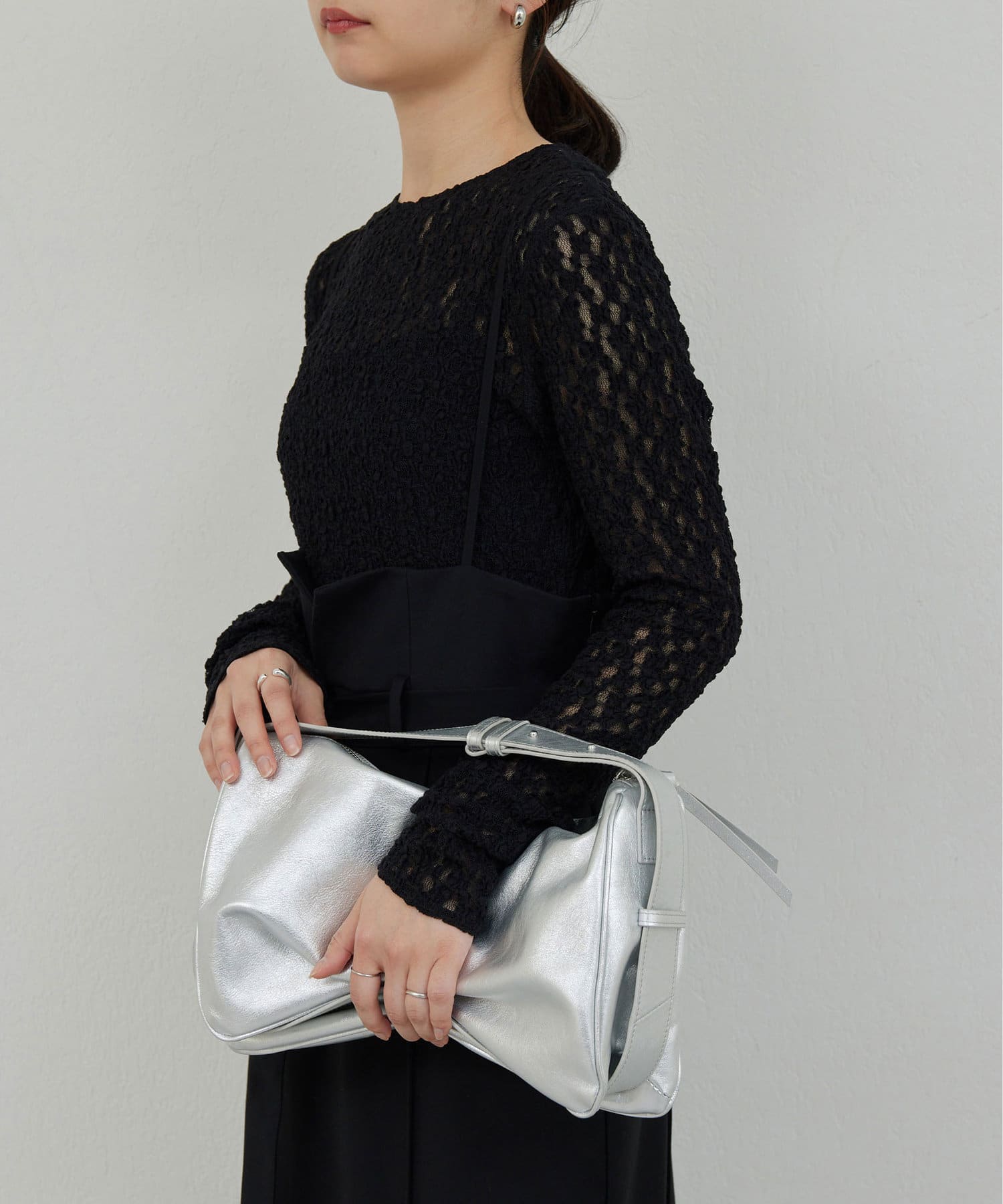●程よく開きのクルーネックで甘くなりすぎず大人に馴染むデザイン。