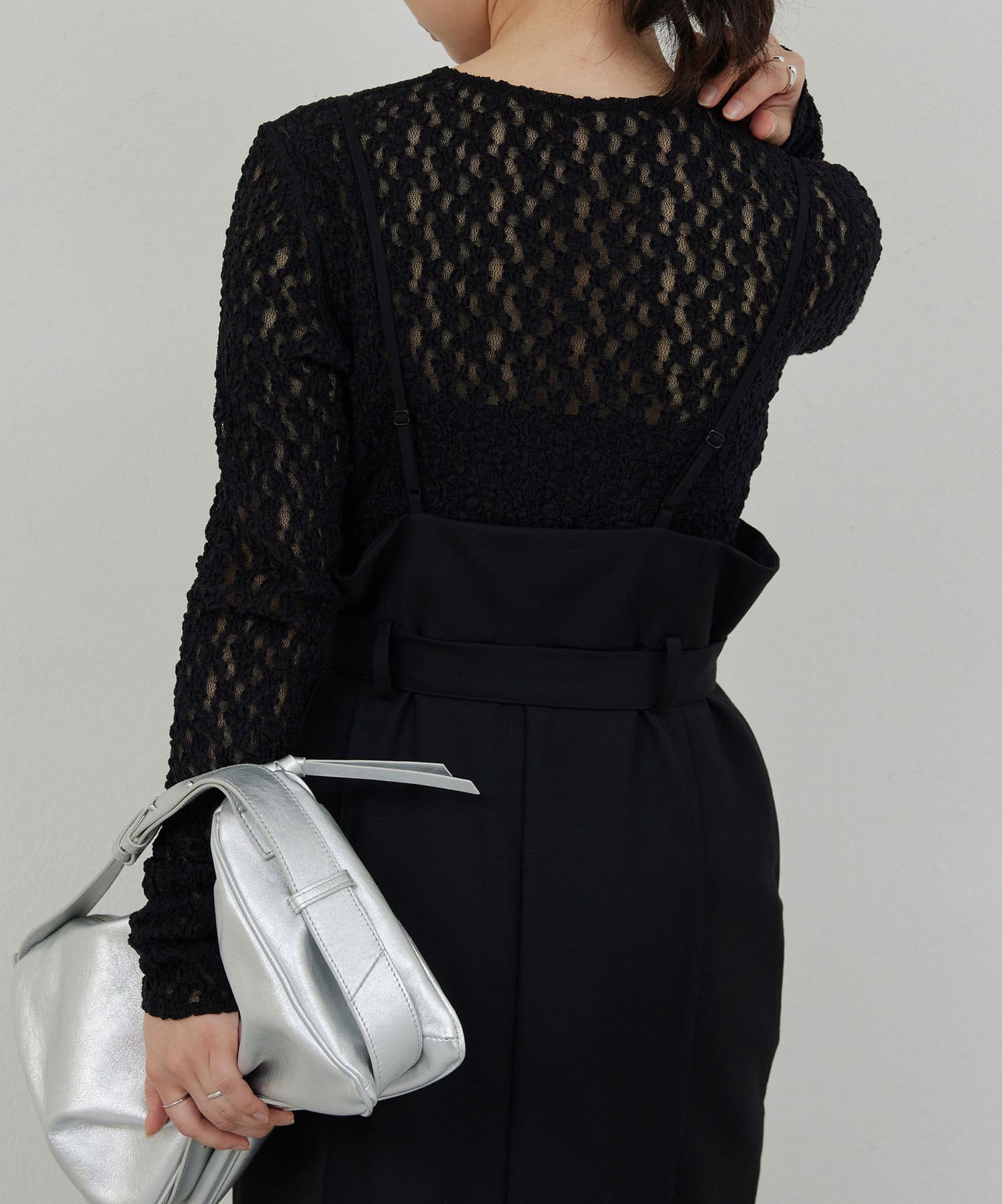 購入場所:店舗店舗にて何気なくみていたら声をかけていただいて、タイトめな作りだし、シアー風でちょっと着るのが不安でしたが、試着してみたらめちゃくちゃかわいくて、体のラインもひろいずらく着やすかったので購入しました。