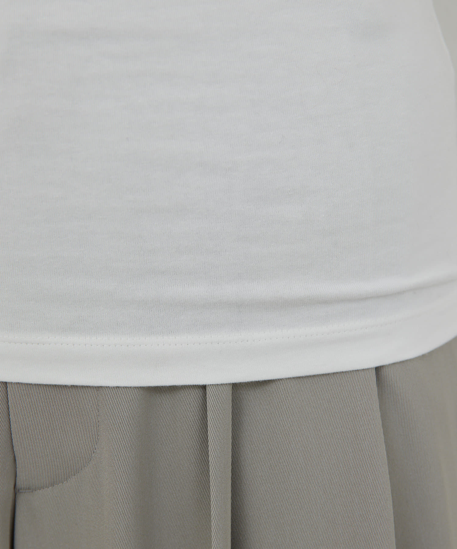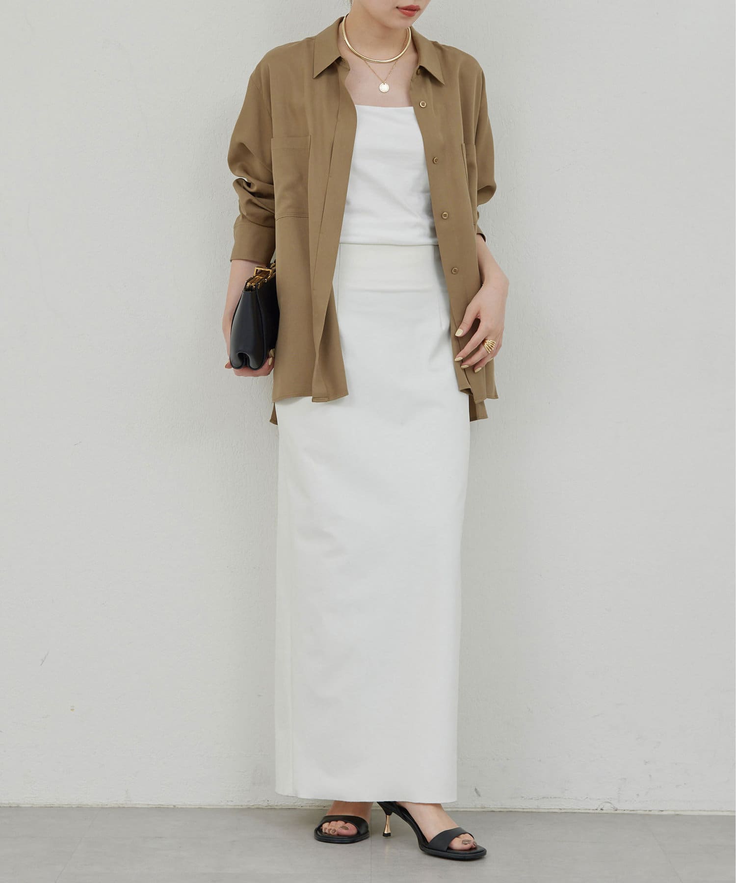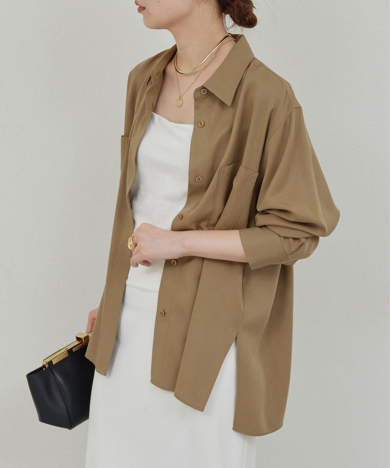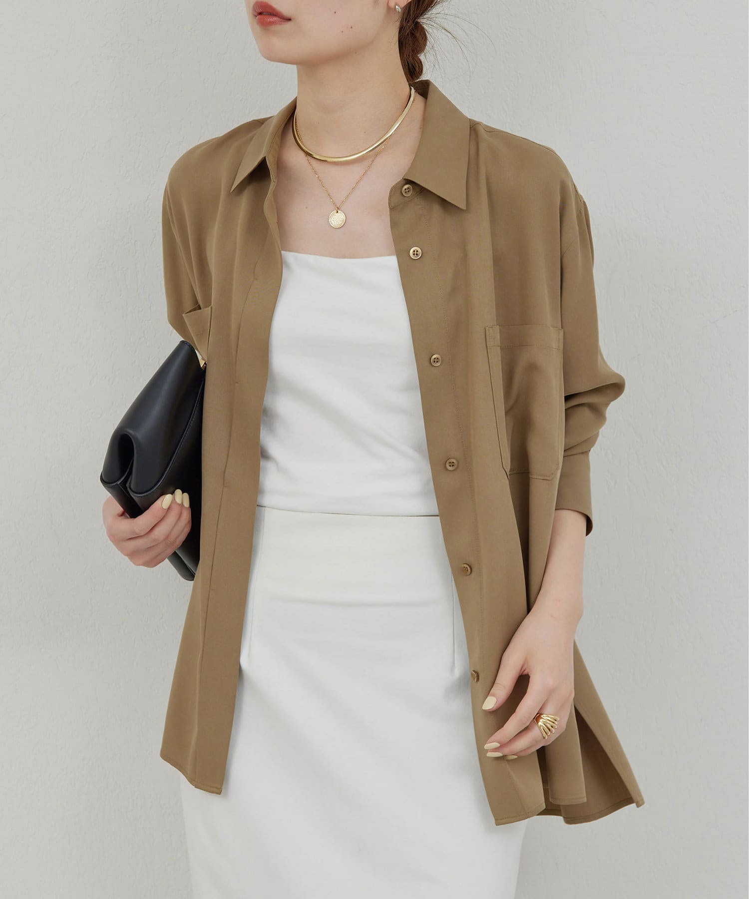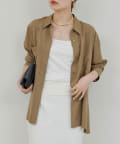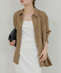 ●シアートップスや深Vネックアイテムのインナーとして重宝する1枚。