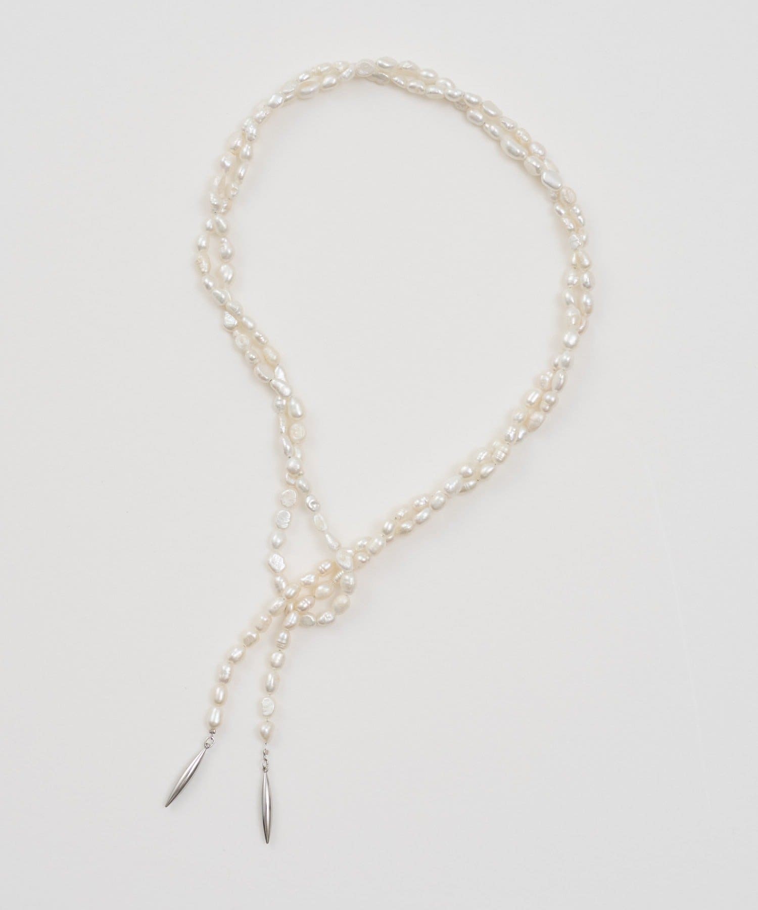 ●結んだり巻いたりして無限のアレンジを楽しめるパールネックレス。