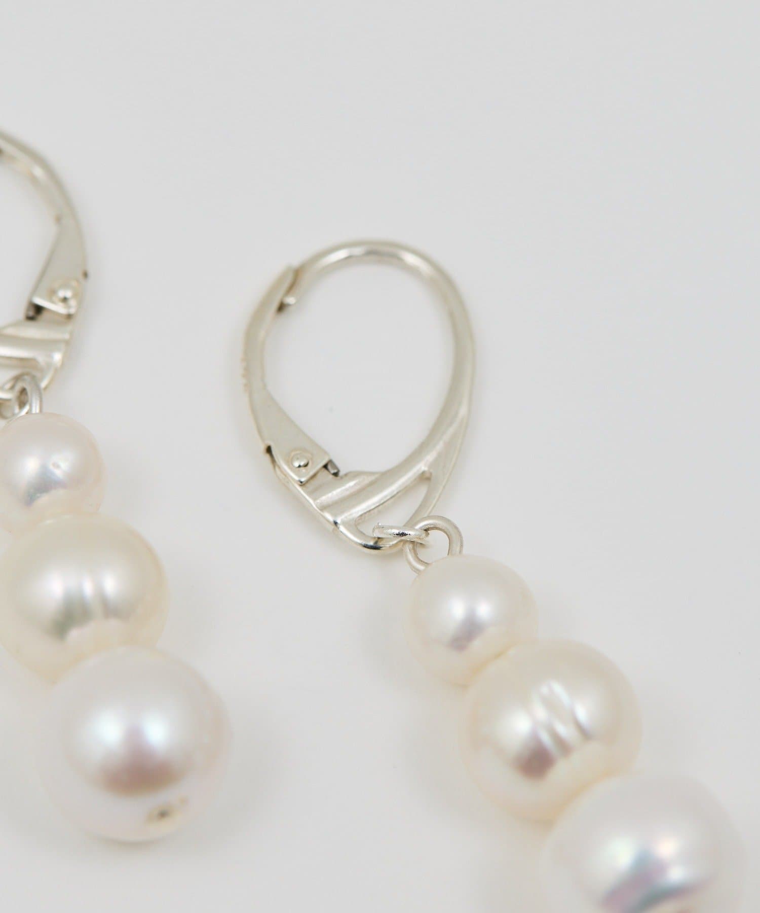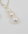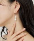 ●異なるサイズ感のパールを連ねたピアス。