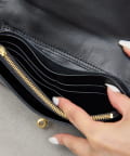 ●お札を折り曲げずに入れられ、カードホルダーも充実。