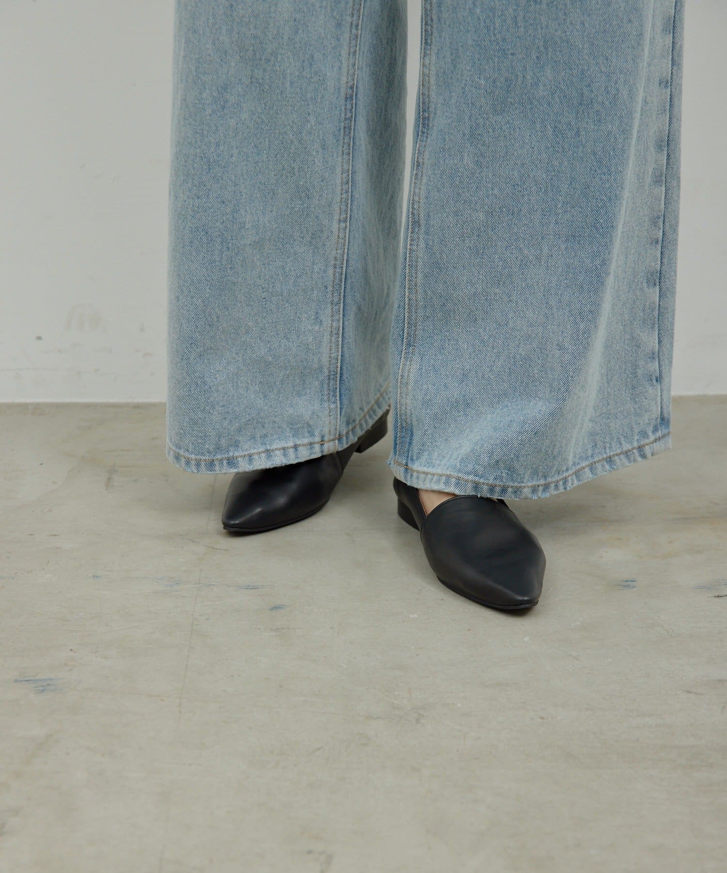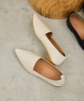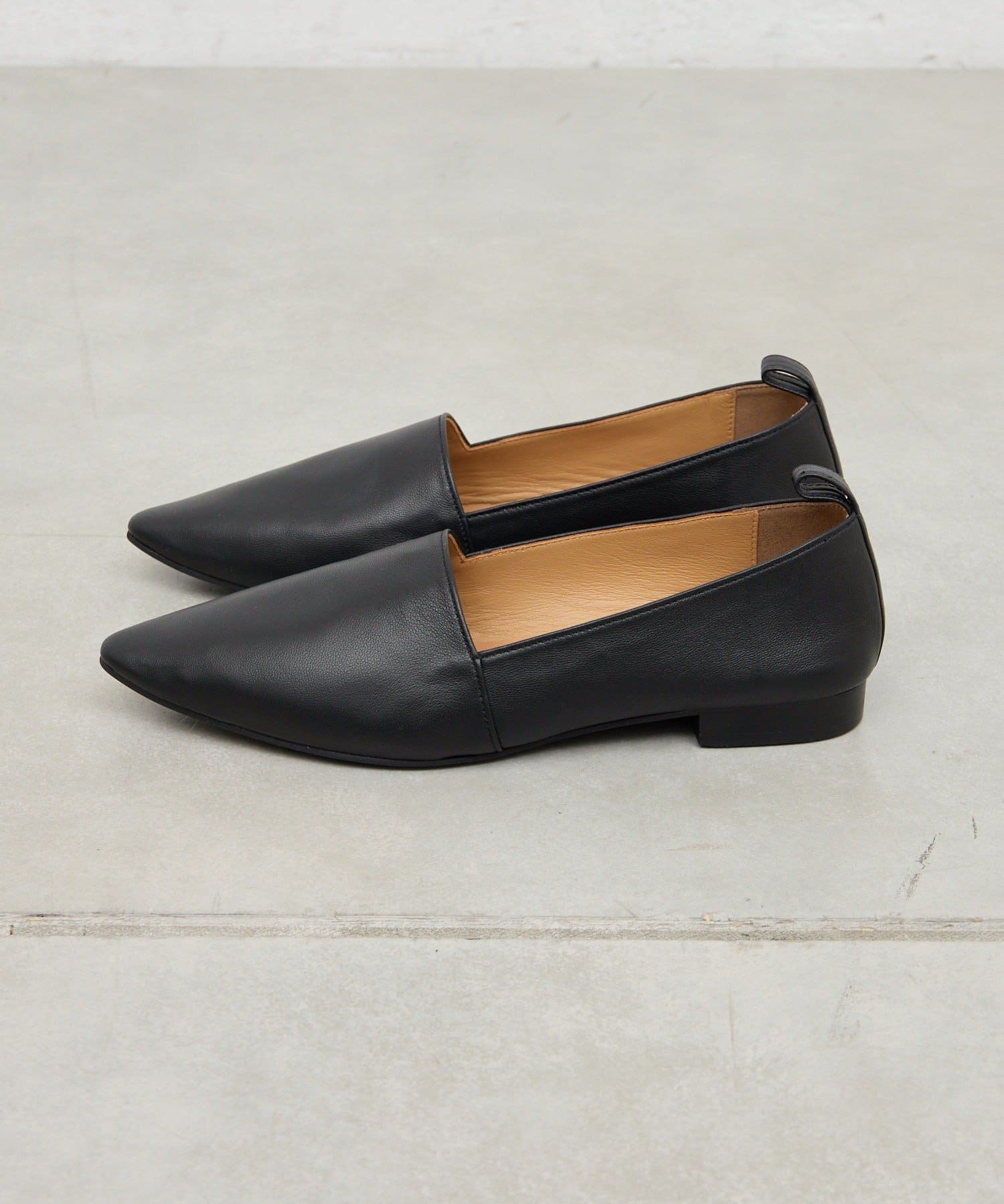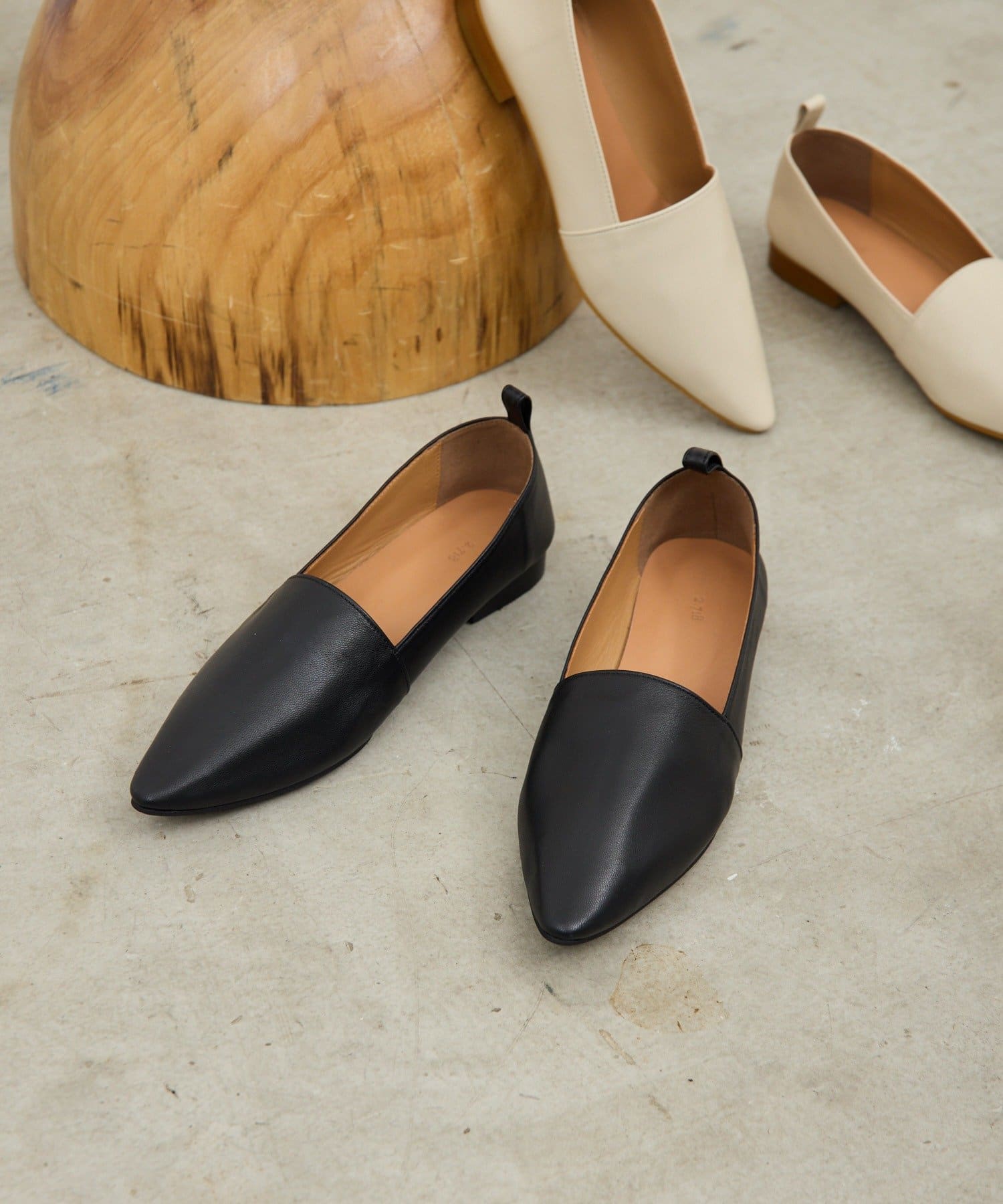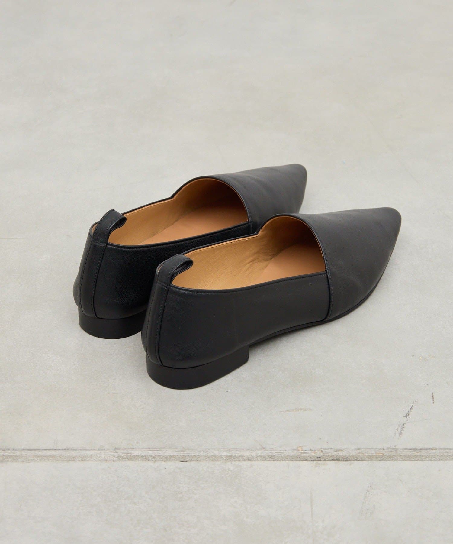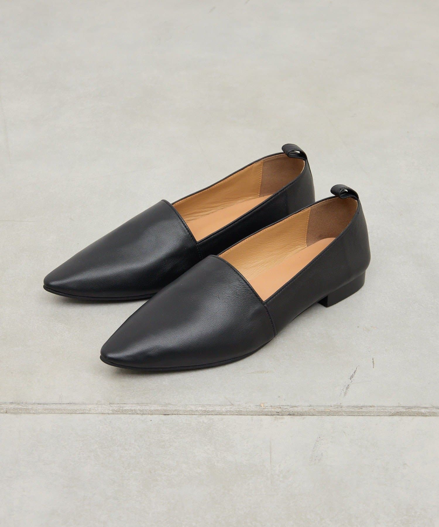 ●ポインテッドトゥデザインでフラットシューズながらもスッキリとした印象に。