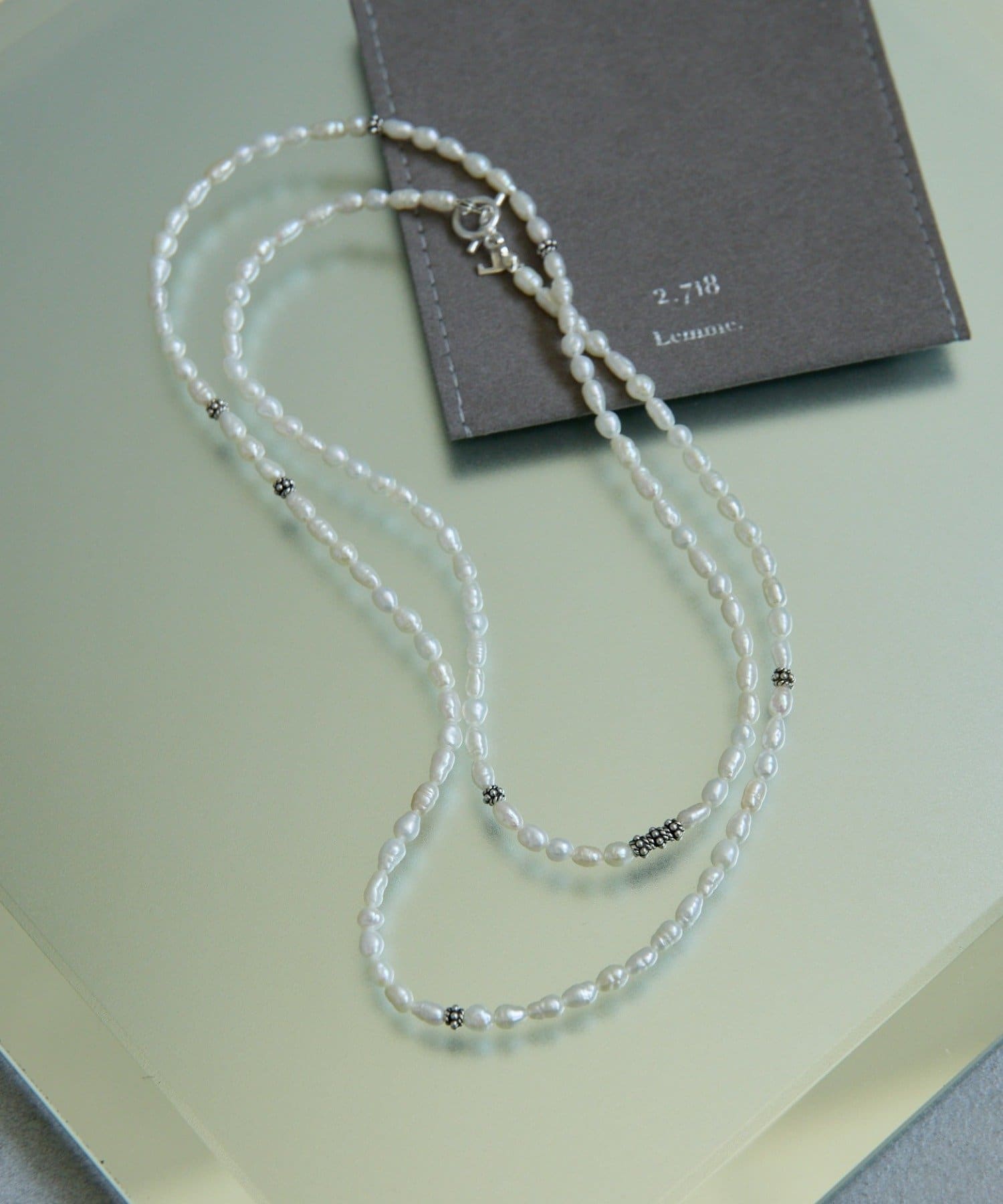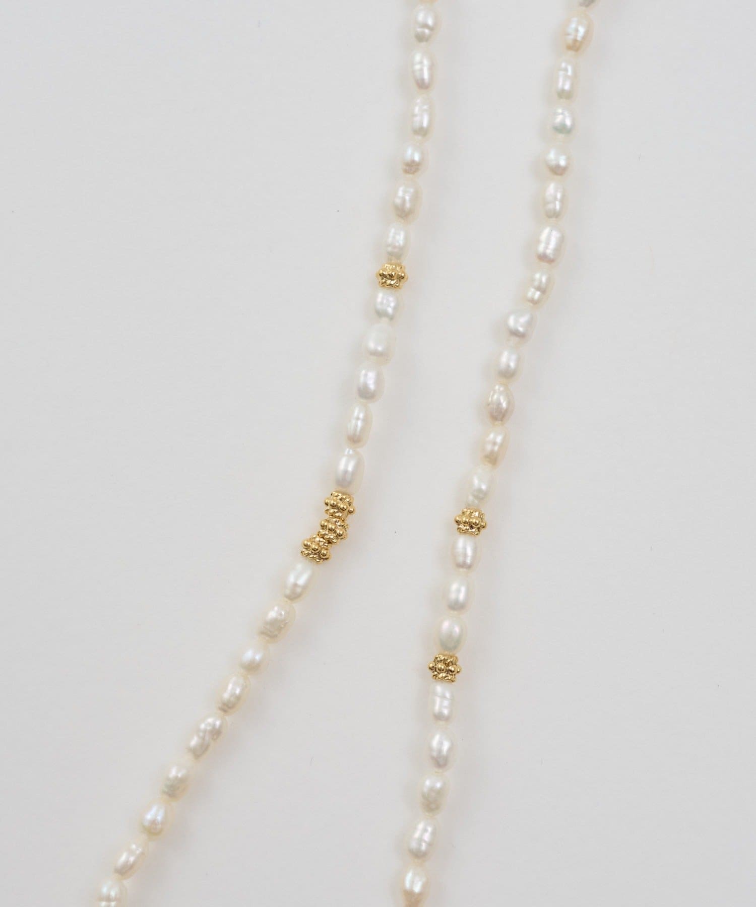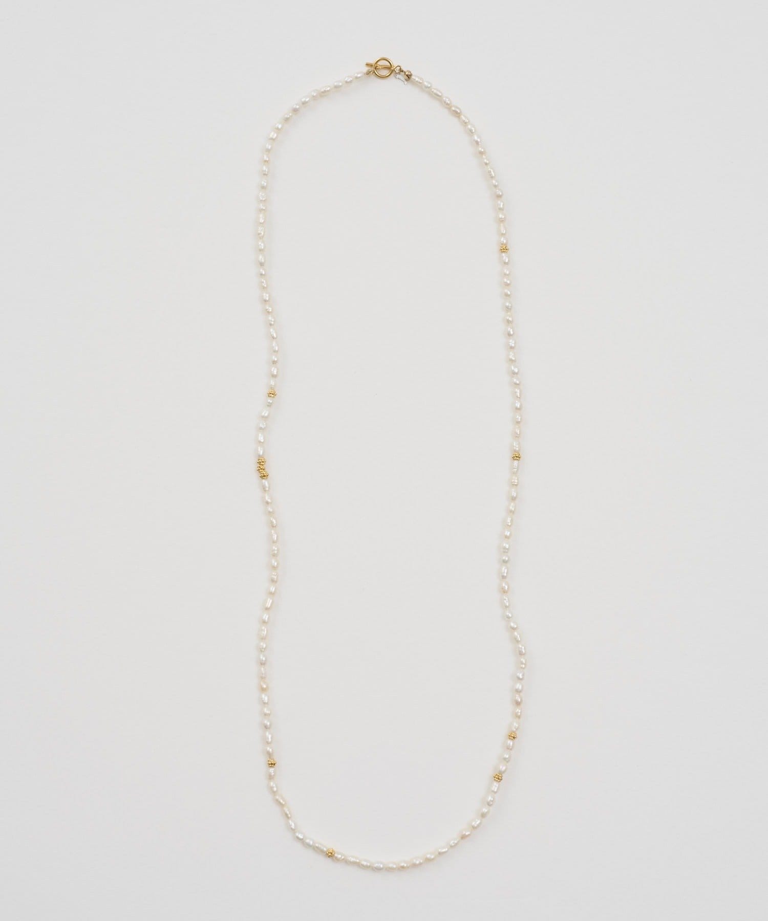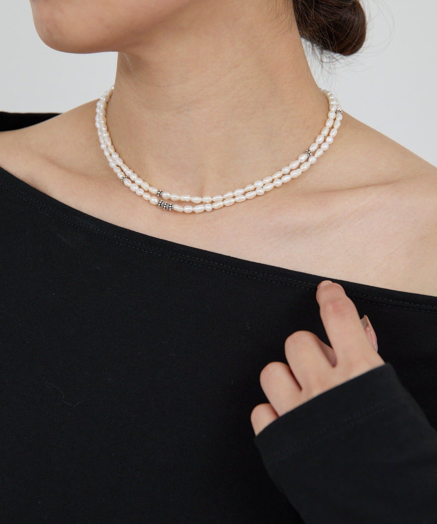 柔らかなパールにメタルの力強さを加えた洗練ネックレス