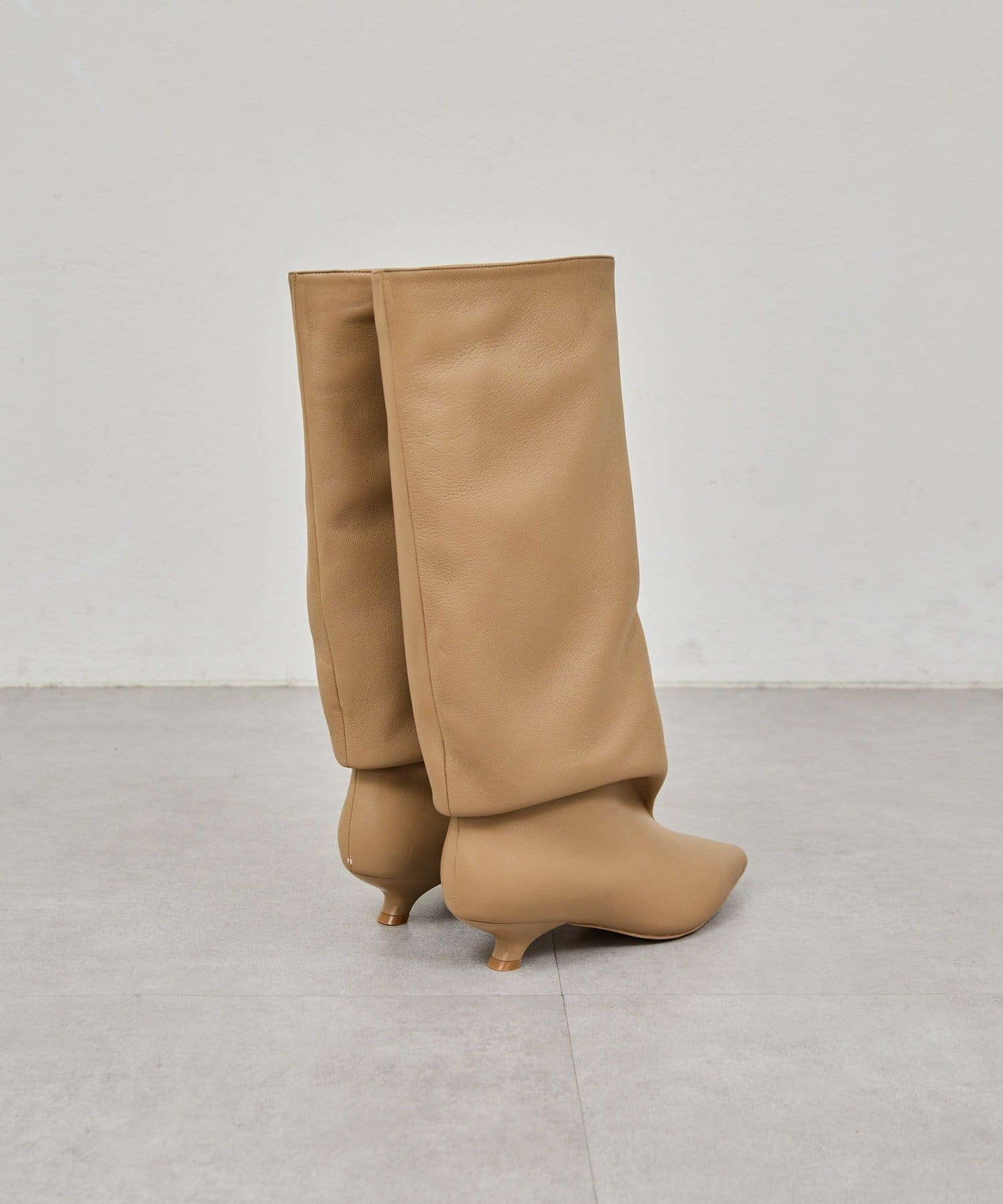 ●表情あるドレープデザインが大人の遊び心を感じるロングブーツ。