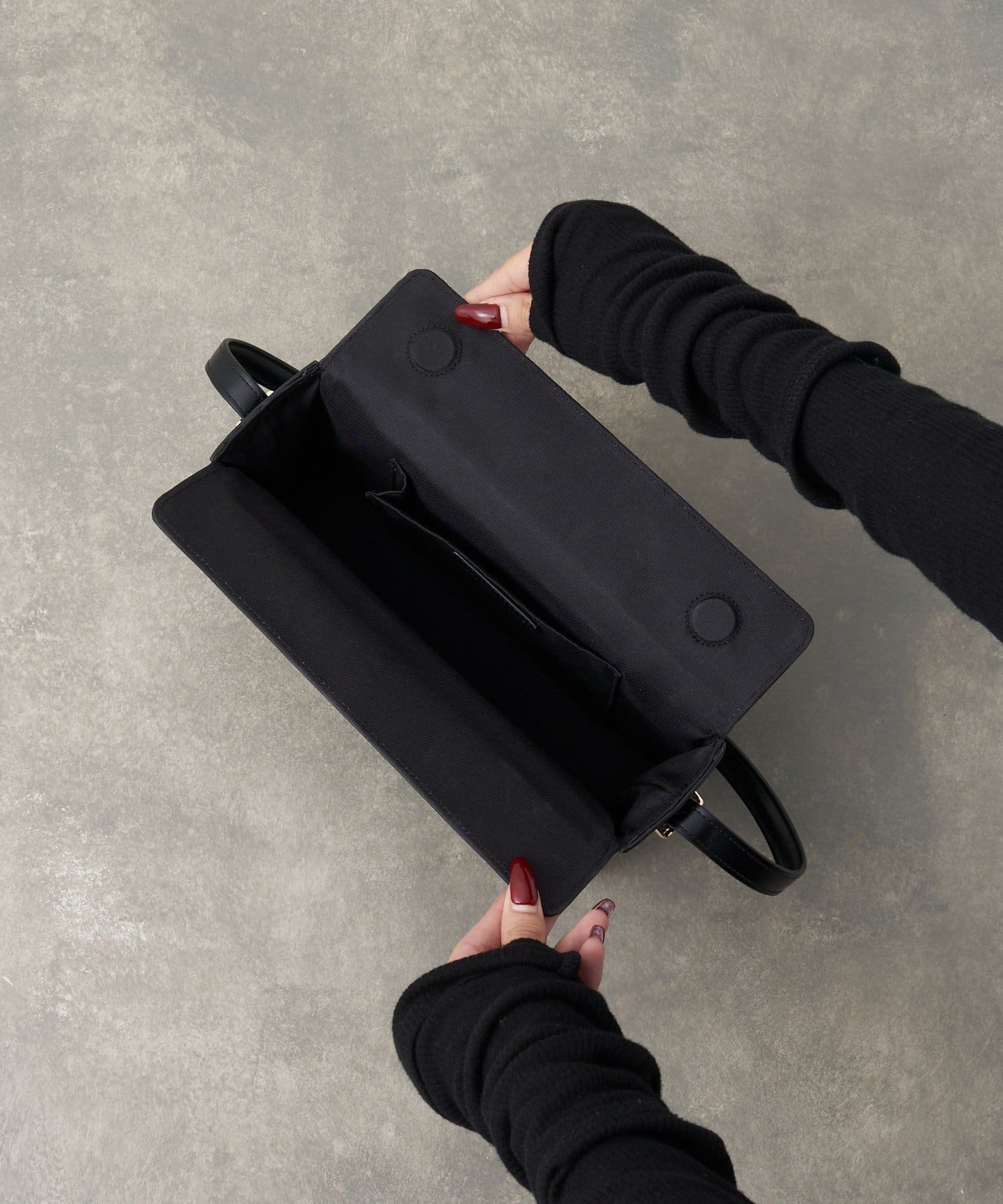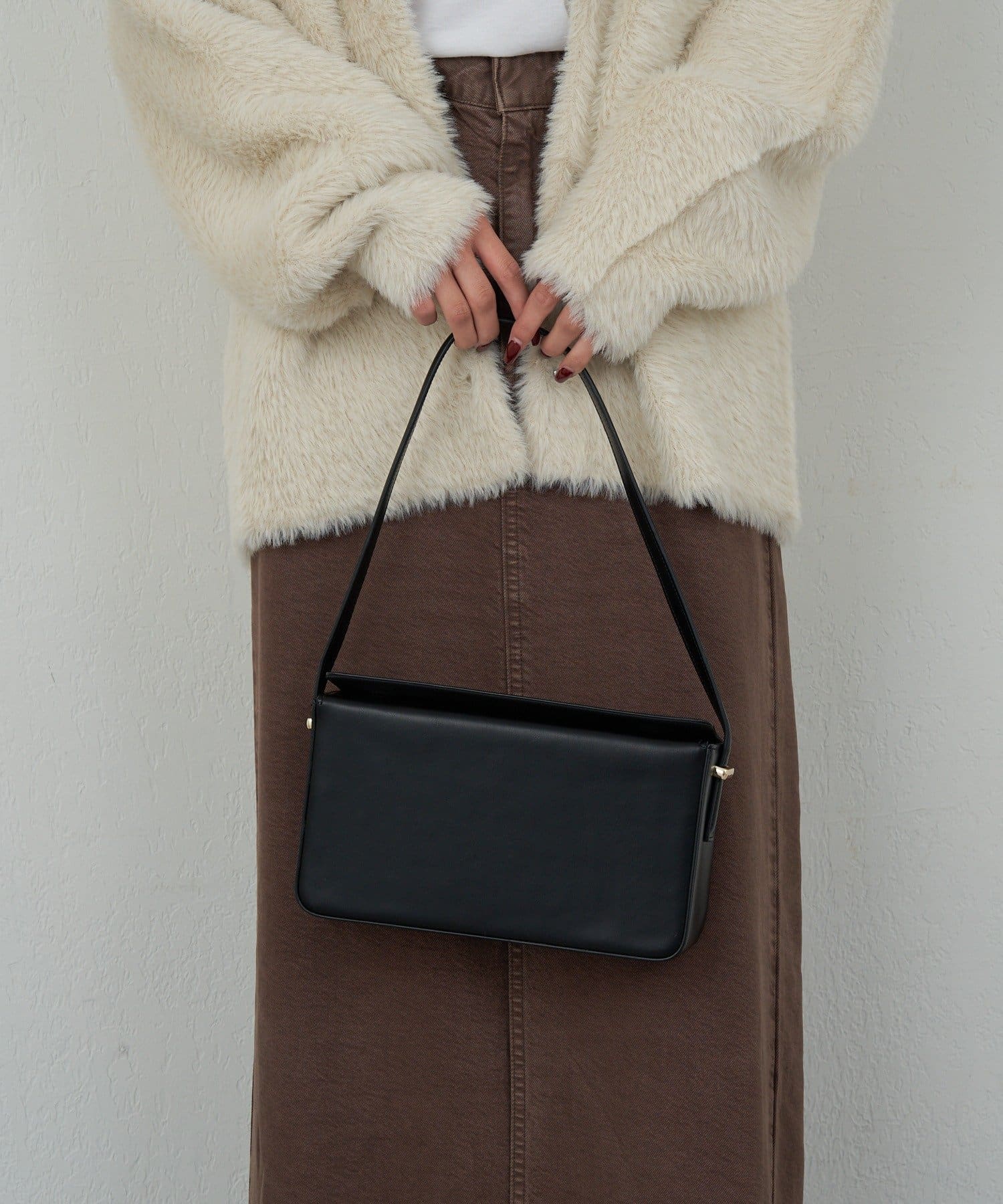 ●トレンド感のあるスタイリッシュなスクエアバッグ。