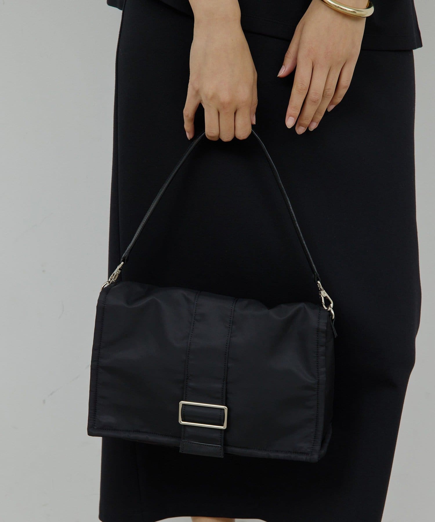 ●ナイロン×レザーの素材合わせは洗練された印象。