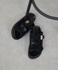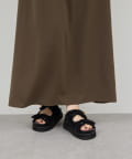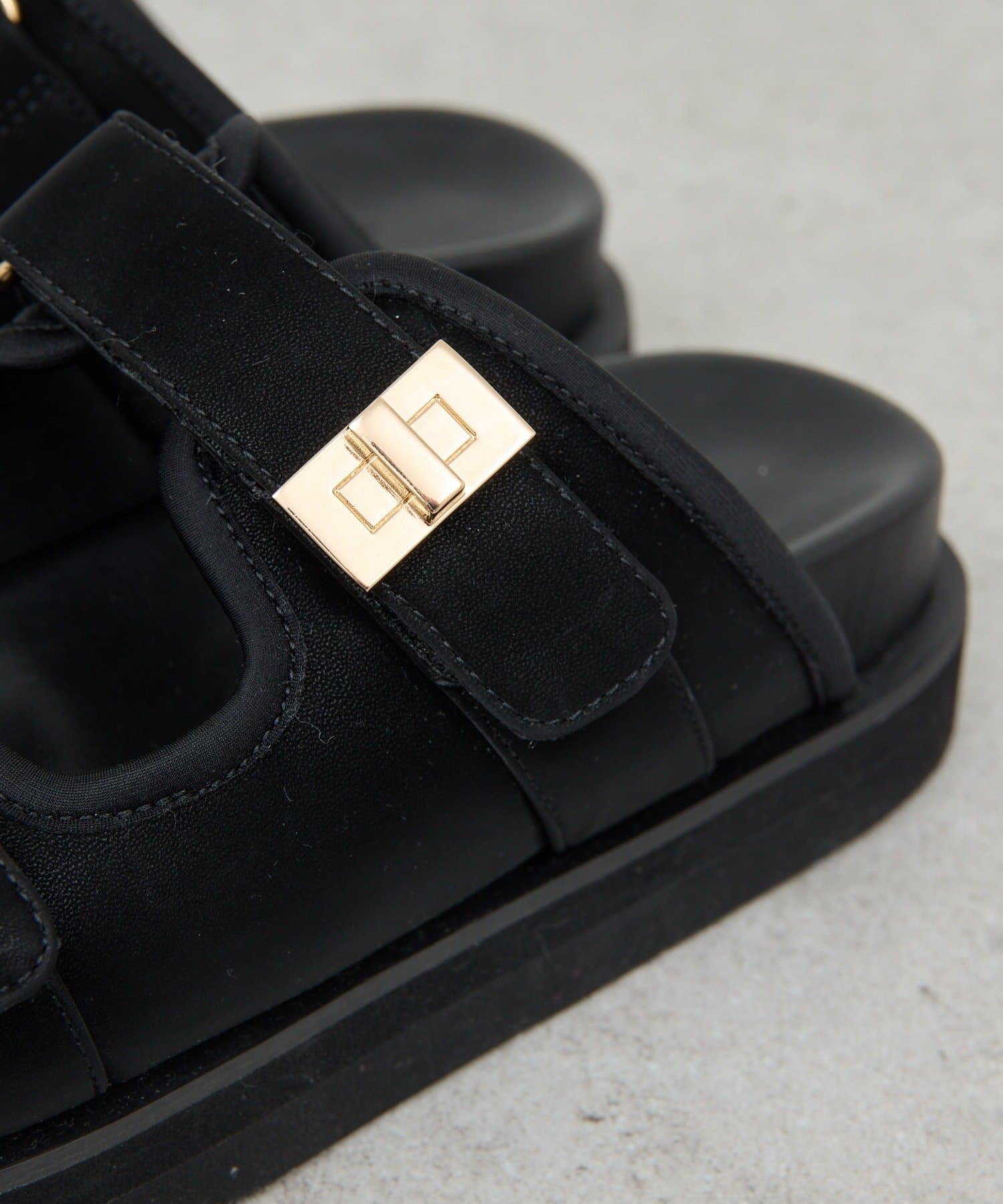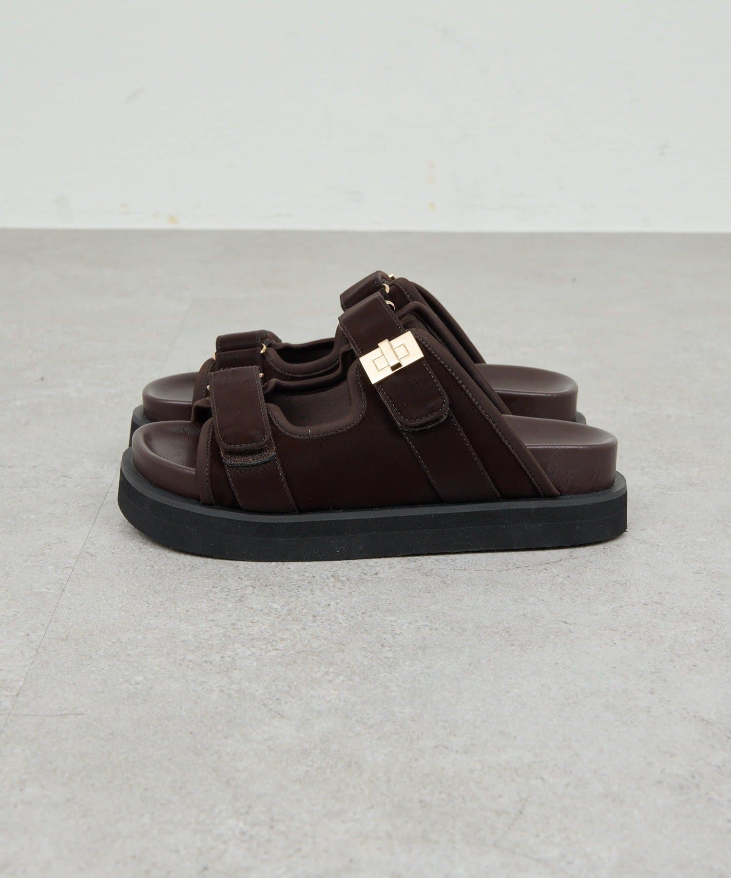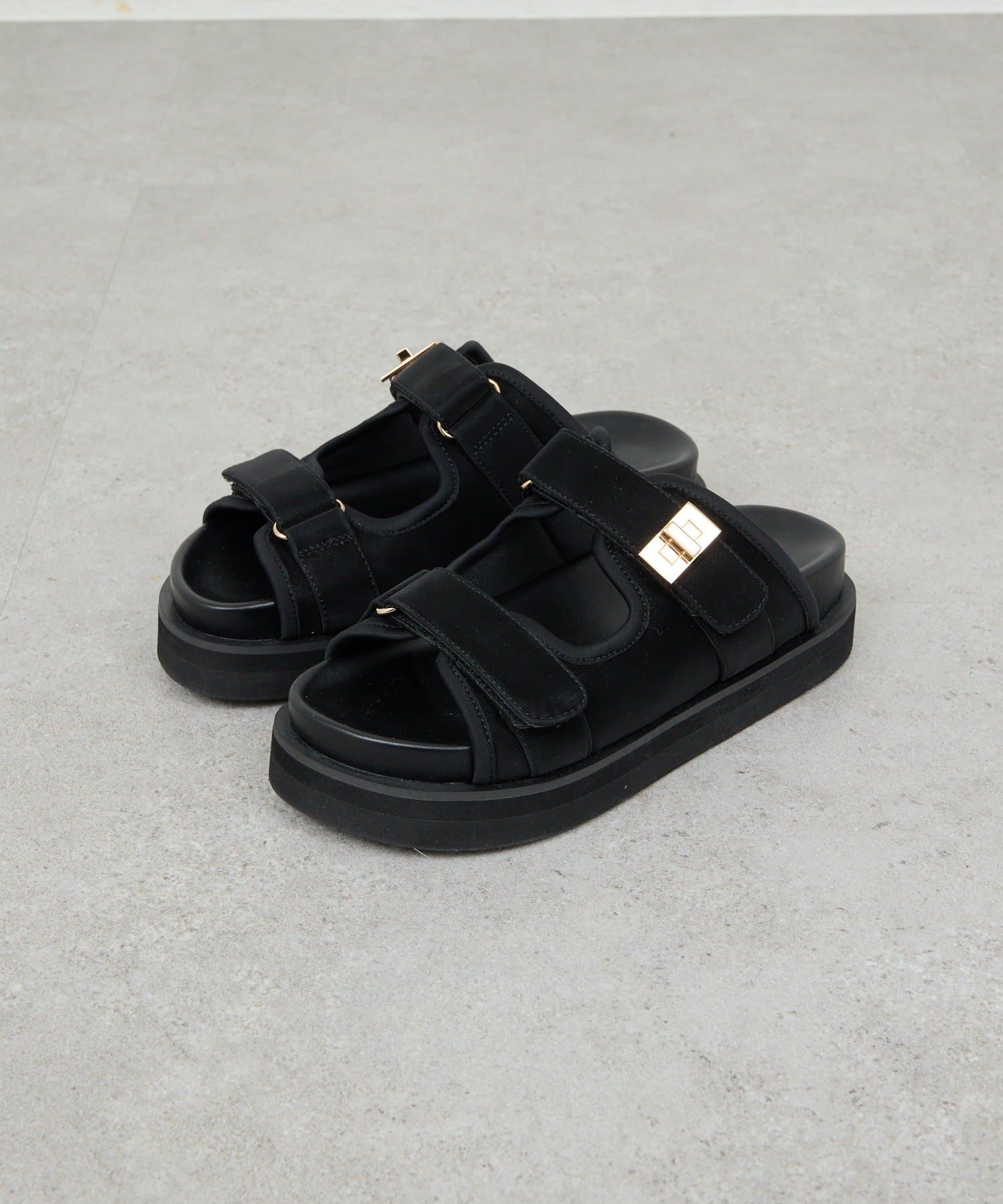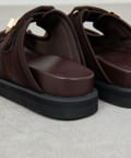 ●スエード素材とゴールドのバックルが品よく仕上げるサンダル