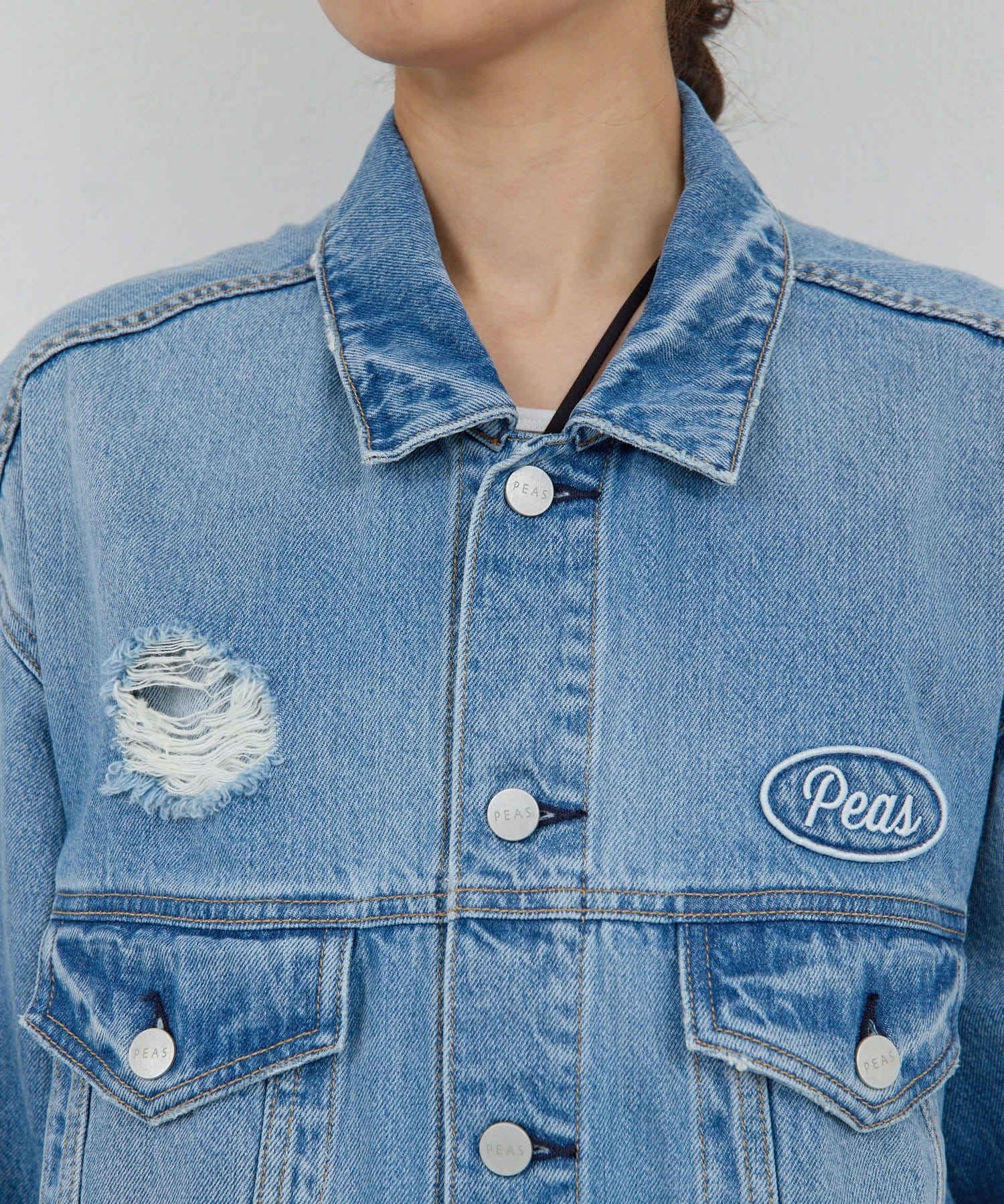 ●PEASのシグネチャーワッペン・テーマ刺繍のサインがポイント。