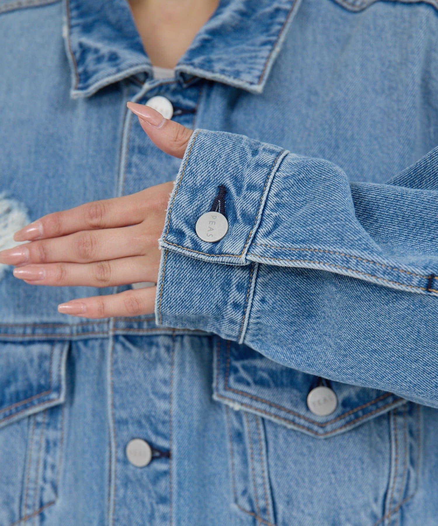 ・ライトブルー→ヴィンテージのGジャンを連想させる奥行きのあるダメージデニム。