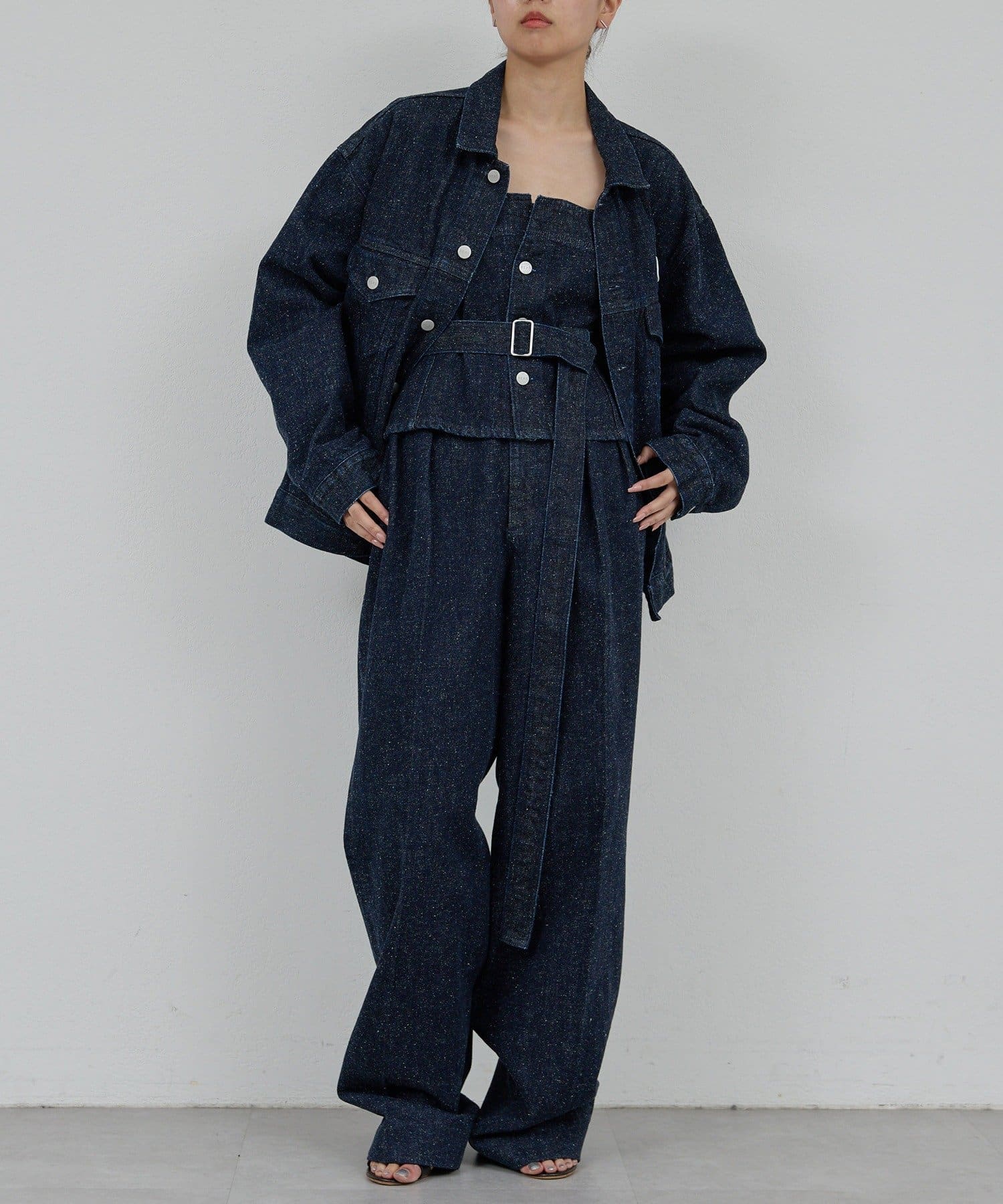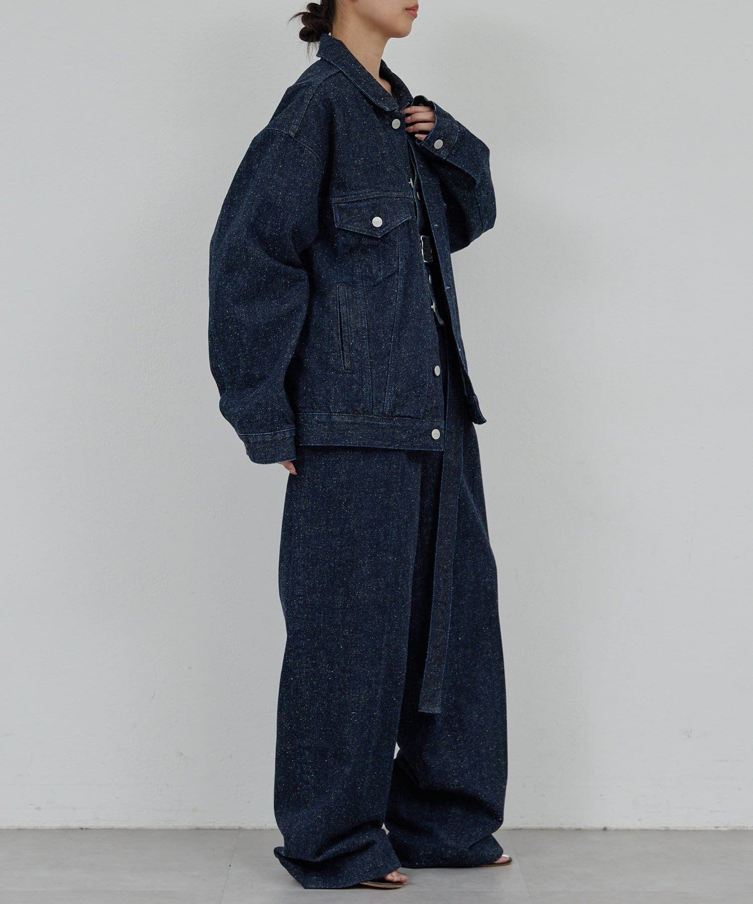 ・ネイビー→星空のようなブリーチ加工とボリューム感が特徴的なネップデニム。