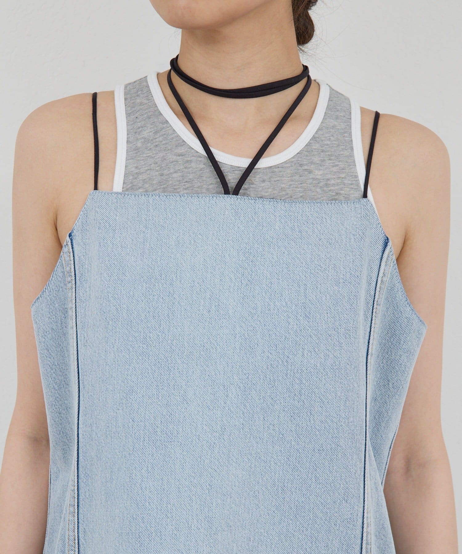 ●古着のデニムをリメイクしたかのようなPEASらしいキャミドレス。