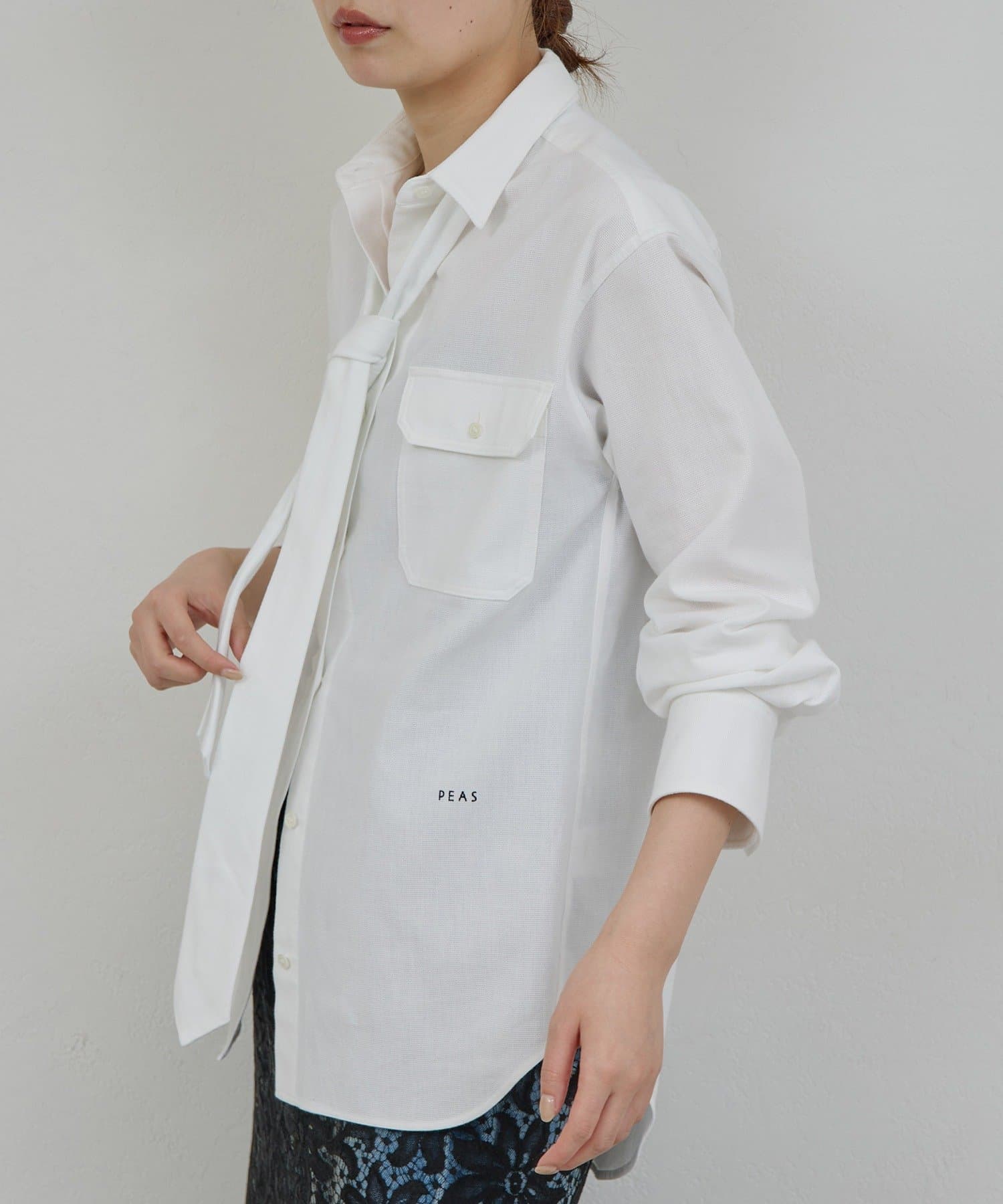 TOP > GALLARDAGALANTE > レディース > トップス > シャツ/ブラウス(ボタン) > 【PEAS】タイ付きシャツ