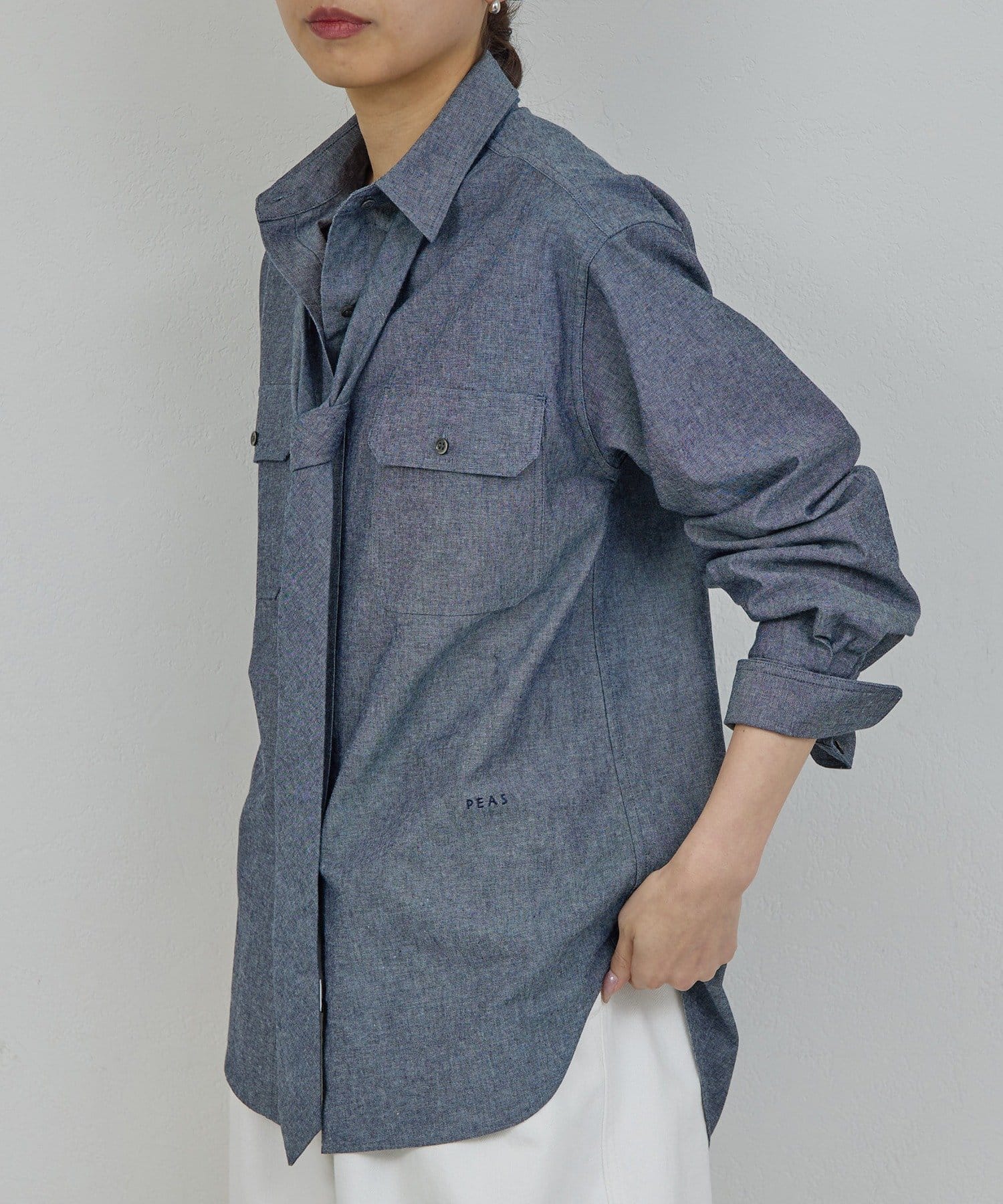 GGP1061304A0001 /【PEAS】【手洗い可】アシメシャンブレーシャツ