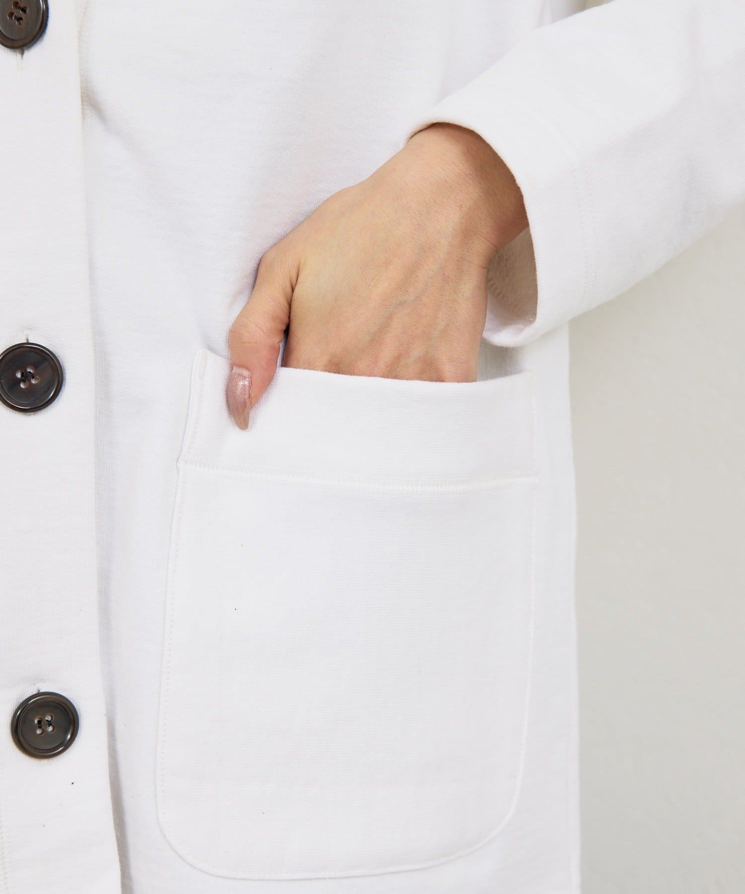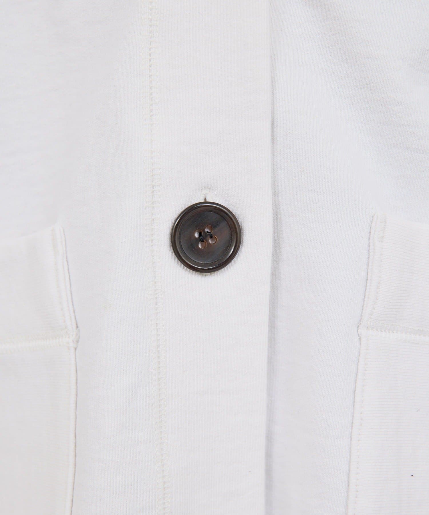 ●本水牛ボタンで上品な重厚感をプラスし、カジュアル過ぎない印象に。