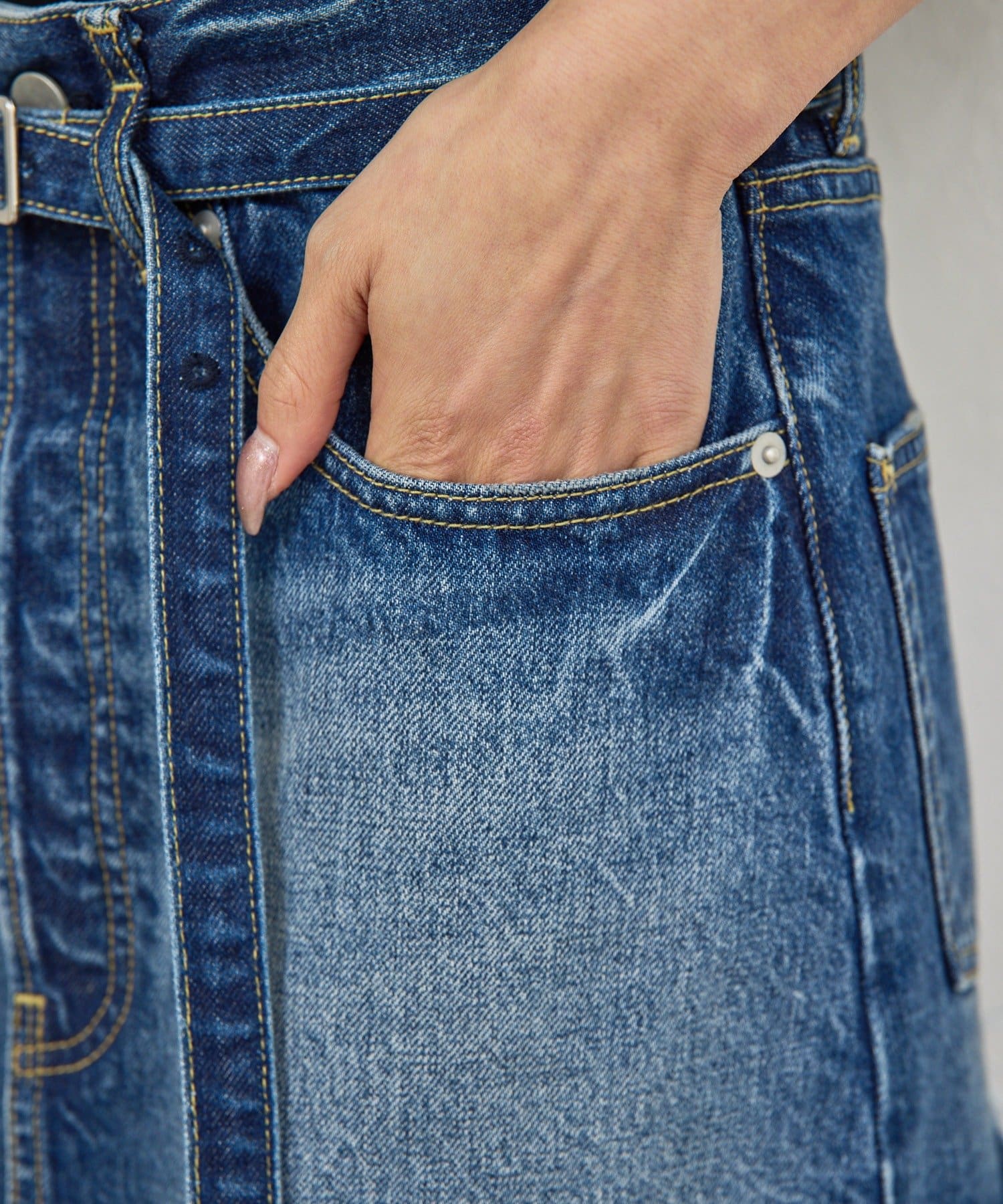 ●ニュアンスある着こなしが可能な長めの細ベルト付き。