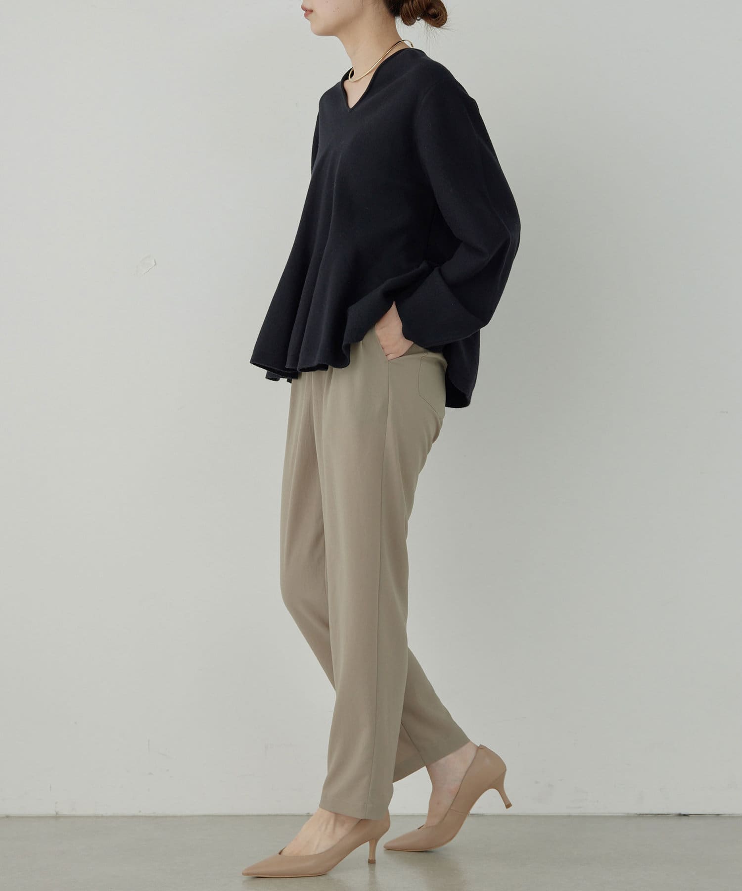 【-3kg見えパンツ】ジャージーテーパードパンツ