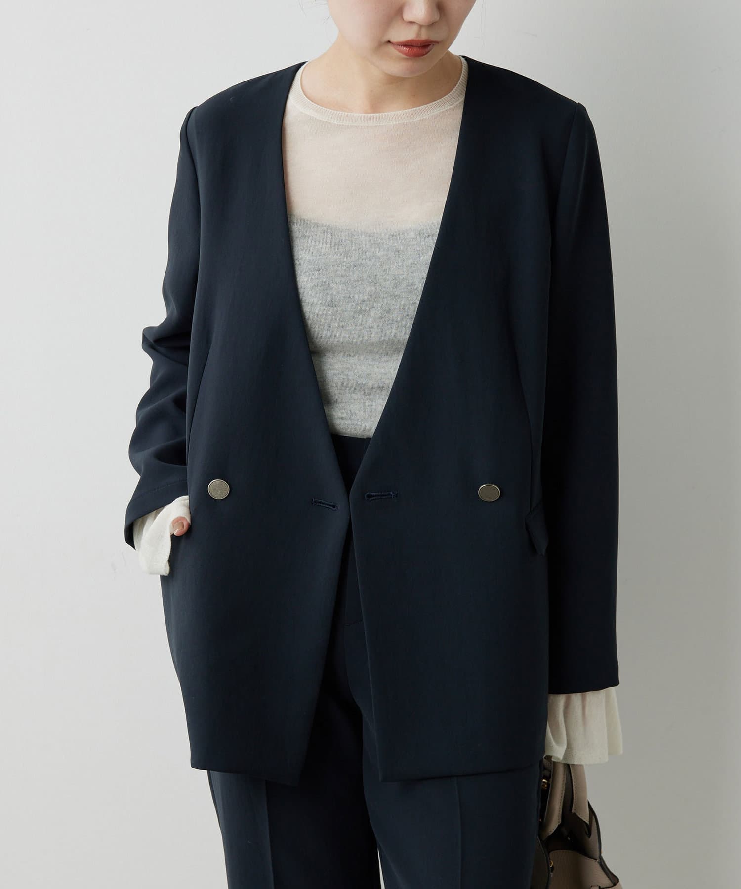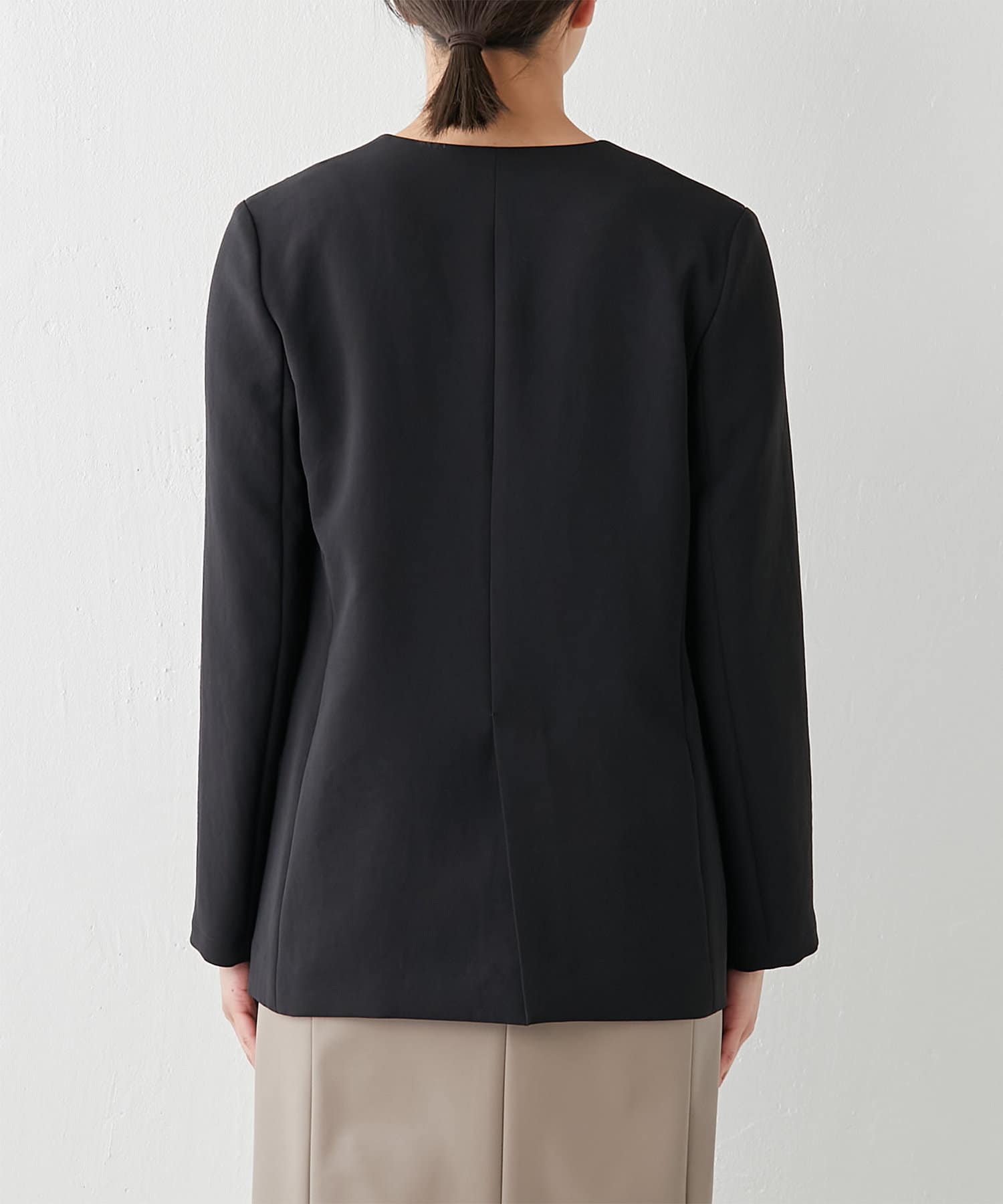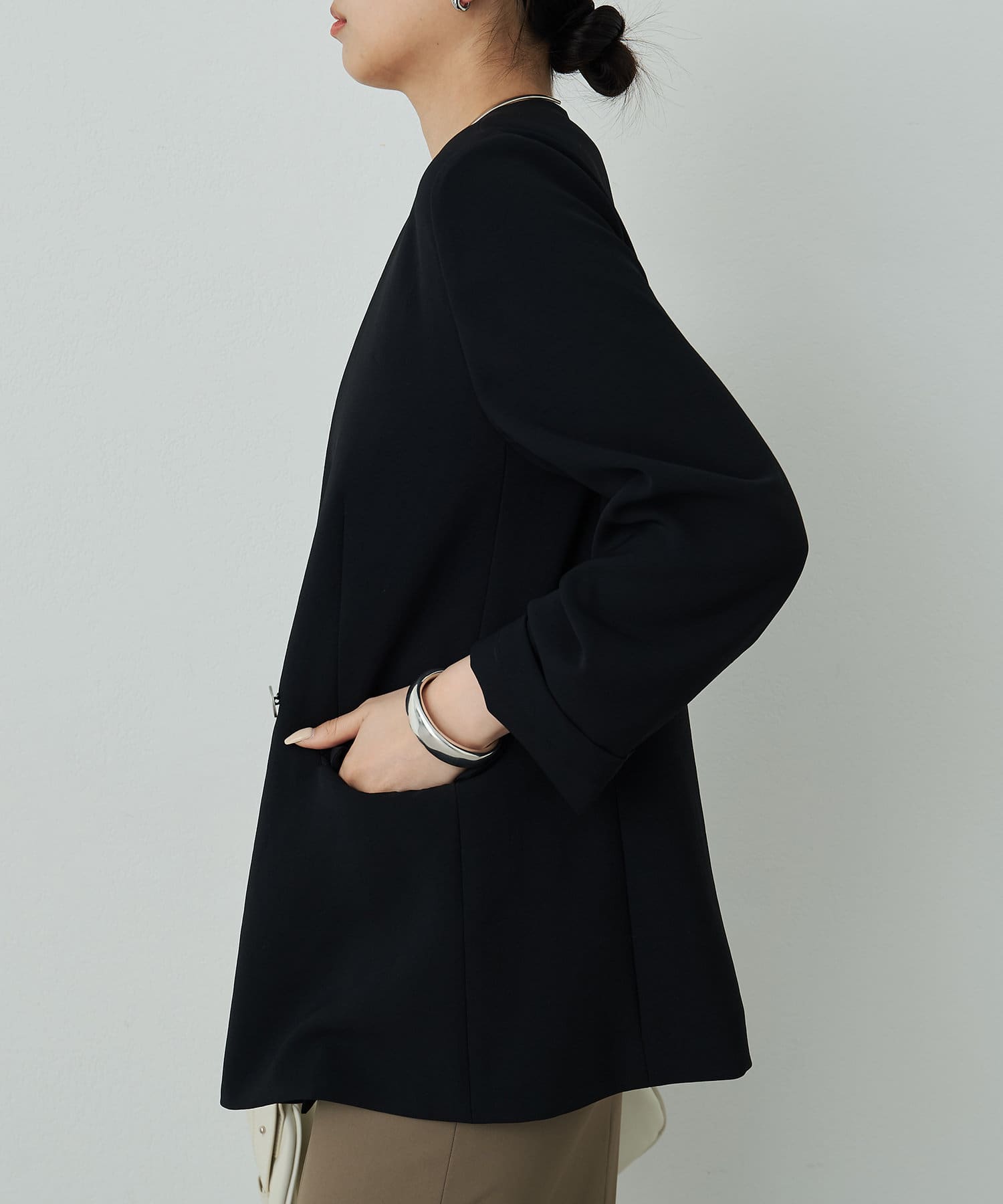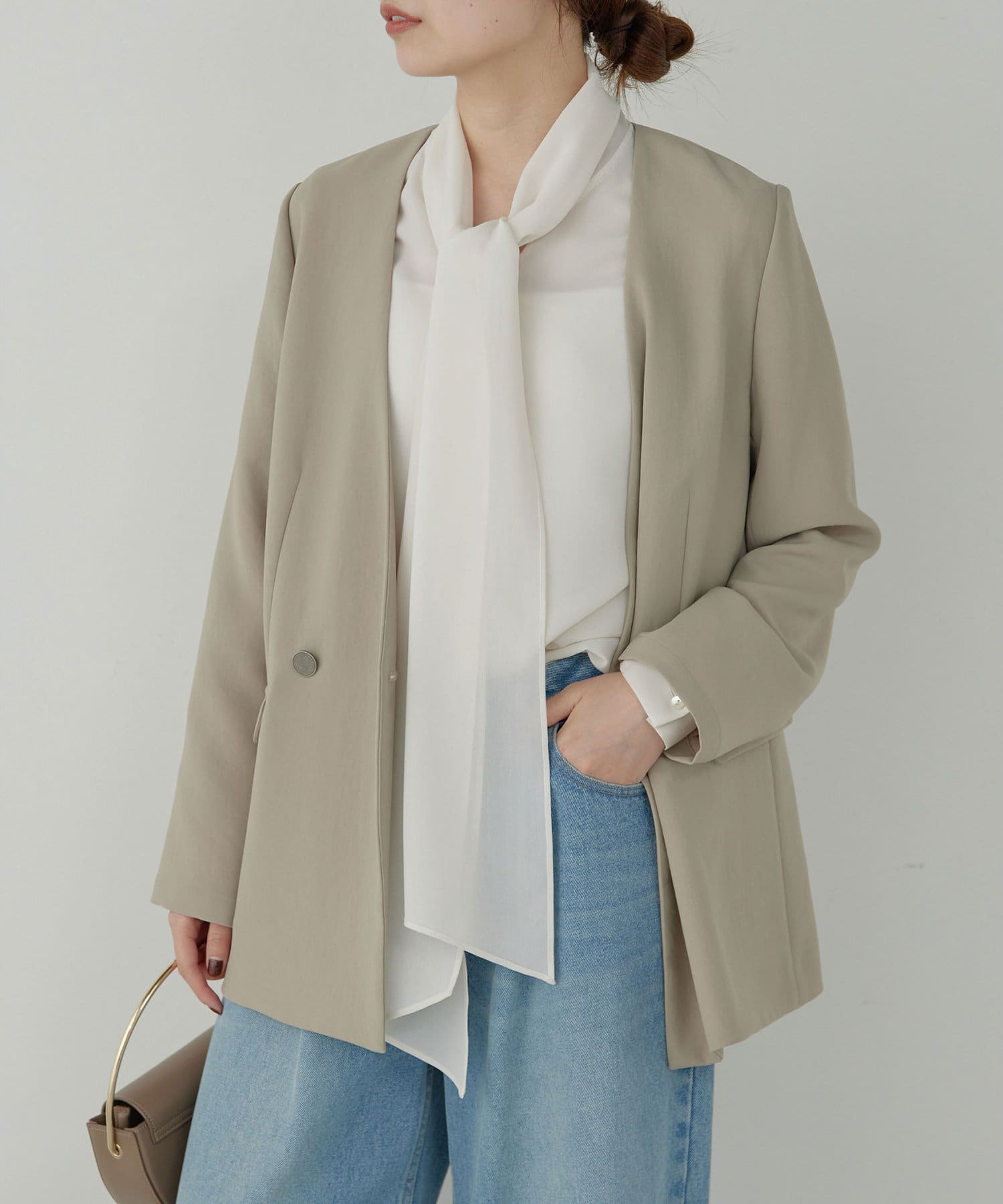 ●カーディガン感覚でさっと羽織れるノーカラージャケット。